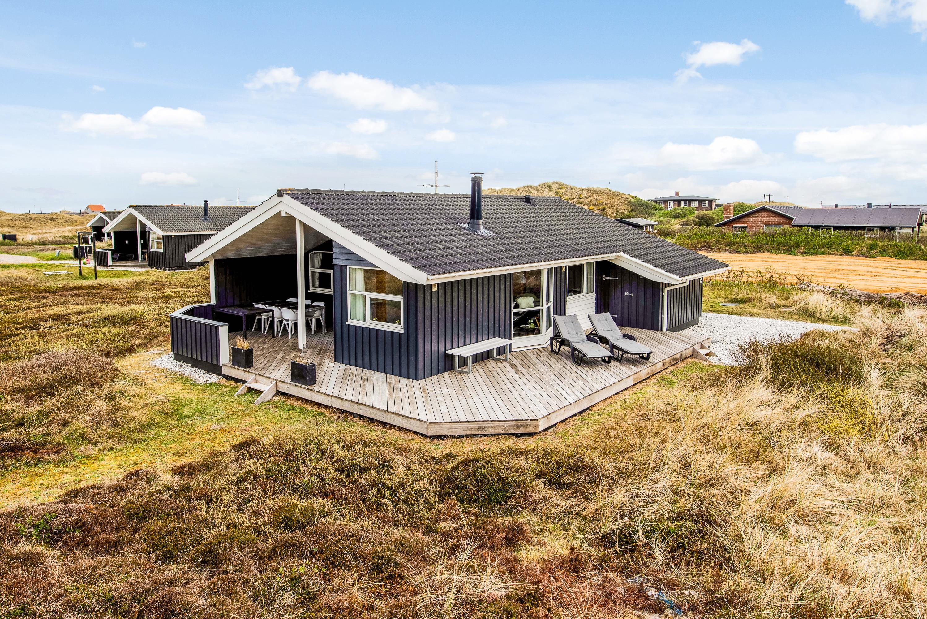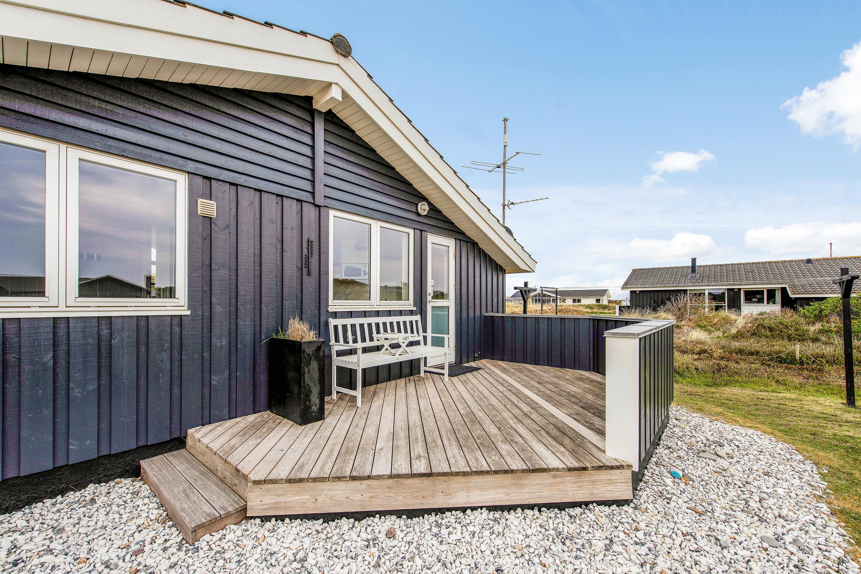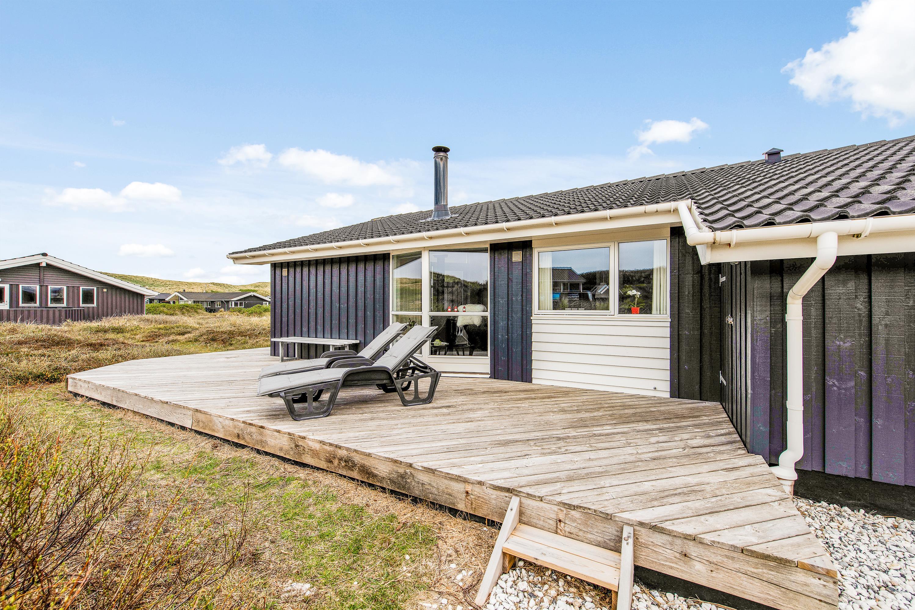Fra terrasserne kan I høre lyden af brændingen – stranden og Vesterhavet ligger nemlig kun 200 meter fra sommerhuset. Gåturen hertil vil ikke tage jer mange minutter.