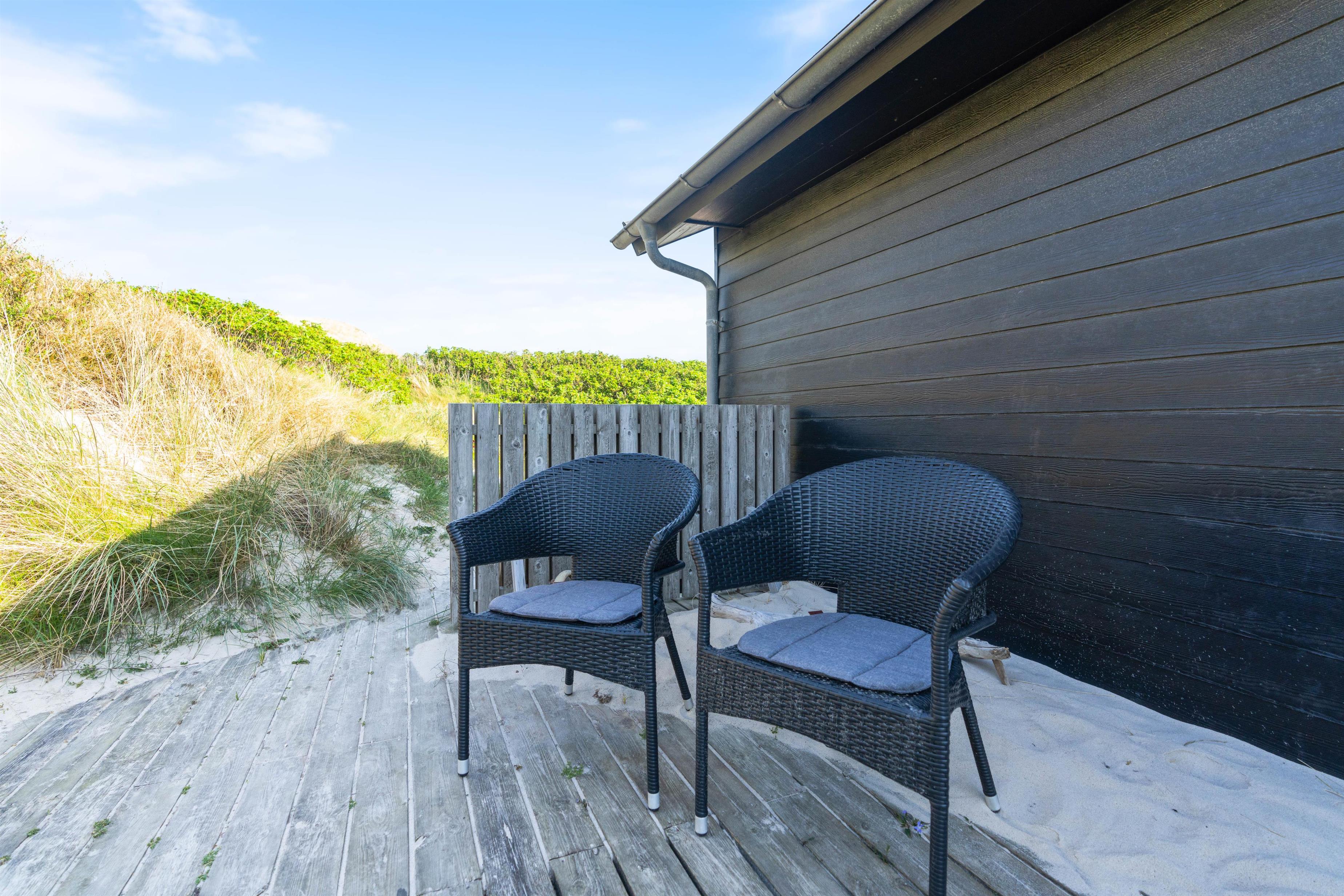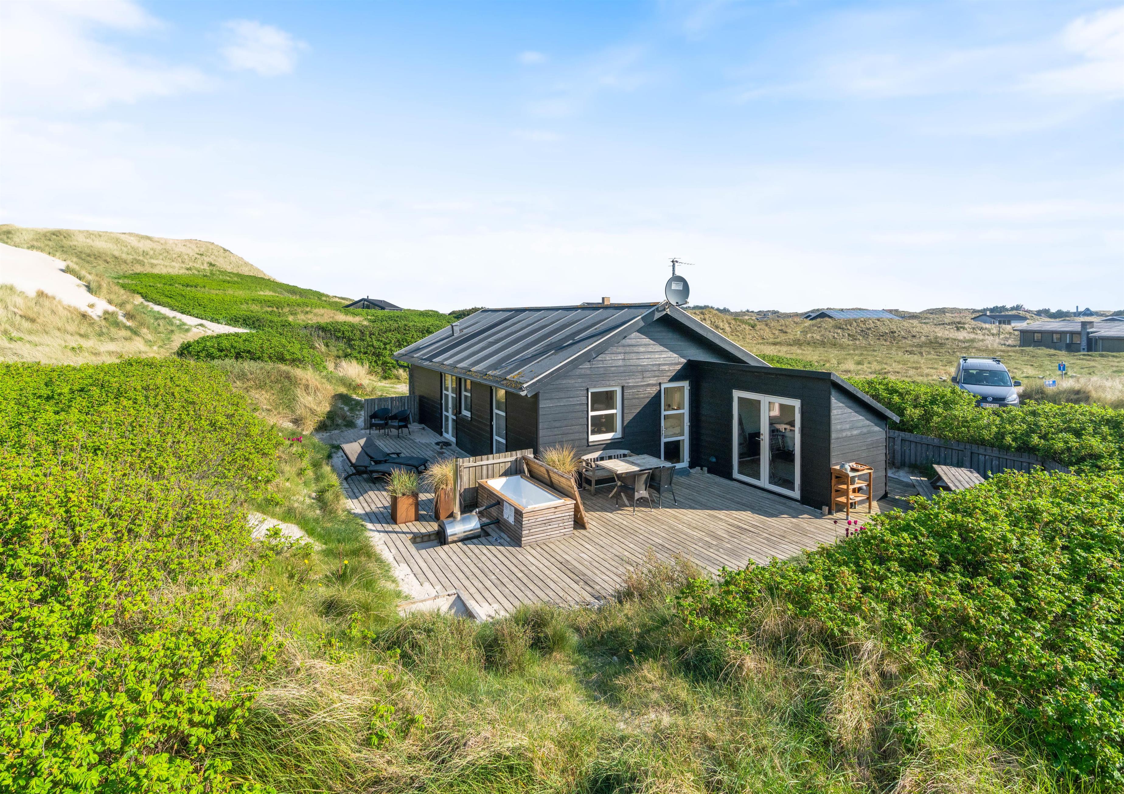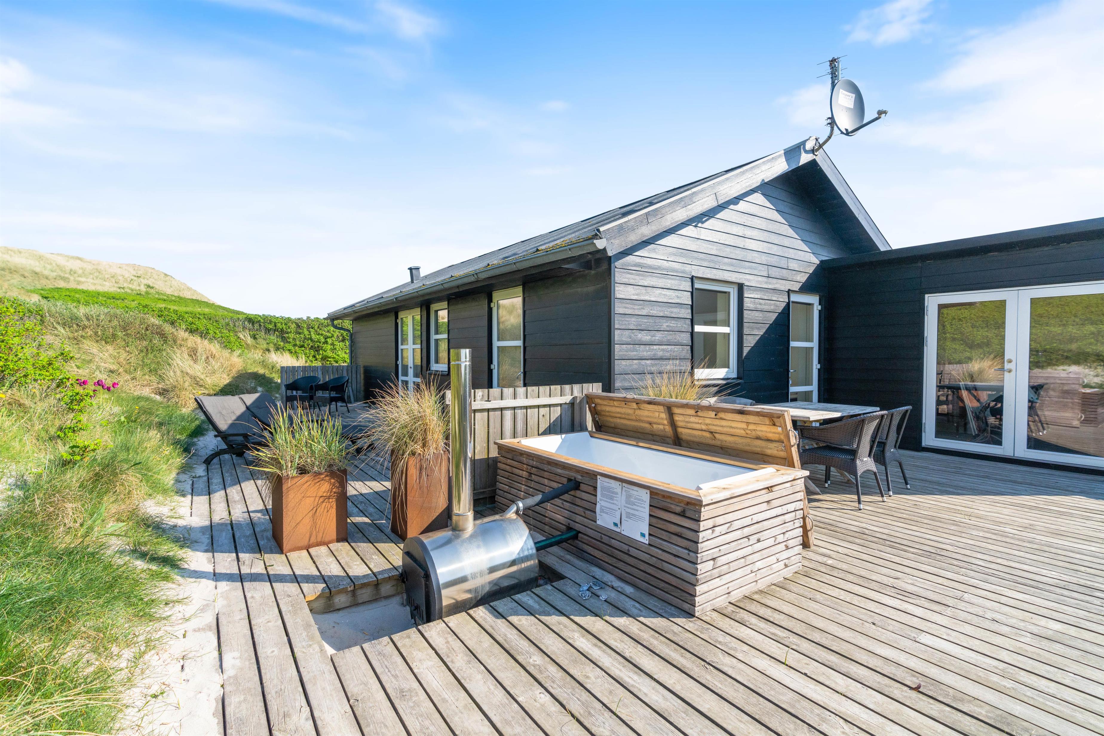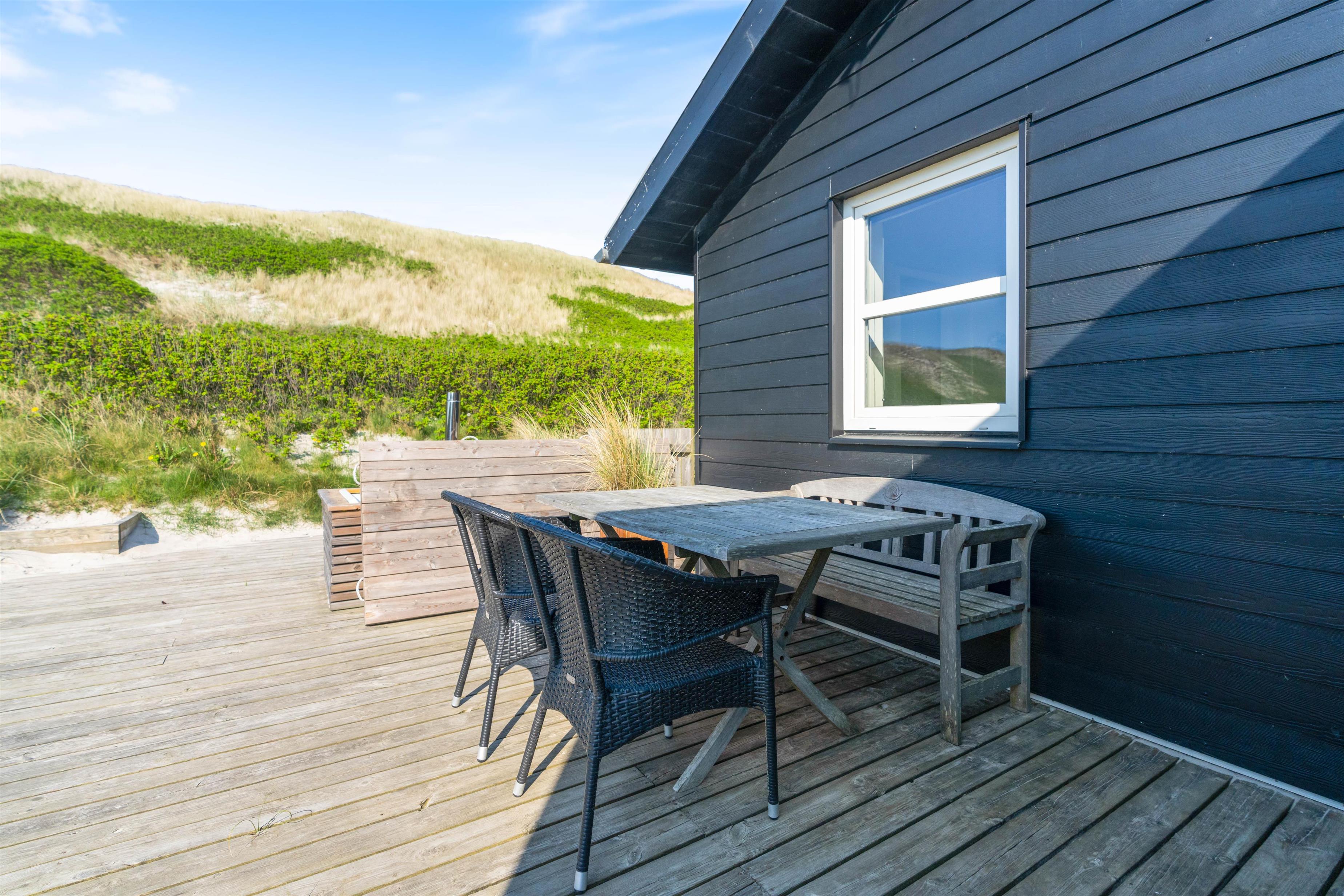 En lun sommeraften kan nydes med et lækkert grillmåltid eller i det varme vildmarksbad, mens den farverige solnedgang kan ses bag klitterne.