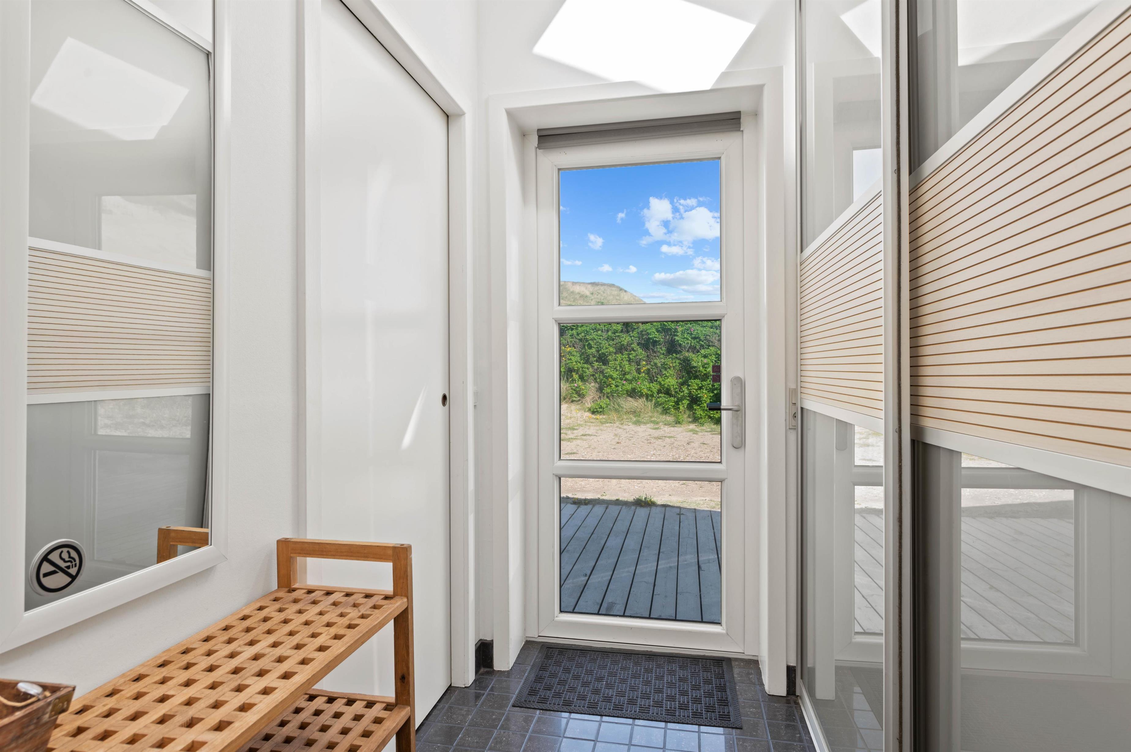 Et højdepunkt ved dette skønne feriehus er udearealet med den rummelige og afskærmede terrasse - her kan I slappe af i solen med en god bog i hånden. Den nære beliggenhed på kun 50 meter til stranden sørger for, at der ikke er langt fra tanke til handling, når I får lyst til en dukkert i vandet.