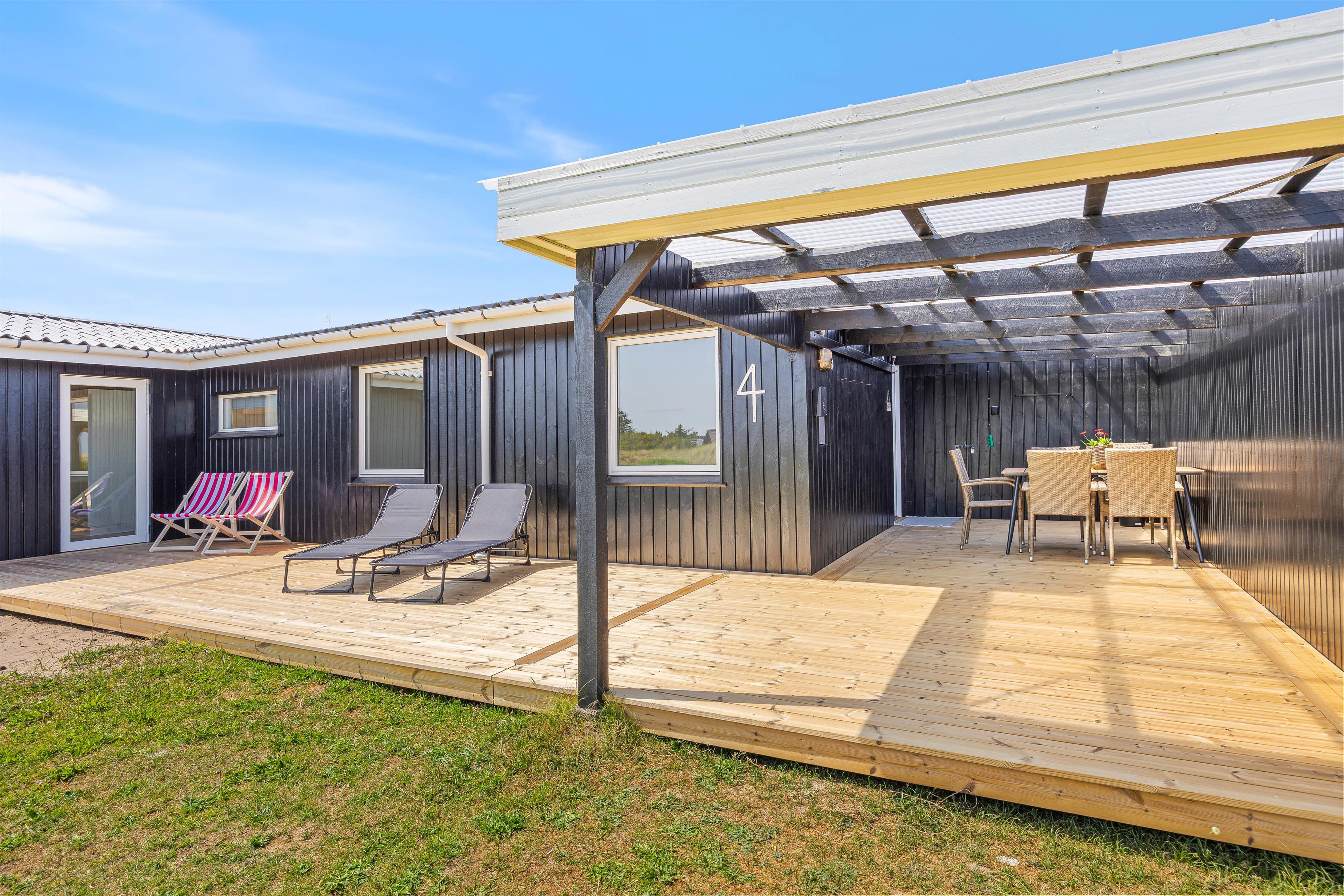 Udenfor finder I en dejlig afskærmet terrasse, som giver mulighed for at nyde solen i fred og ro. Den overdækkede del af terrassen er perfekt til de dage, hvor vejret er uforudsigeligt, men I stadig ønsker at tilbringe tid udendørs. Der er gode havemøbler og en grill på terrassen, så I kan slappe af og nyde udsigten eller et måltid under åben himmel.