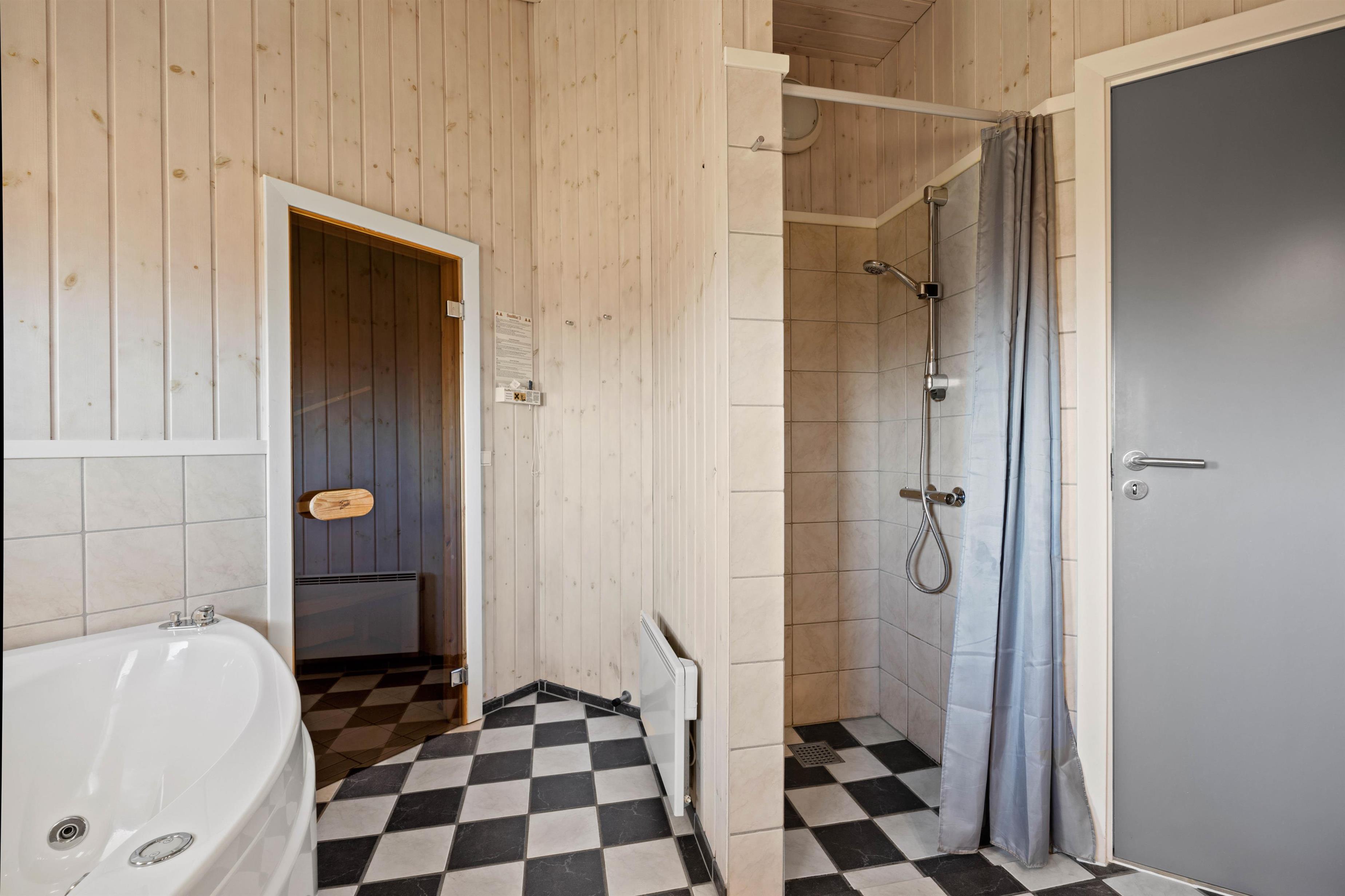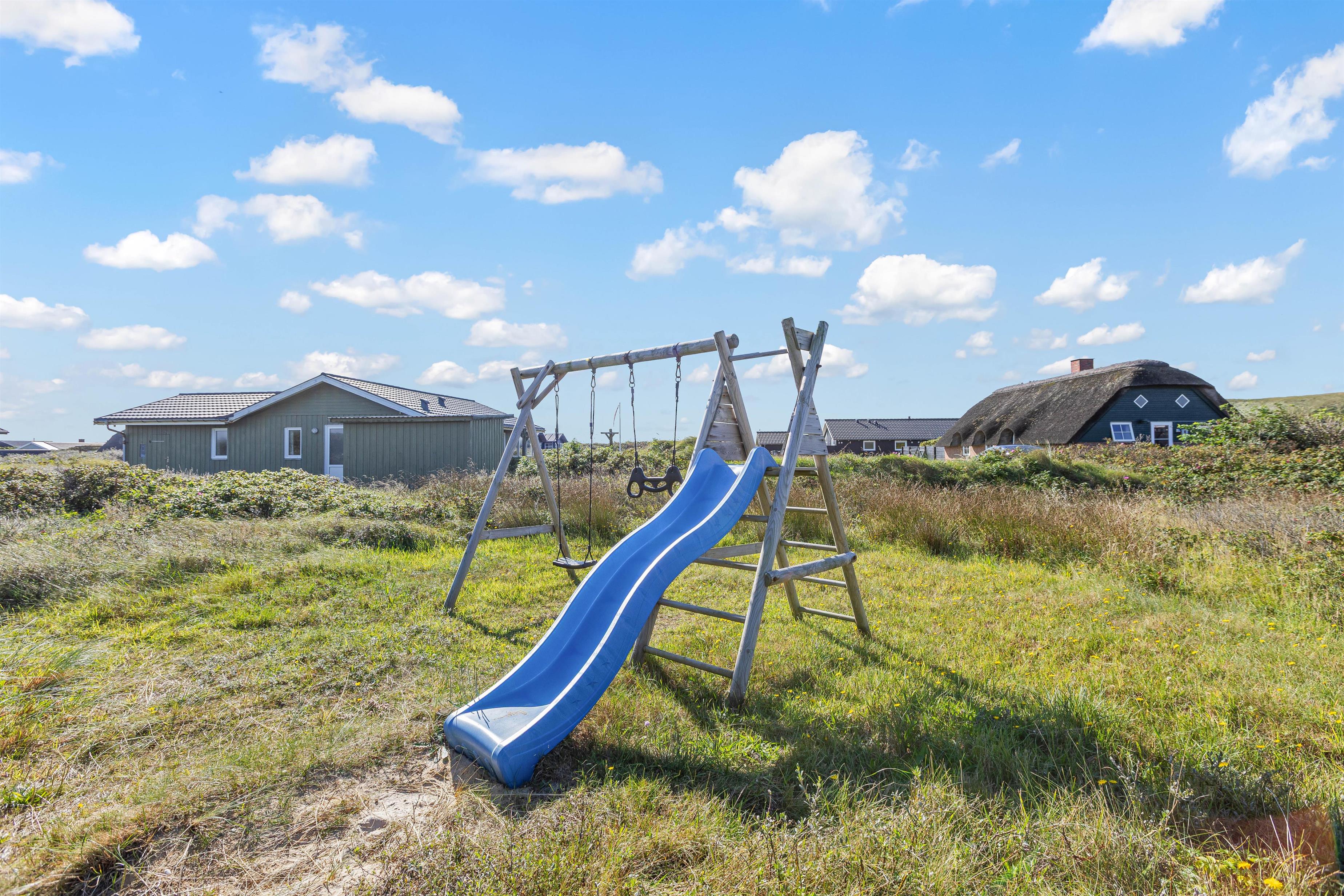Nyd en afslappende dag eller aften på den fine afskærmede og delvist overdækkede terrasse. Terrassen er naturligvis udstyret med både havemøbler og liggestole. Udenfor finder I også udevask, hvor der kan fileteres frisk fanget fisk, mens børnene leger i sandkassen eller på gyngestativet. Nyd et glas køligt hvidvin og friskfanget fisk fra Hvide Sande, eller tænd op i grillen og steg en saftig bøf og skål med vennerne, mens solen går ned i klitterne bag dig.