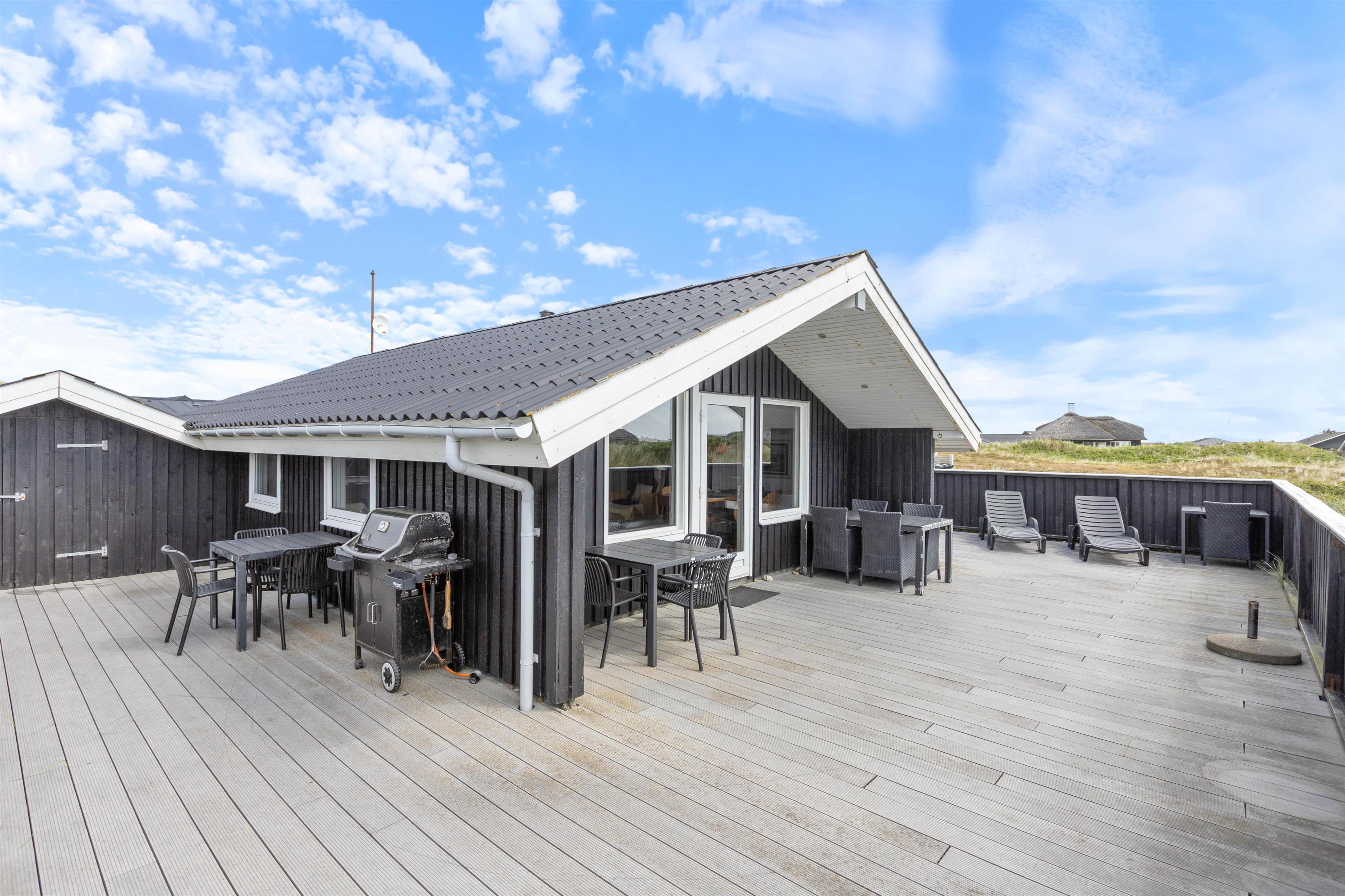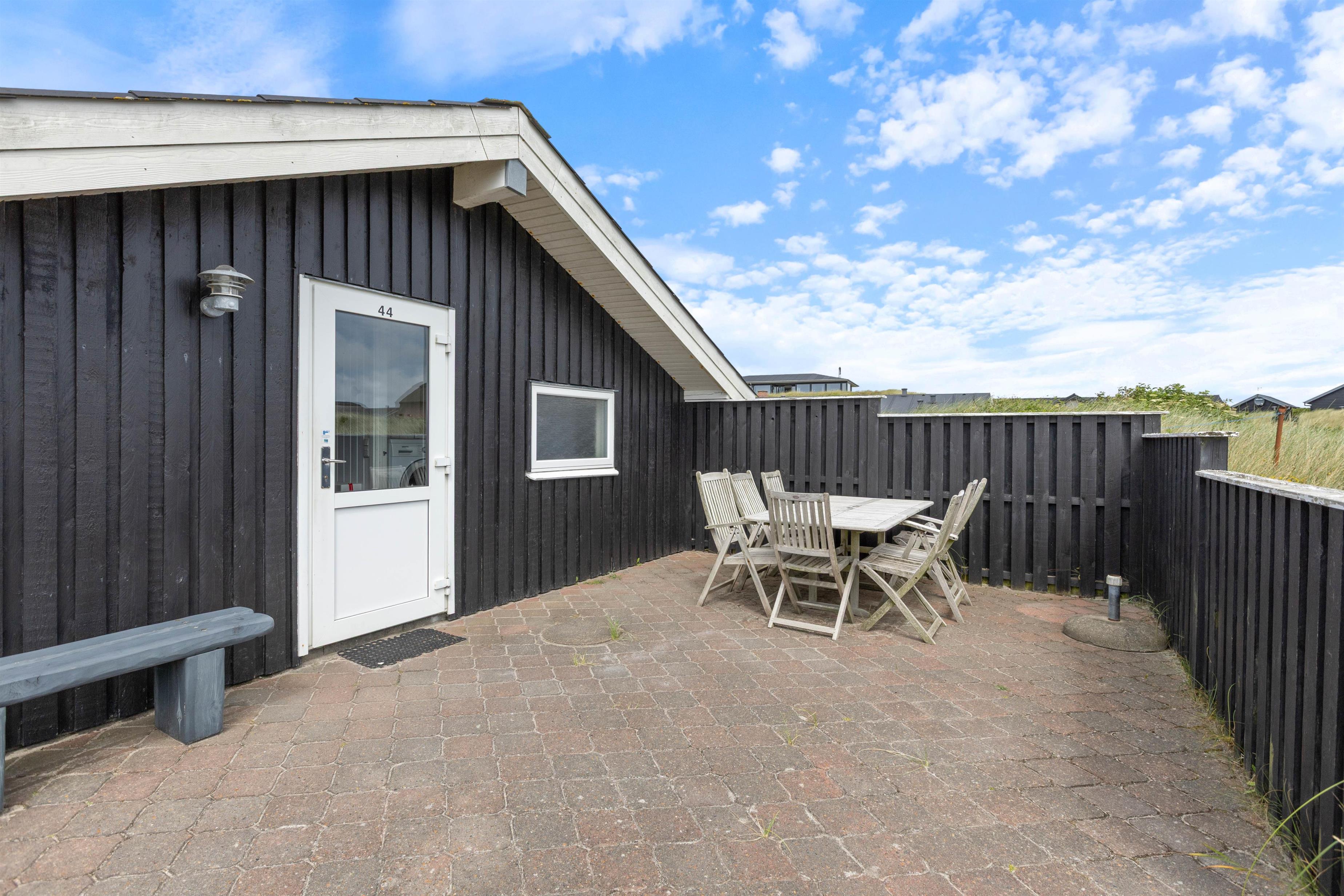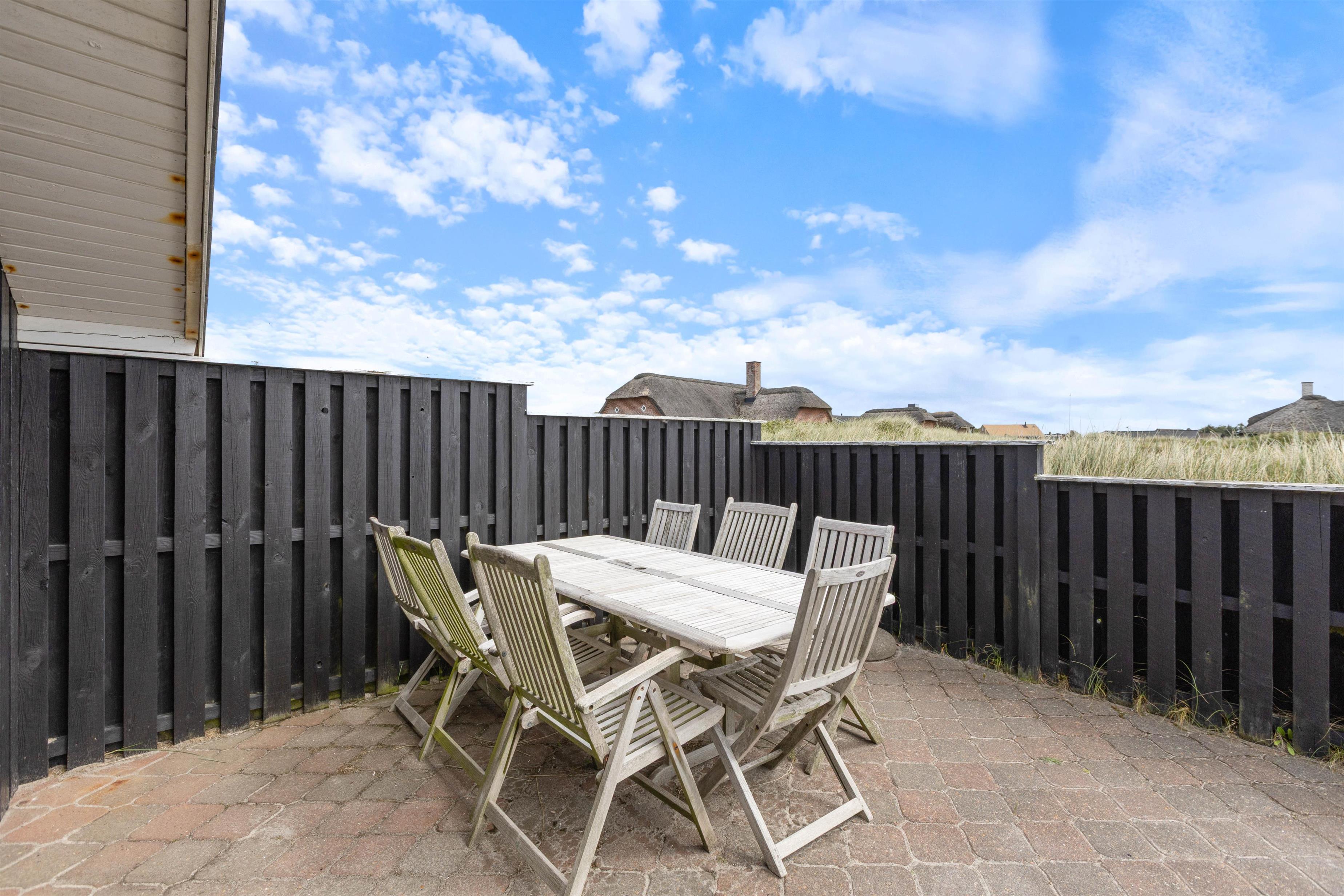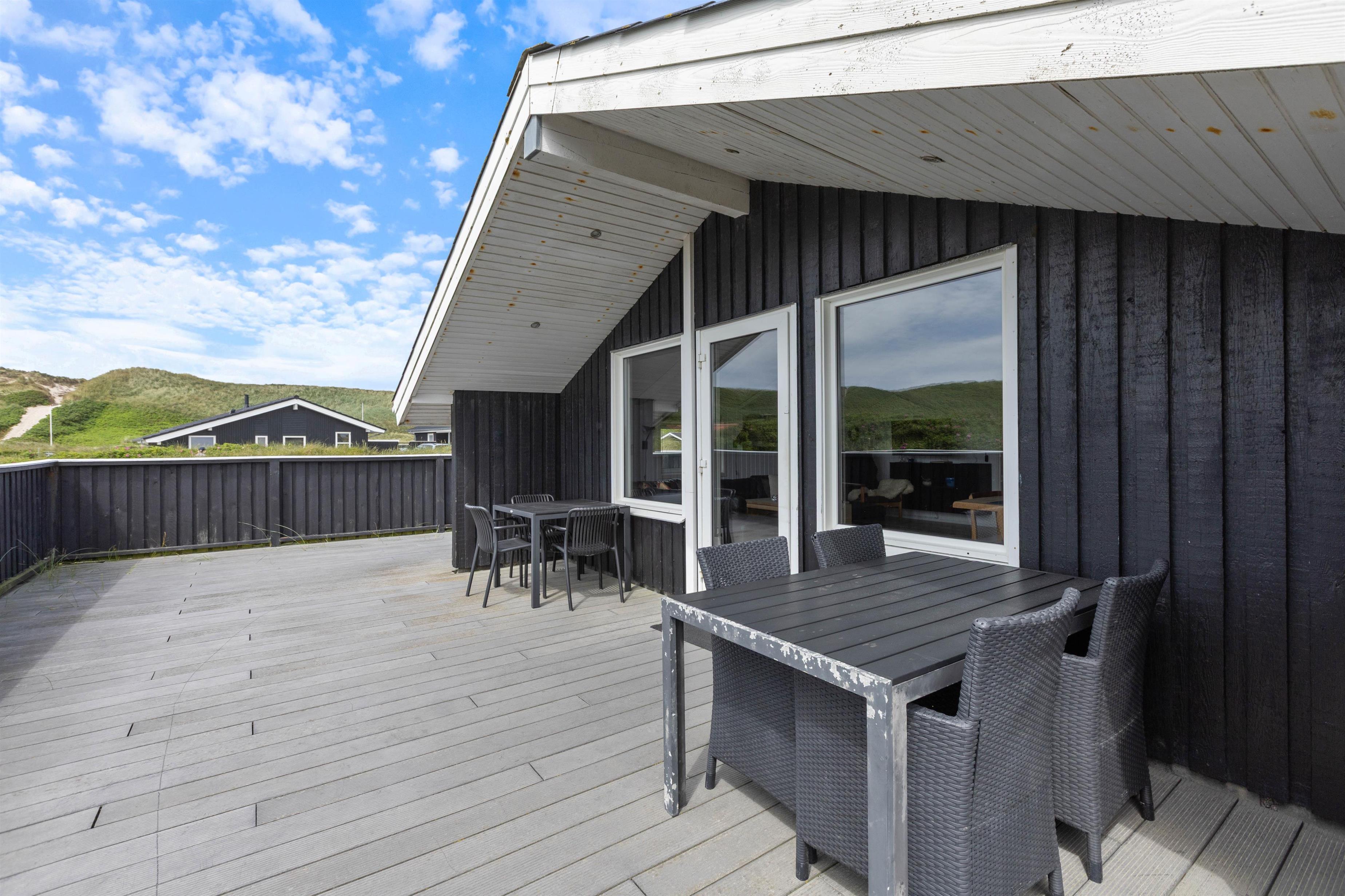 Sommerhuset er udstyret med en stor lukket terrasse, hvor i kan nye udsigten og den friske luft. På terrassen, kan man både ligge direkte i solen på solvognen. Eller man kan trække sig ind i skyggen under afdækningen eller parasollen og nye husets andre havemøbler. Her finder man altså også husets gasgrill, som samler hele jeres familie til grillmiddag, med solnedgang og havbrise i baggrunden.
