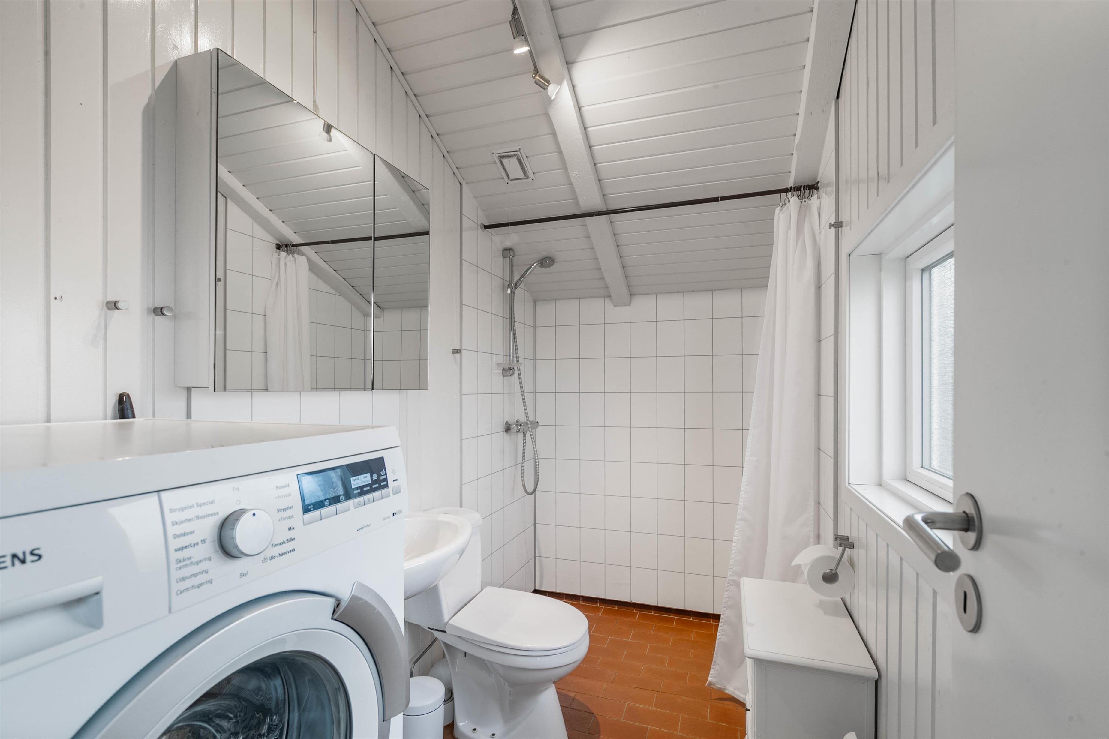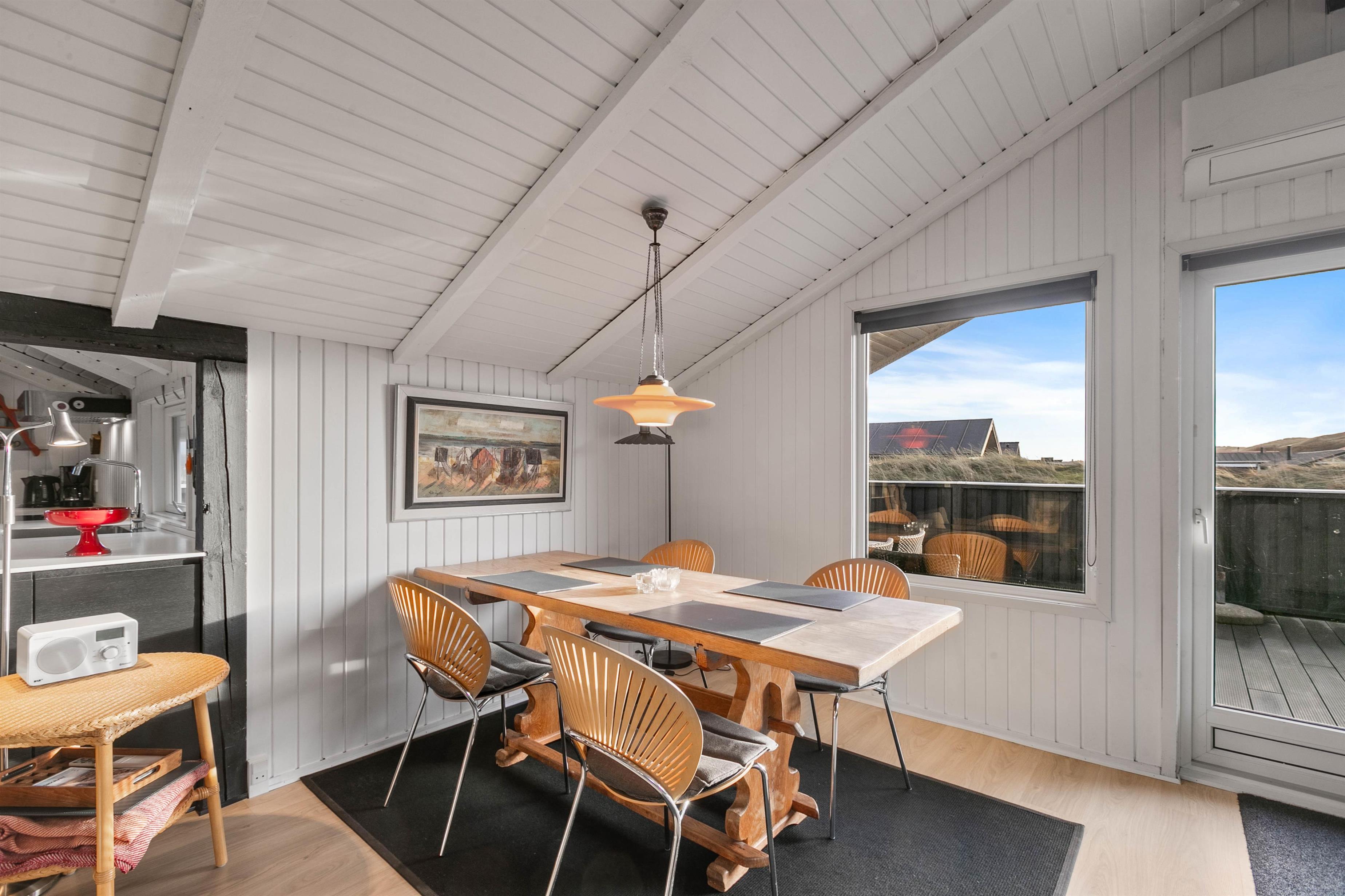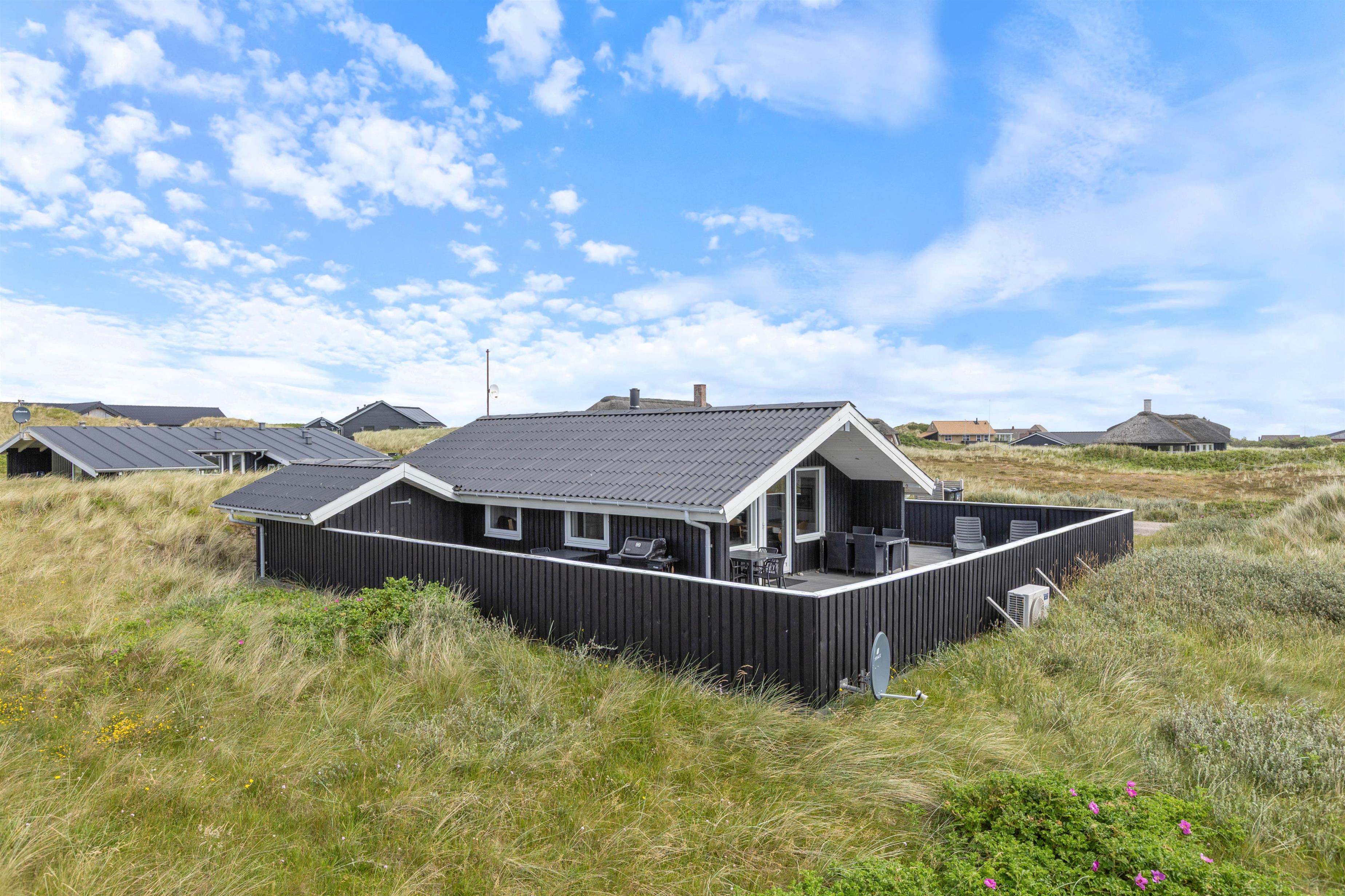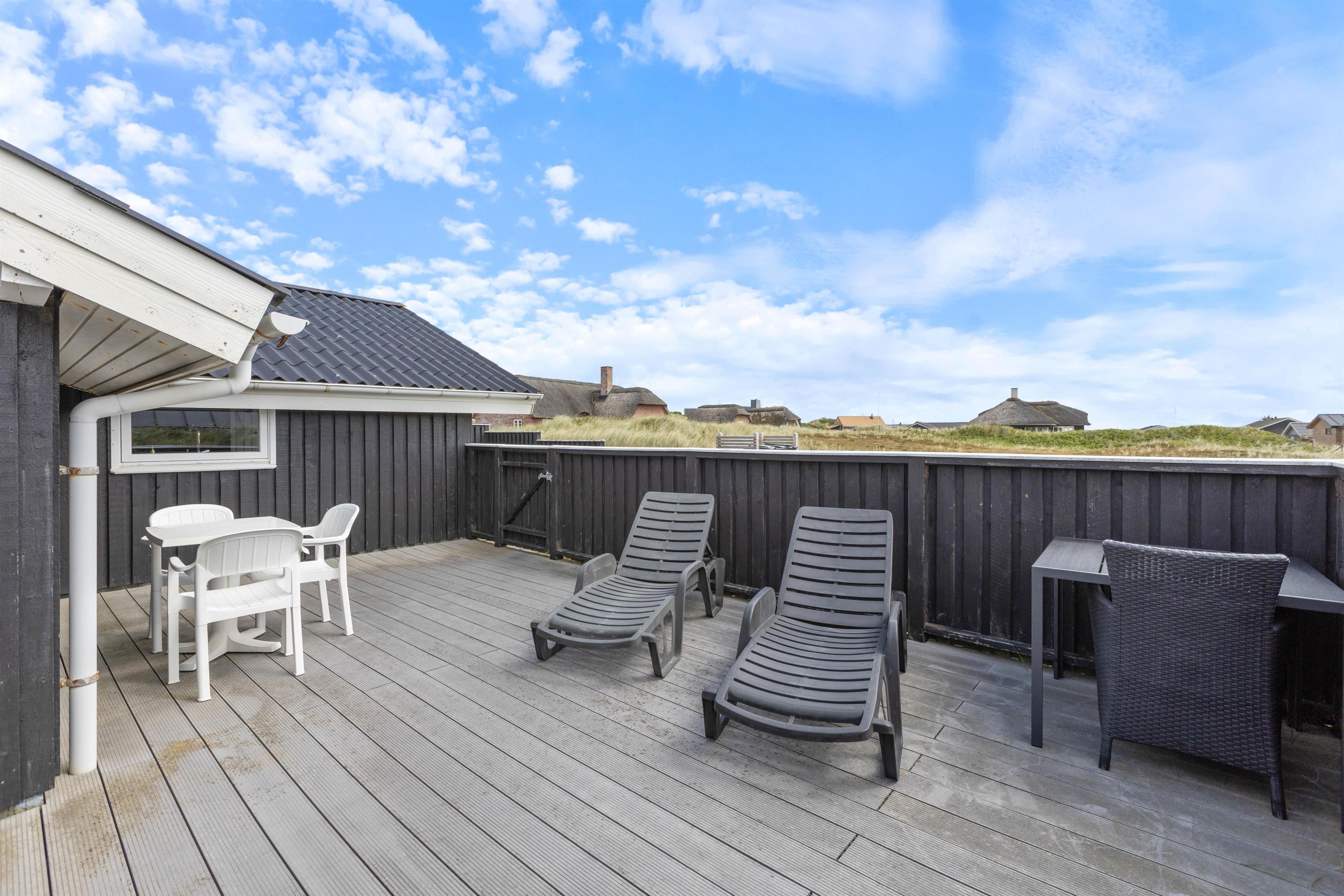 Sommerhuset er udstyret med en stor lukket terrasse, hvor i kan nye udsigten og den friske luft. På terrassen, kan man både ligge direkte i solen på solvognen. Eller man kan trække sig ind i skyggen under afdækningen eller parasollen og nye husets andre havemøbler. Her finder man altså også husets gasgrill, som samler hele jeres familie til grillmiddag, med solnedgang og havbrise i baggrunden.