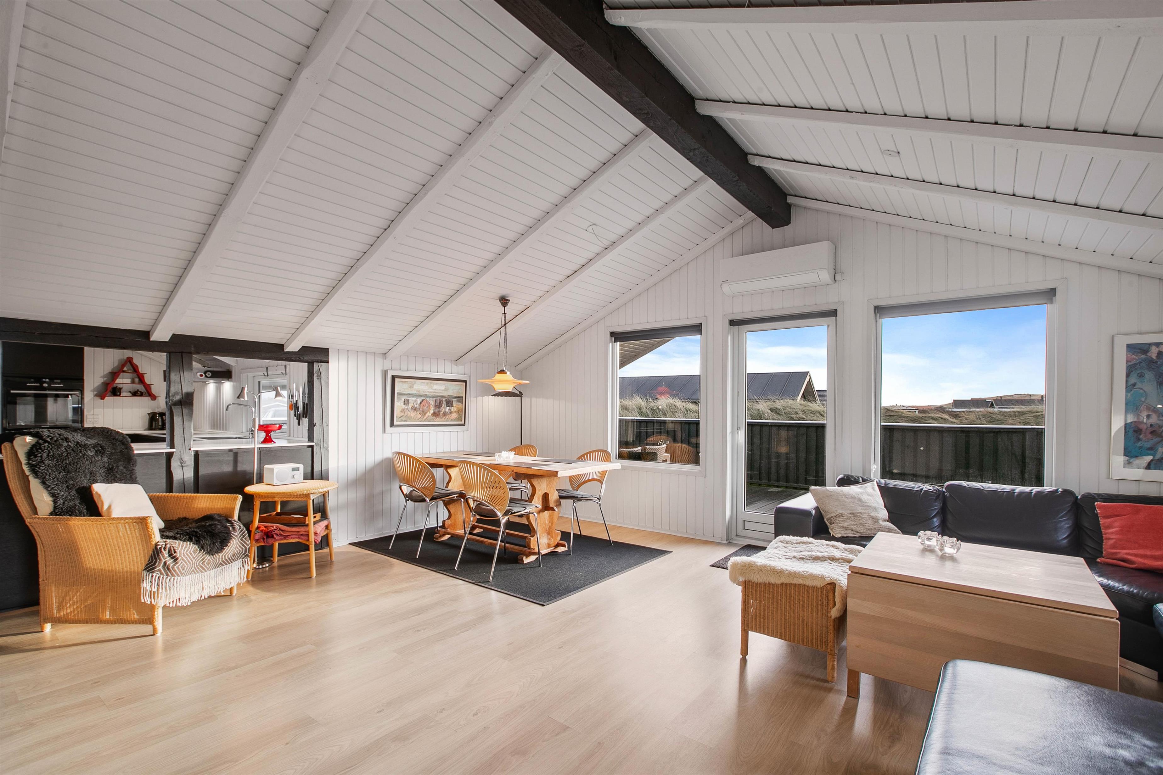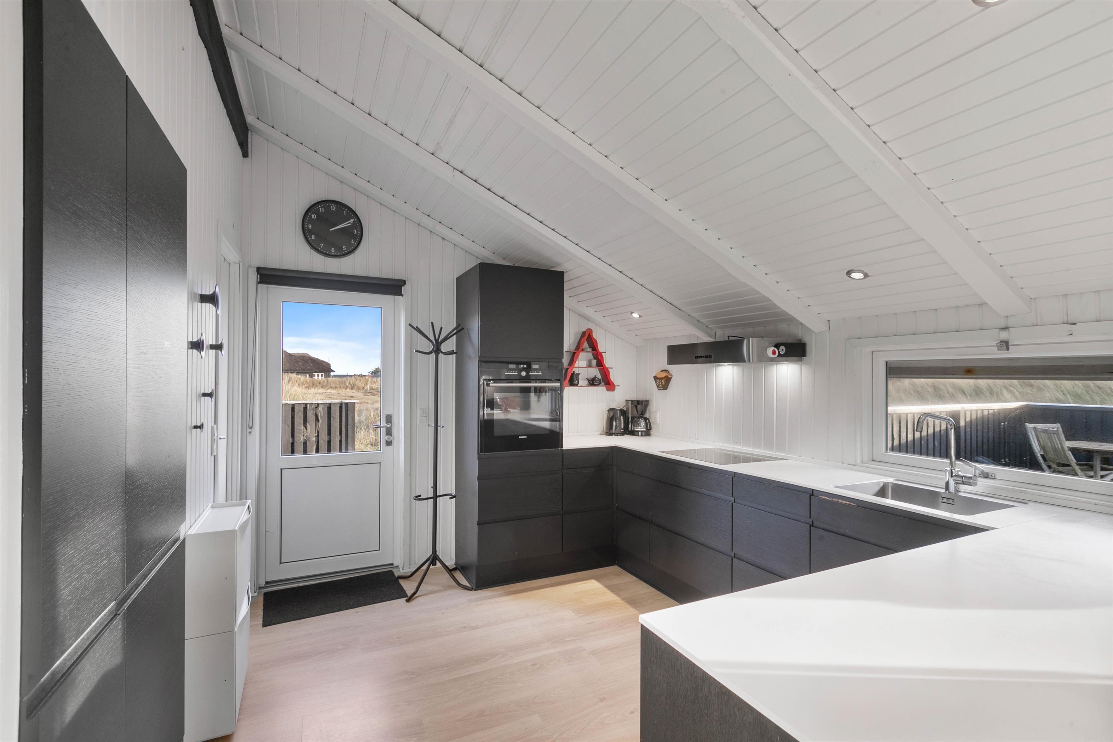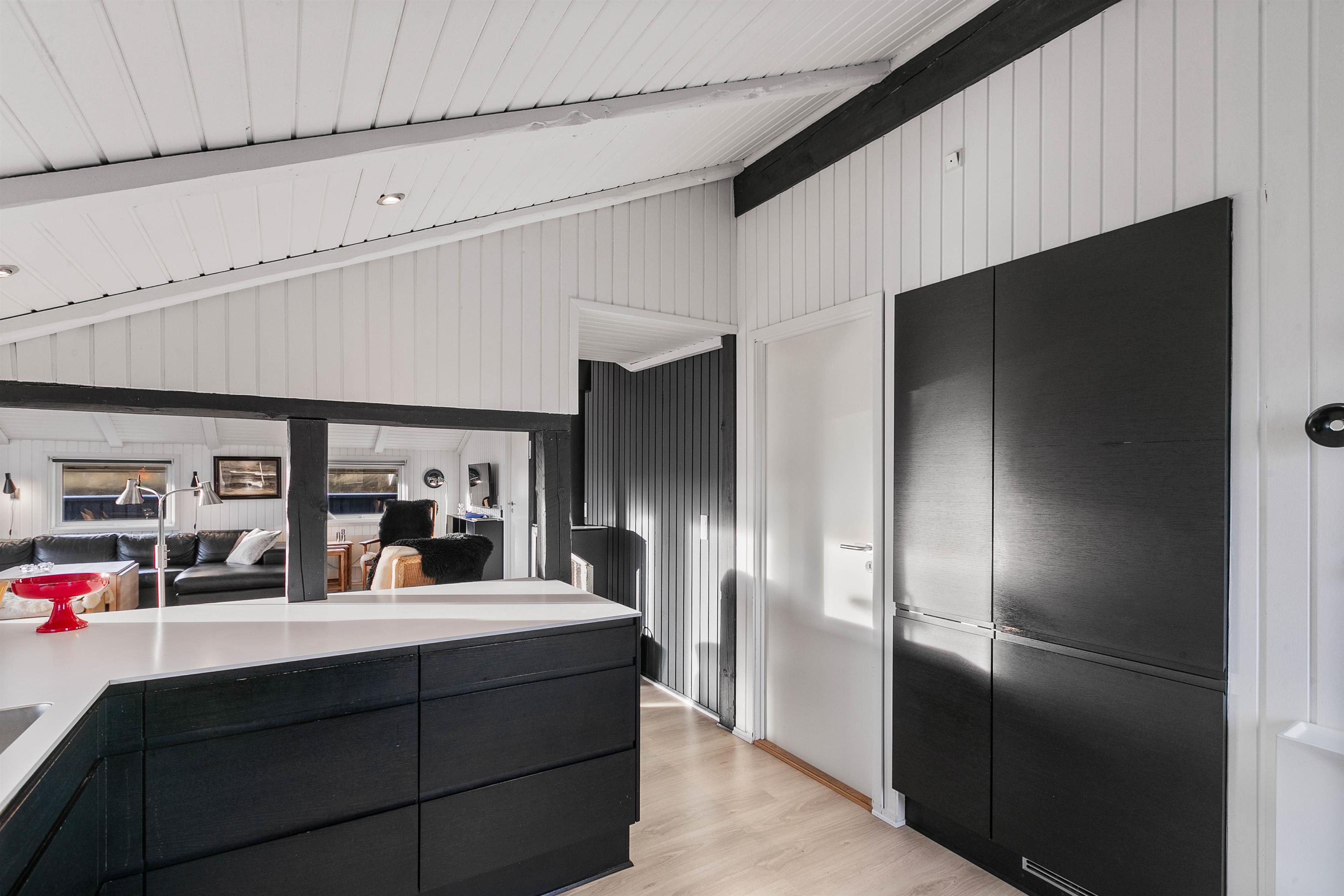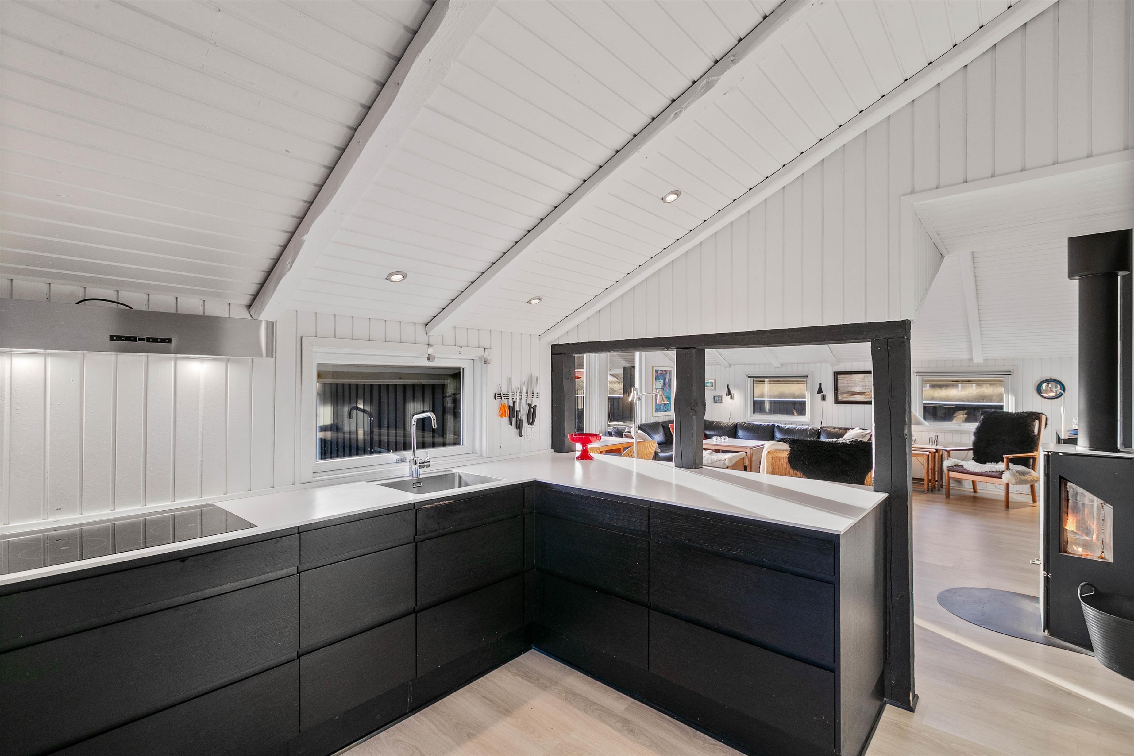 Sommerhusets hjerte er uden tvivl køkkenalrummet, hvor der bydes på nærvær og samtale med familien. Køkkenet er udstyret med både opvaskemaskine, køleskab, induktionskomfur og en 80 liter fryser. I forlængelse med køkkenet er den store og rummelige stue, med plads til hele familie. Hvoraf der både er radio og Smart-tv. Midtpunktet i køkkenalrummet er uden tvivl brændeovnen, hvor der er rig mulighed for opvarmning og at opleve den klassiske sommerhusstemning.