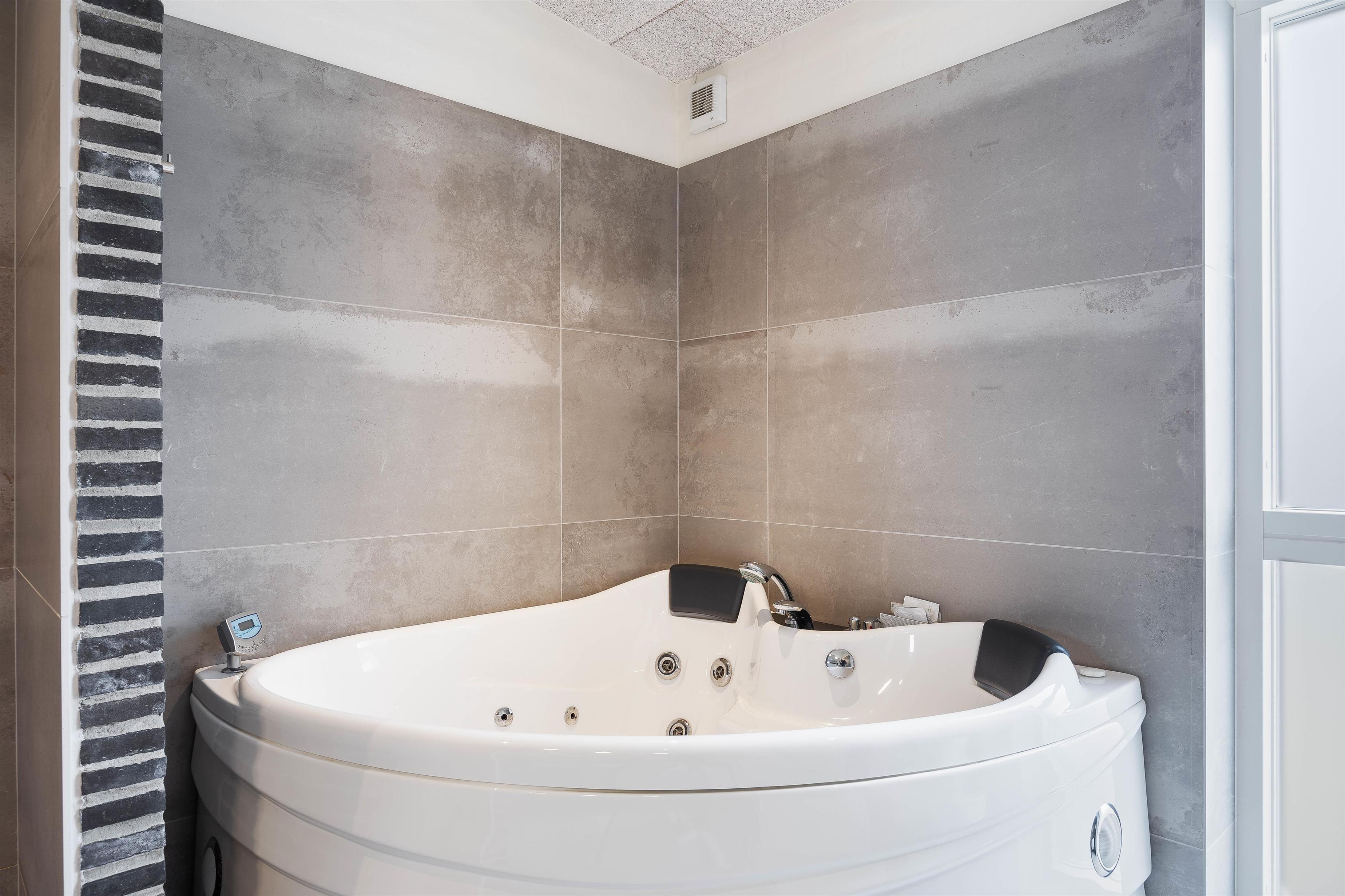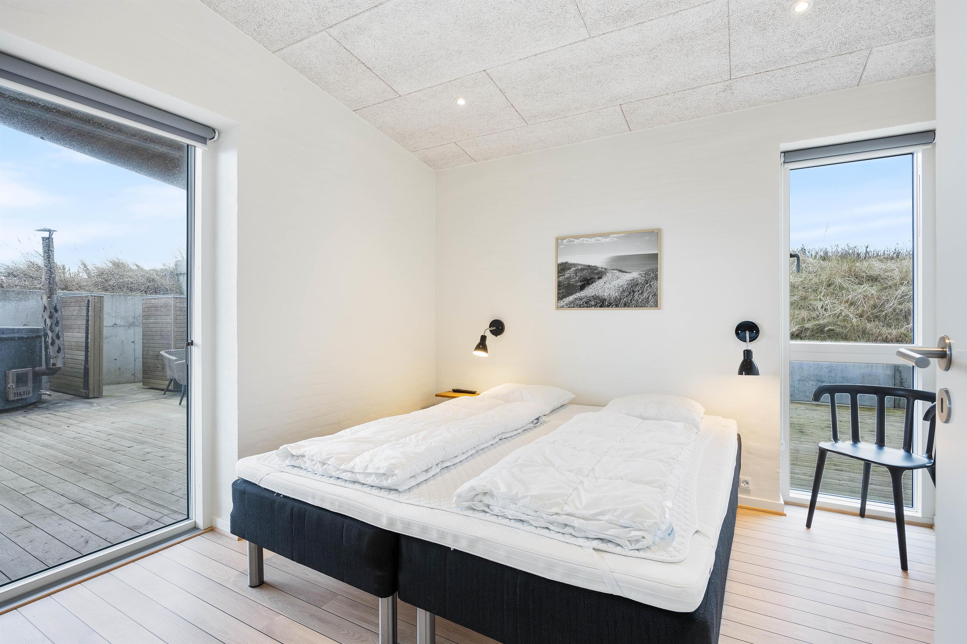Huset er med 4 soveværelser, heraf er de 2 med dobbeltsenge og 2 værelser er med hver 2 enkeltsenge. De 2 badeværelser, begge med gulvvarme og bruseniche, gør huset særligt velegnet til mange mennesker. Det ene badeværelse indeholder desuden et spabad. Vaskemaskine og tørretumbler i huset gør, at man kan pakke let og vaske undervejs.
