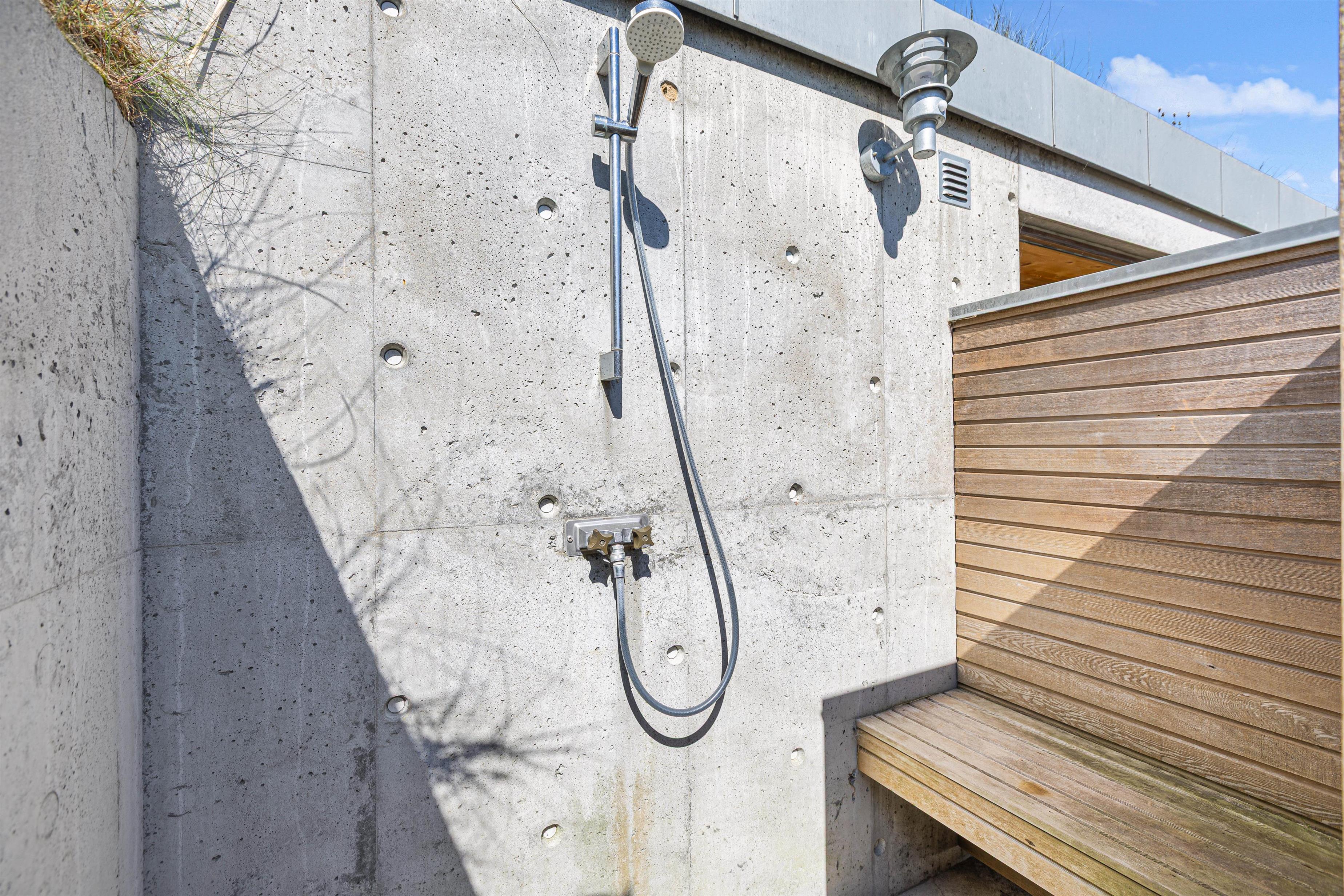 Derefter kan man lade sig afkøle under udendørsbruseren og hoppe i udesaunaen, hvorfra man har en fabelagtig og storslået udsigt over fjorden – og til stjernerne – igennem det store glasparti.
