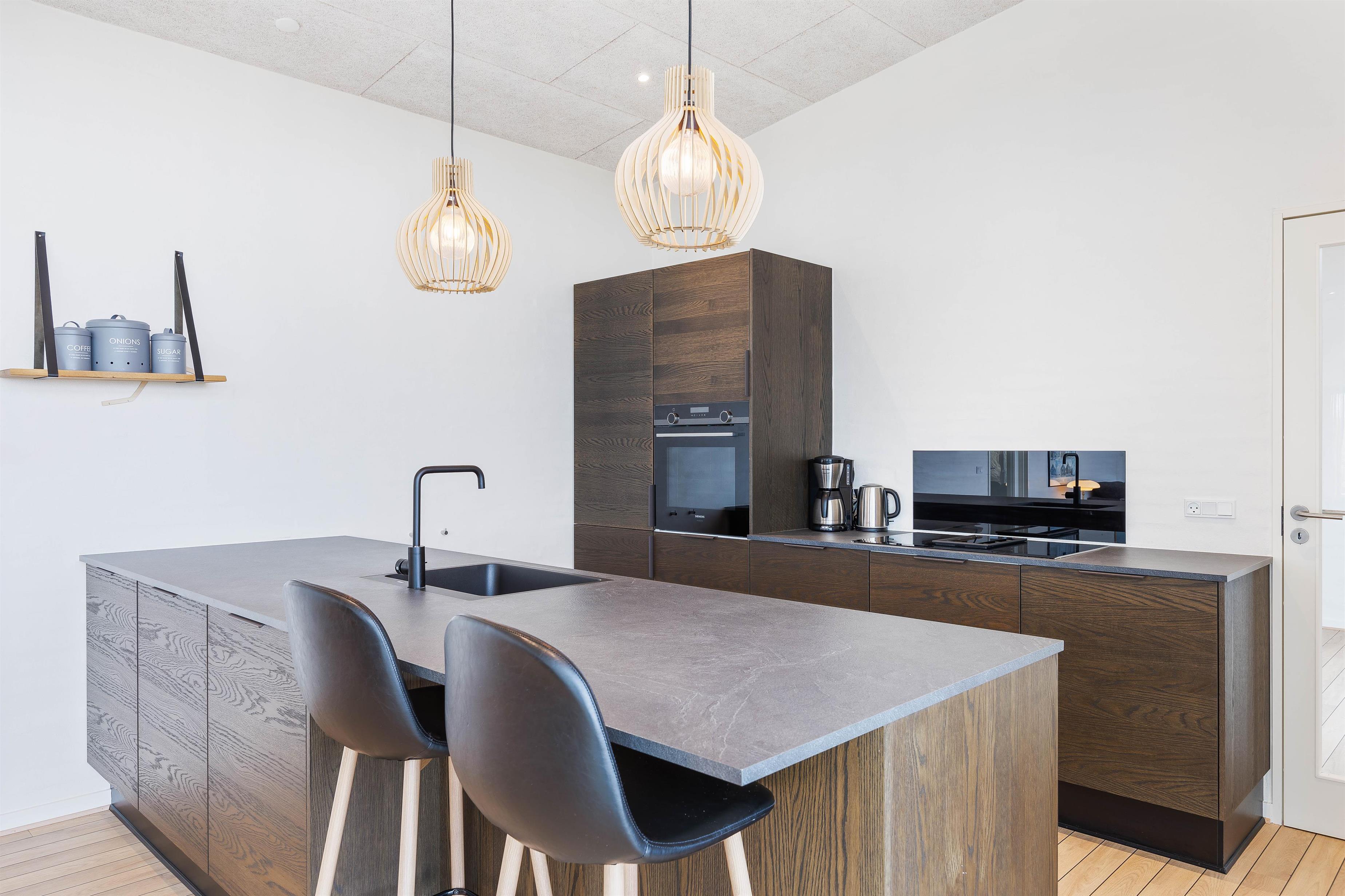 Dette flotte og spændende træferiehus er opført i gode materialer og hyggeligt indrettet, lyst og stilfuldt. Huset er til 8 personer, og man føler sig straks hjemme her.