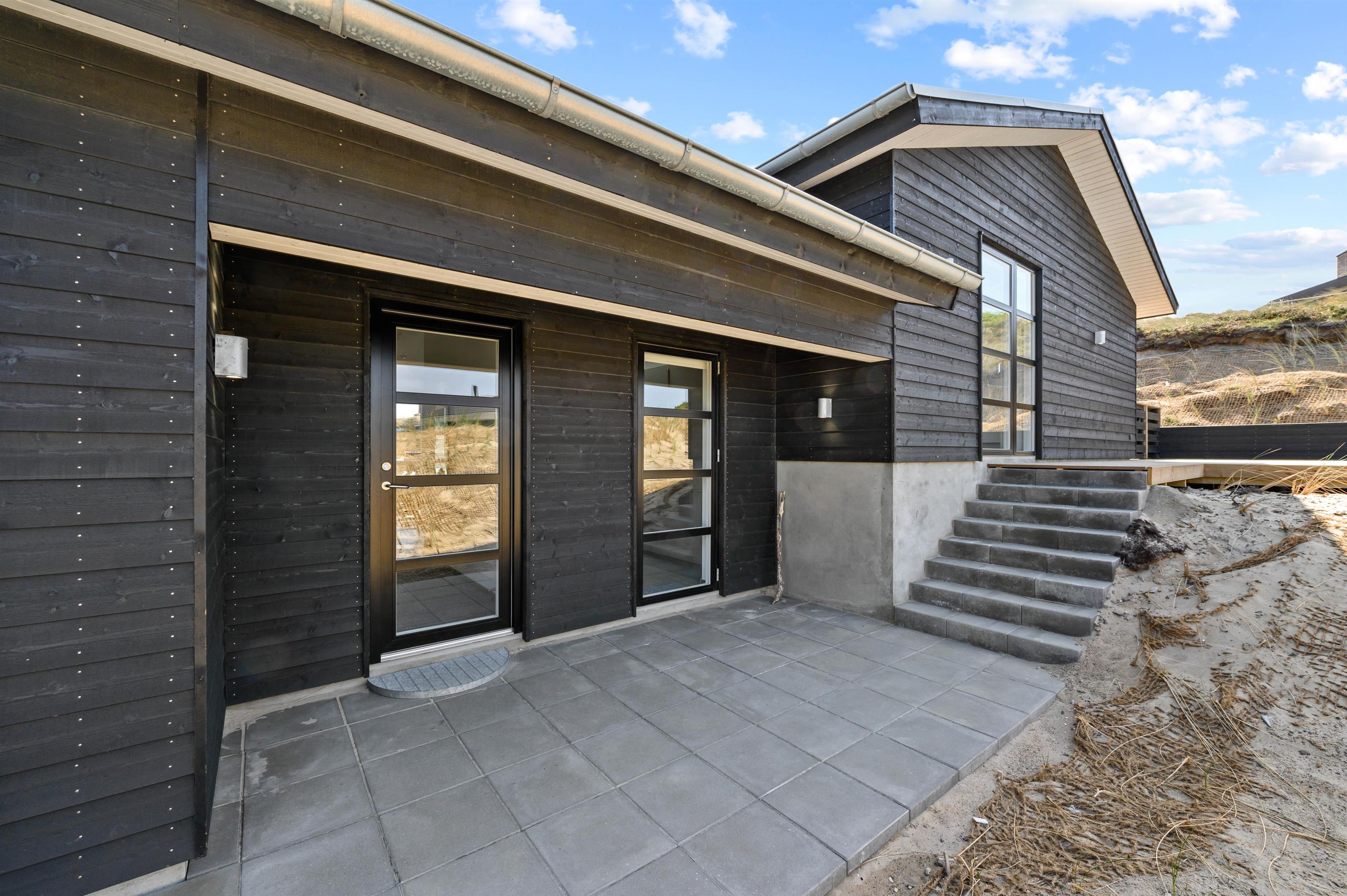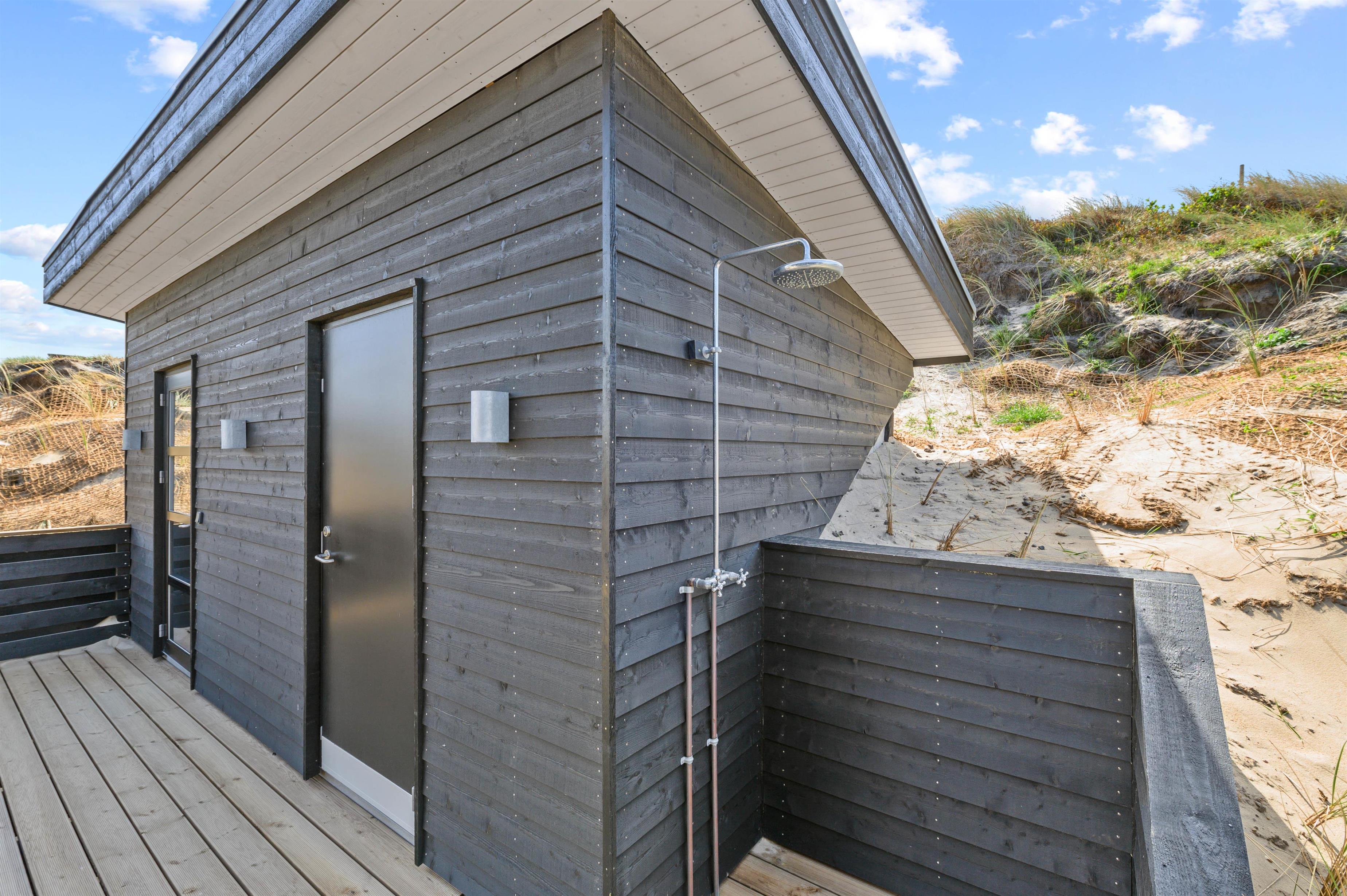 På terrassen er der en udendørs bruser, så I kan skylle tæerne fri af sand efter en tur til stranden, og til de yngste feriegæster er der en sandkasse på grunden.
