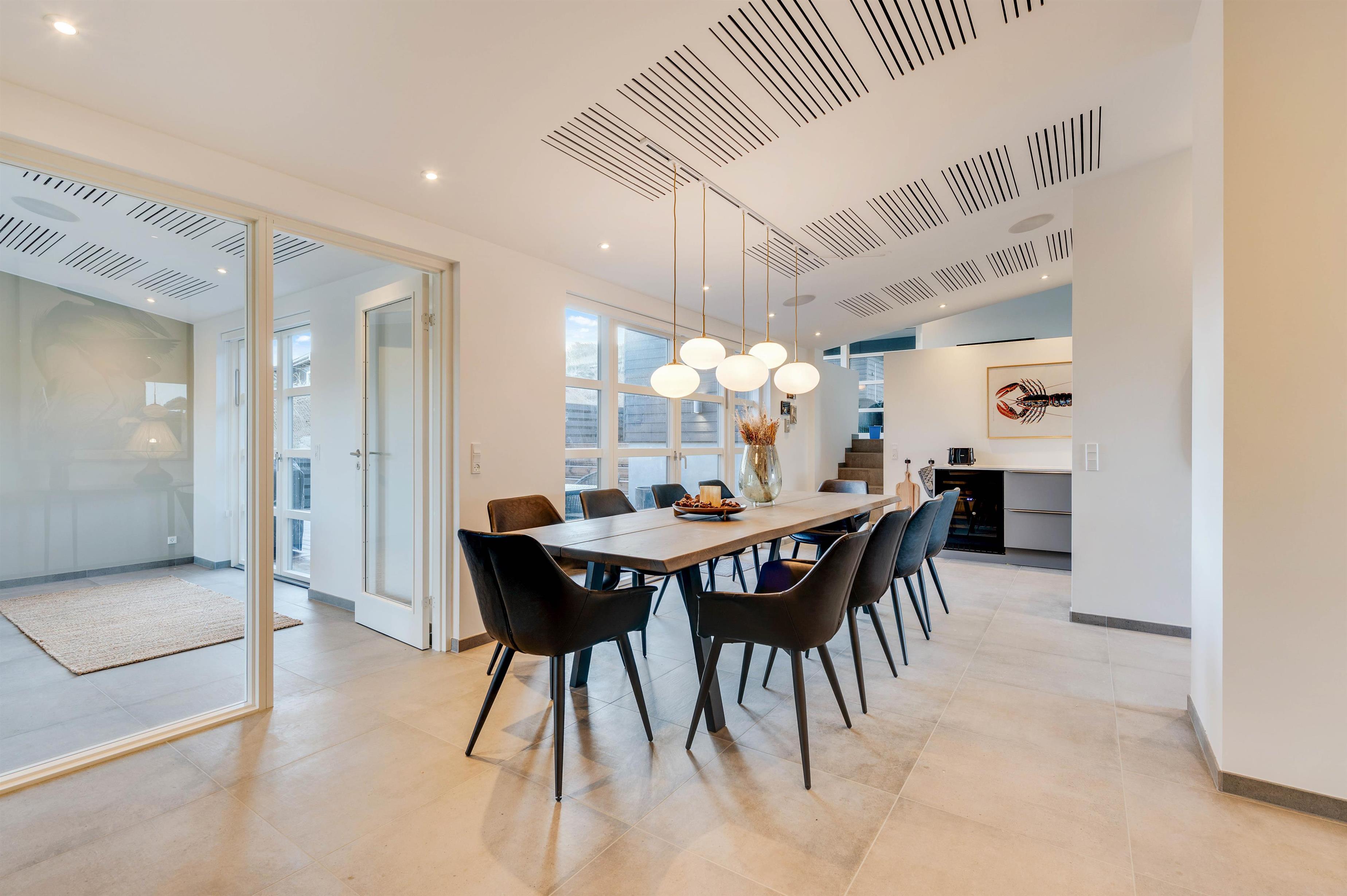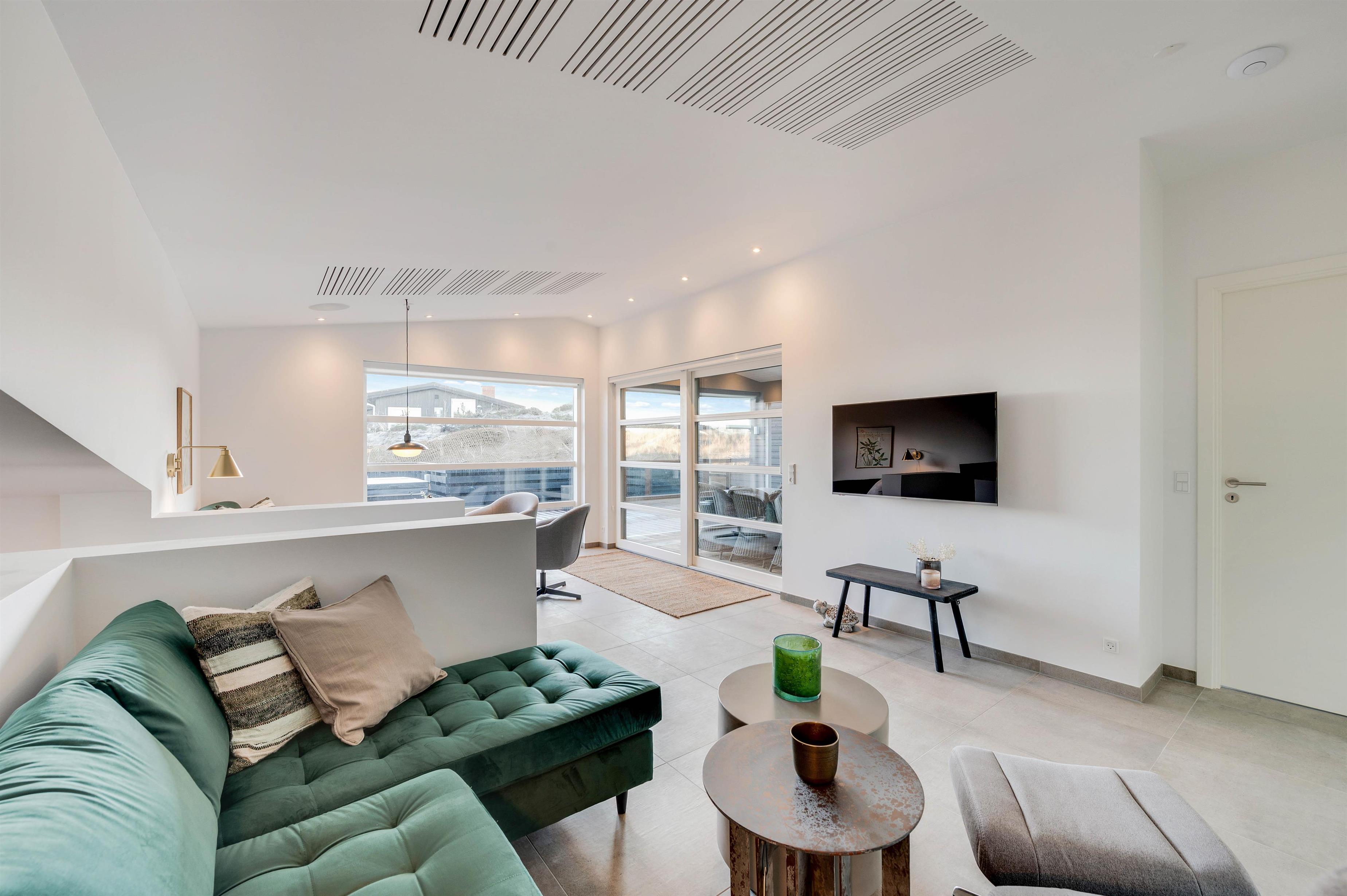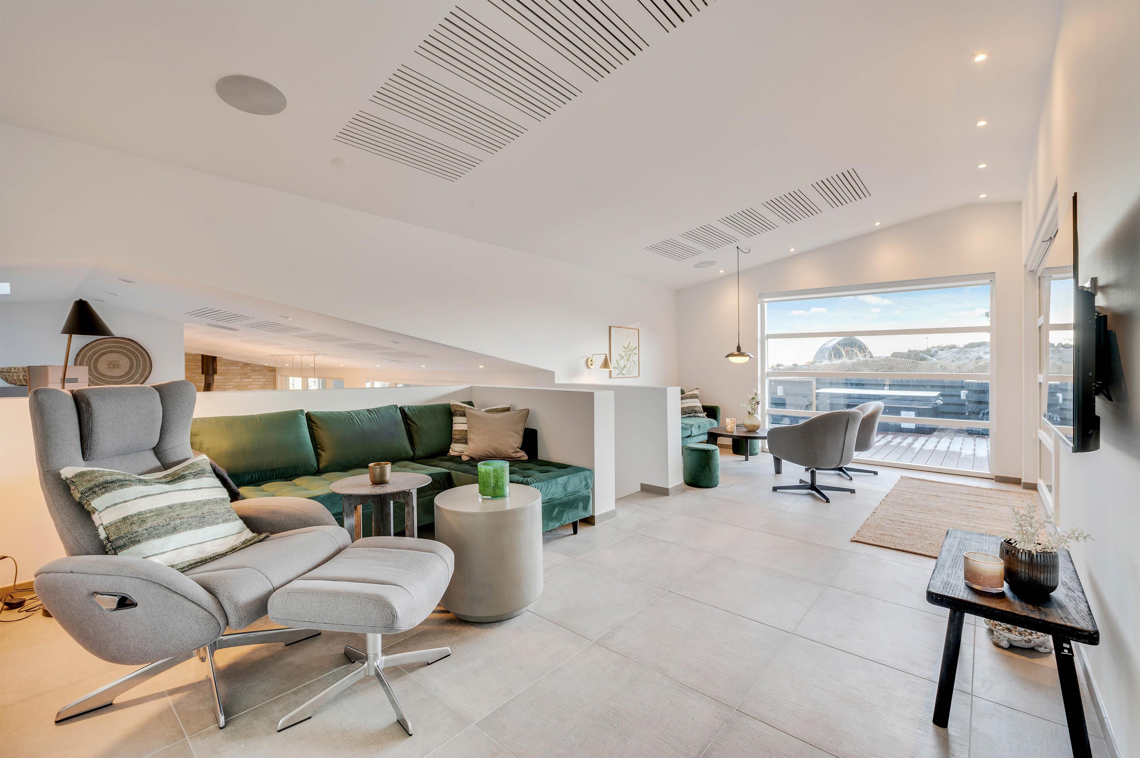 I sommerhusets indre er intet overladt til tilfældighederne. Den moderne og stilfulde indretning i flotte kvalitetsmaterialer sætter de helt perfekte rammer om den luksuriøse ferie.