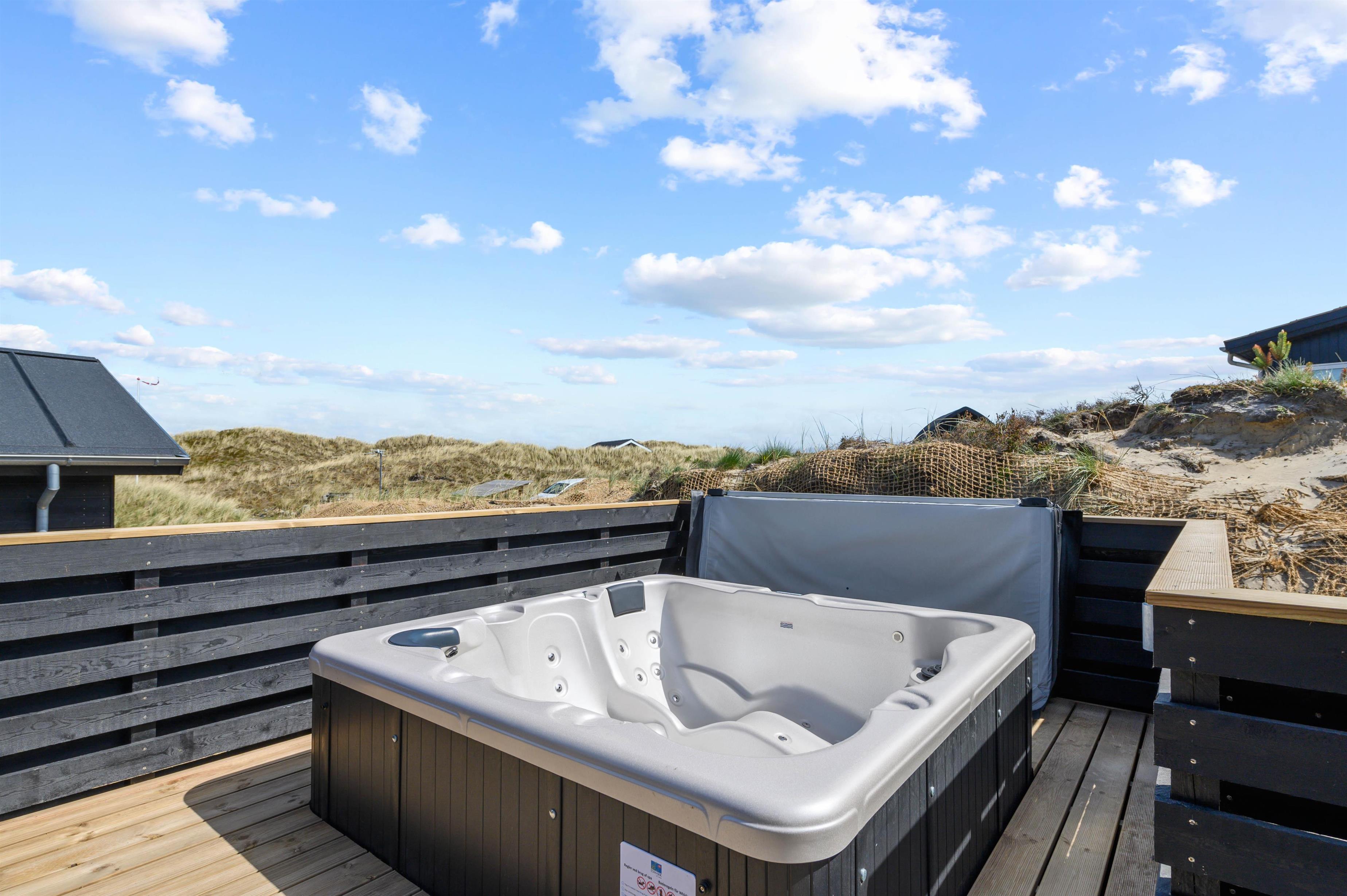Her venter jer de skønneste wellnessoplevelser i sommerhusets udesauna såvel som den store udendørs spa på terrassen. Der er altså i den grad lagt op til, at I kan nyde de naturskønne omgivelser i fulde drag. Sommerhuset byder også på en udebruser, som er tilgængelig fra april til november.