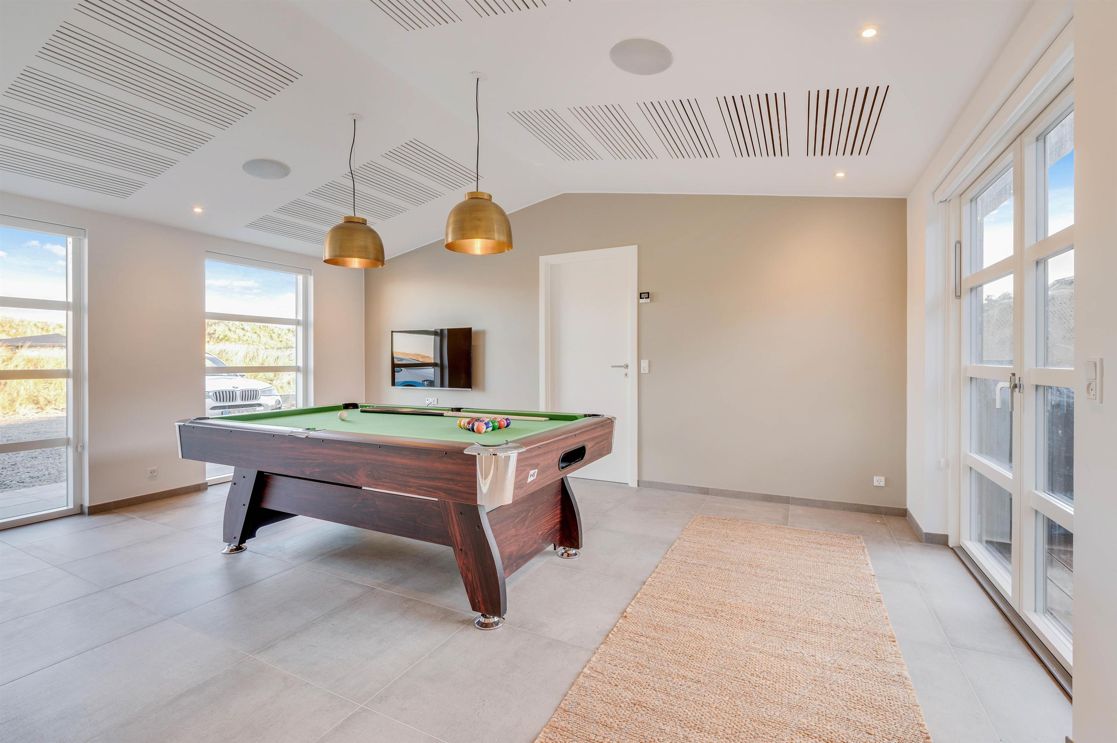 Feriehuset har også et aktivitetsrum med billardbord, hvor I kan snuppe et hyggeligt spil billard over kaffen eller rødvinen. I aktivitetsrummet finder I også en Playstation 5.