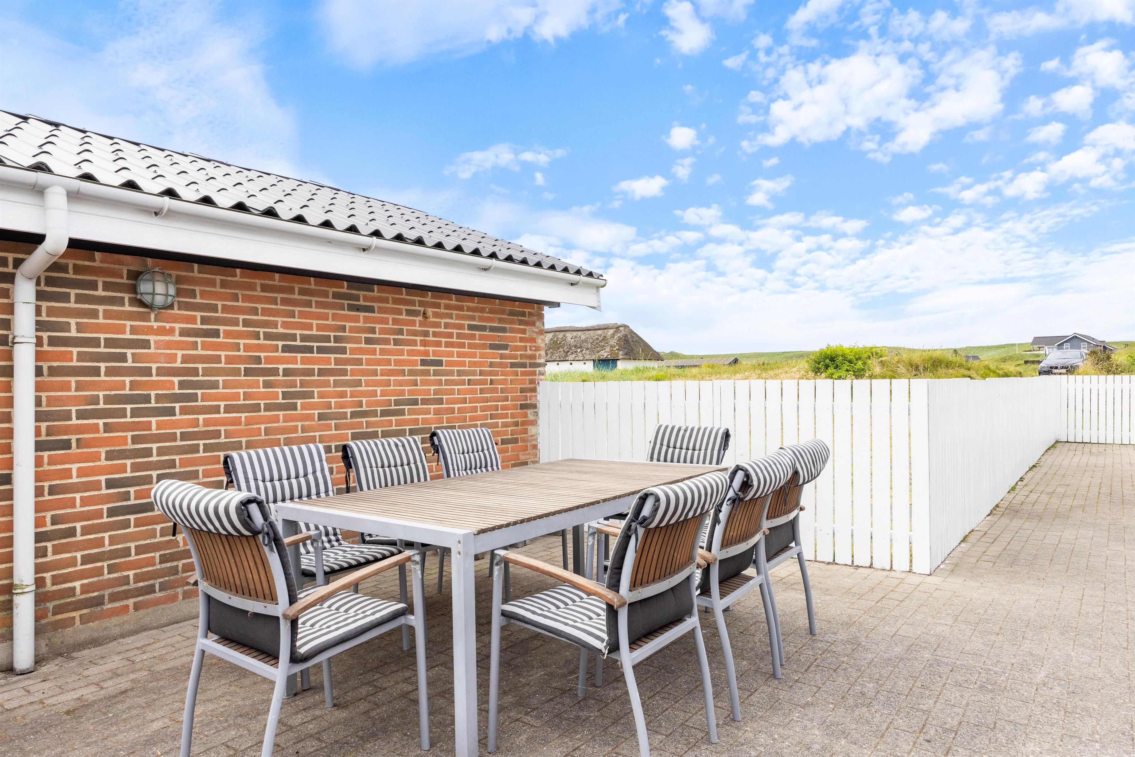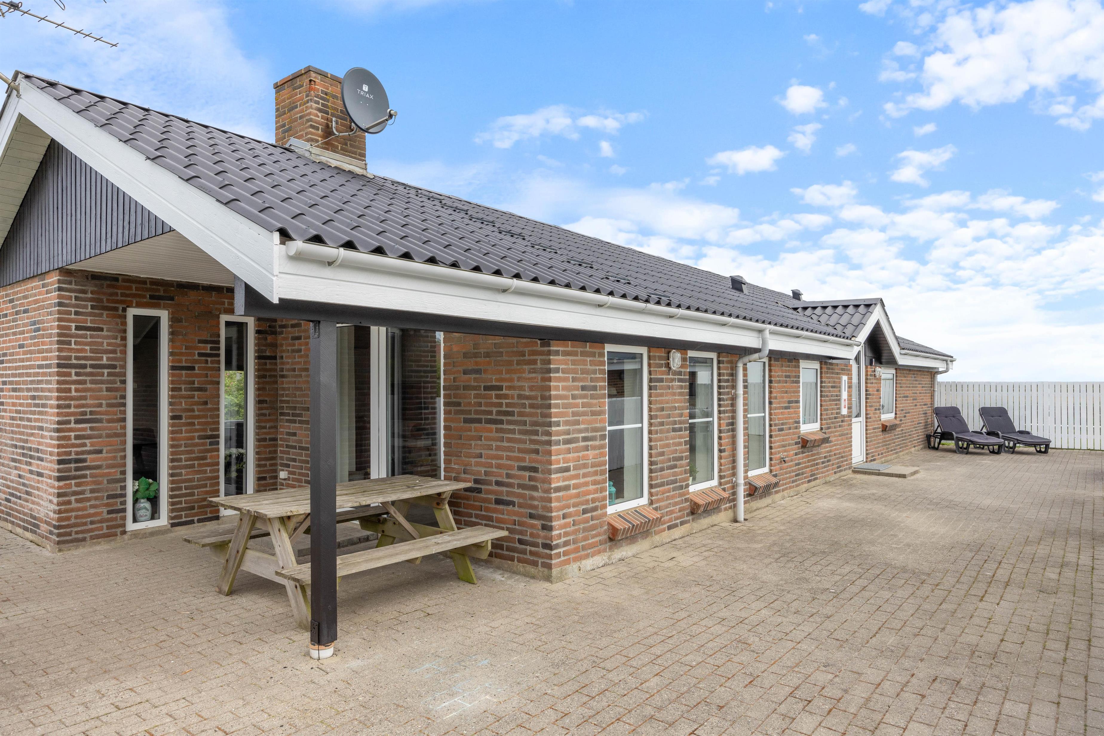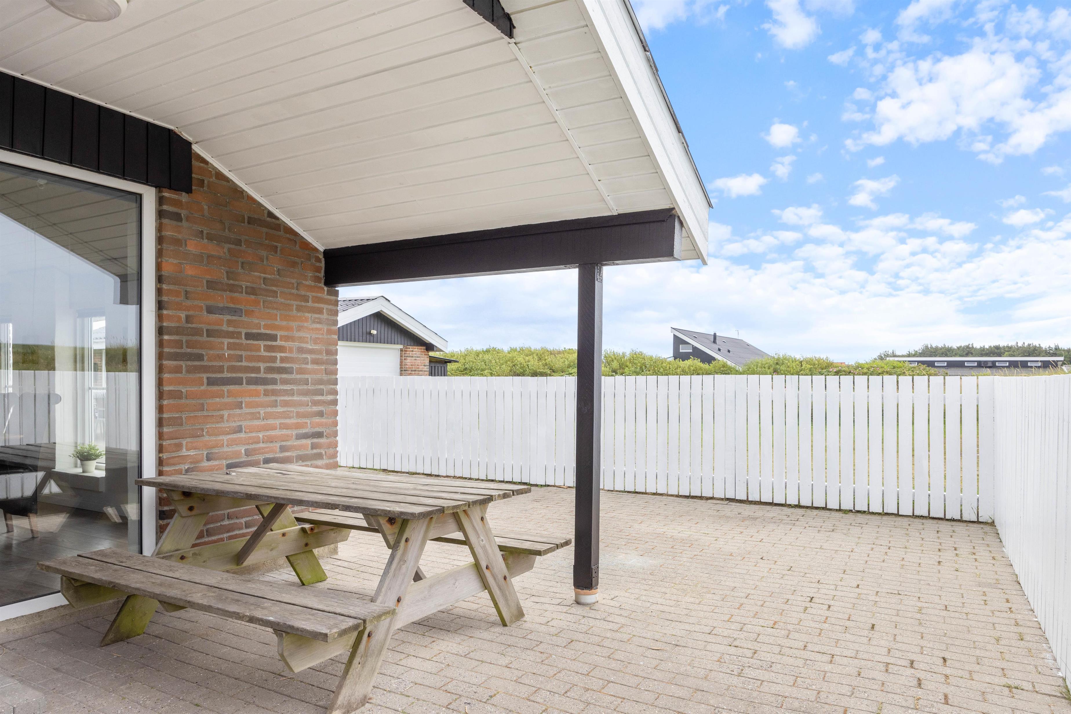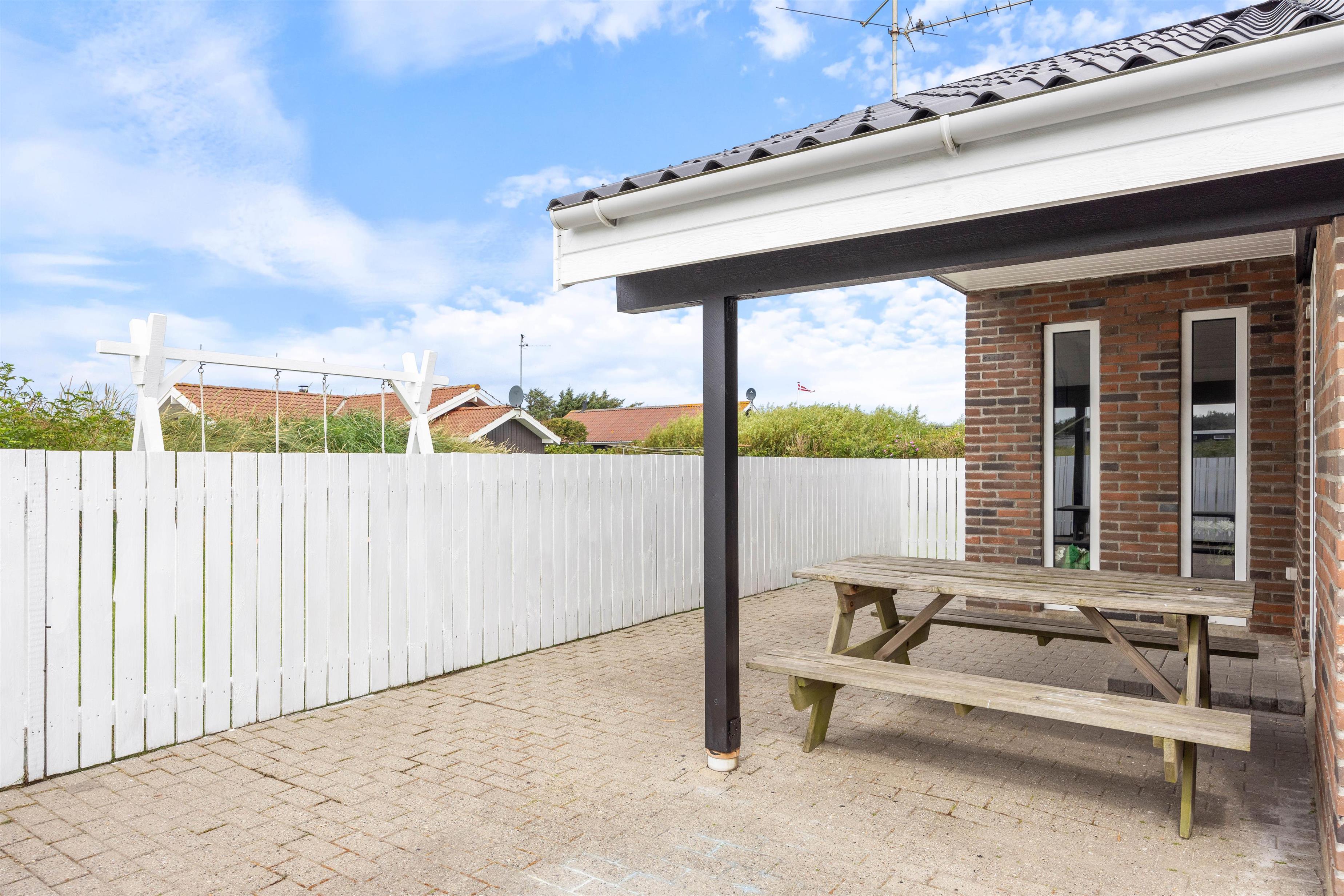 Sommerhuset har en god stor, lukket terrasse. Du har derfor god mulighed for at finde en dejlig lækrog, hvor du kan sidde med en god bog og en kop kaffe, mens børnene og hundene leger. Derudover finder I også en lille overdækket hundegård udenfor, hvor der er plads til, at hundene kan slappe af.