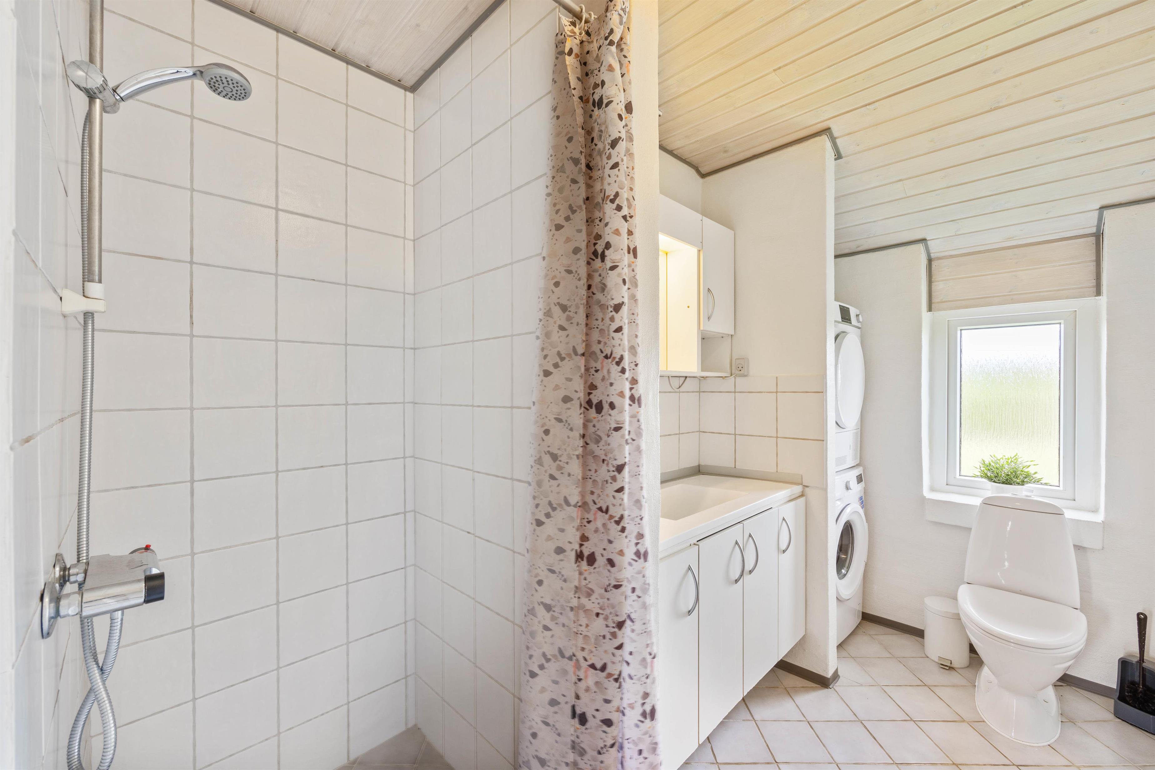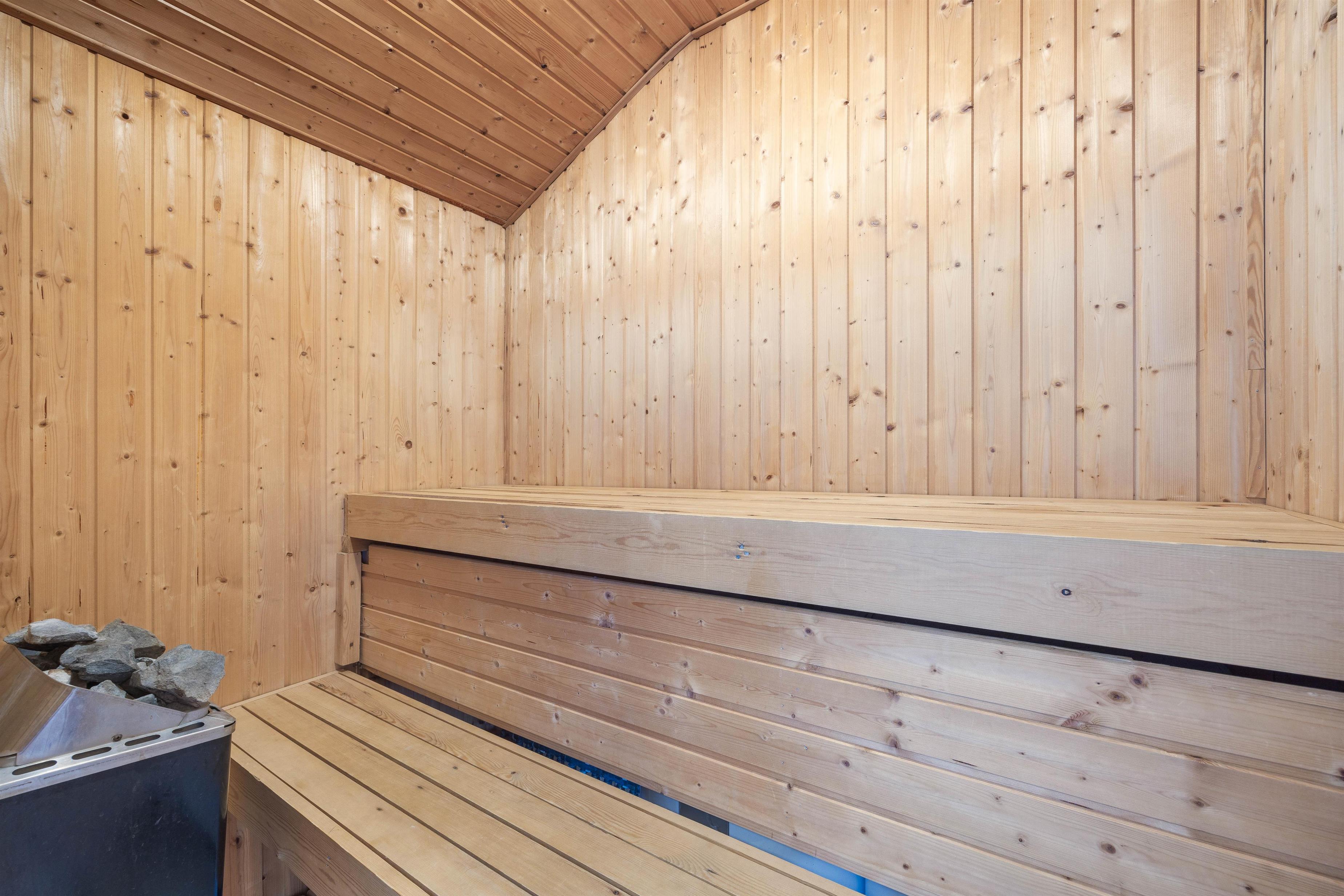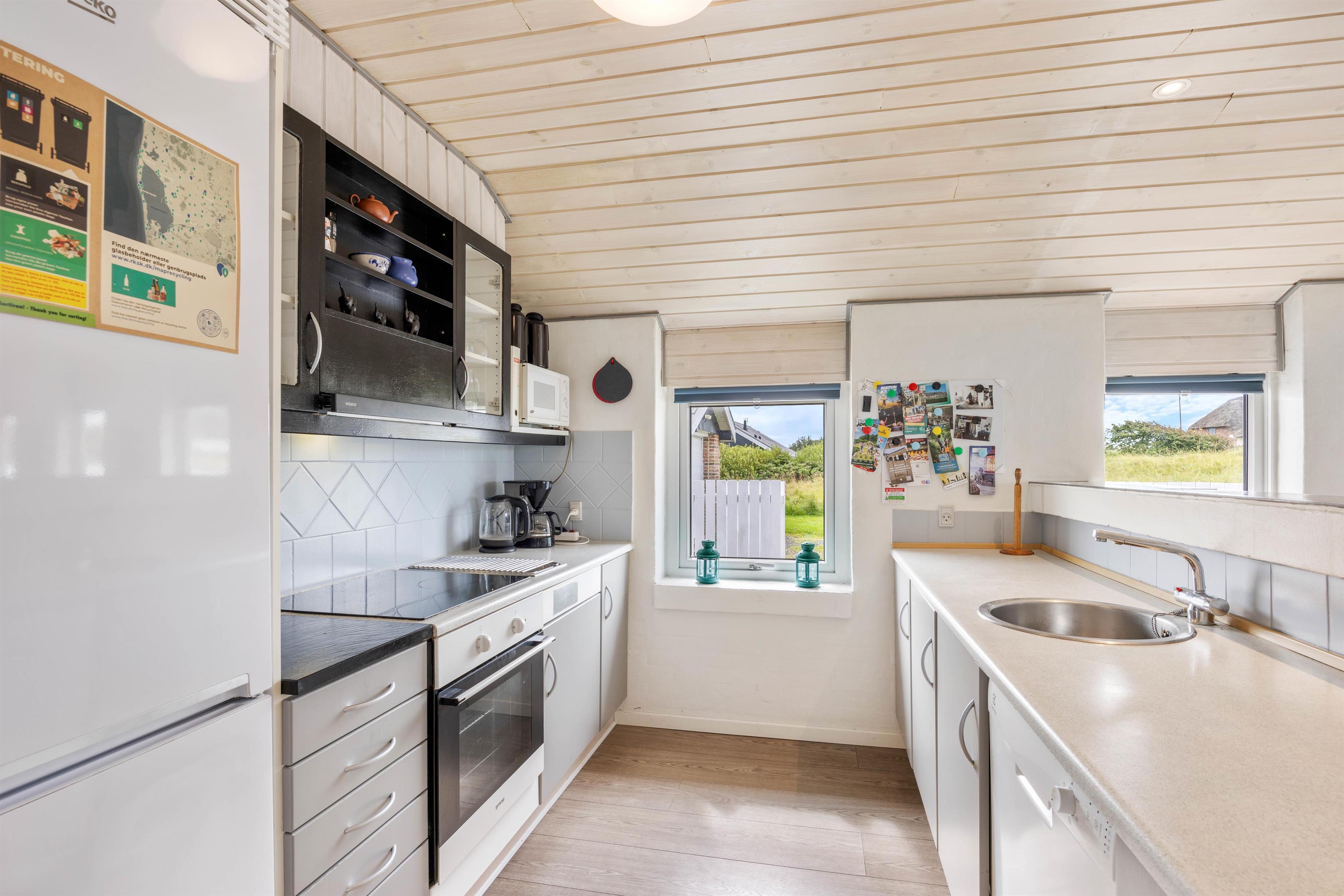 Sommerhuset er indrettet med fokus på komfort og gode materialer. Køkkenet er udstyret med både fryser, mikrobølgeovn og opvaskemaskine. På badeværelset er der både vaskemaskine og tørretumbler samt et dejlig wellnessområde med spabad og sauna. Indretningen i hele huset er lys og imødekommende.