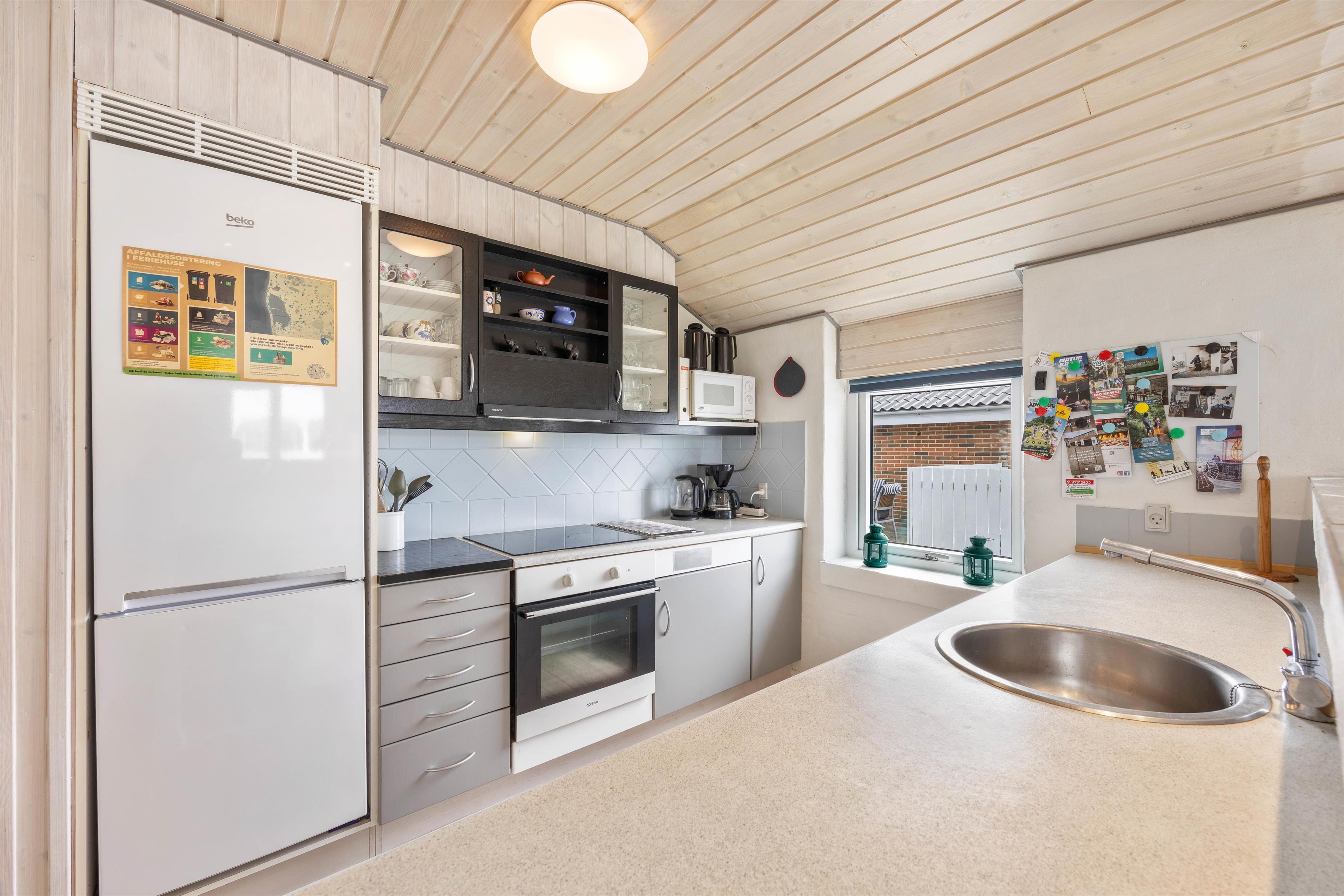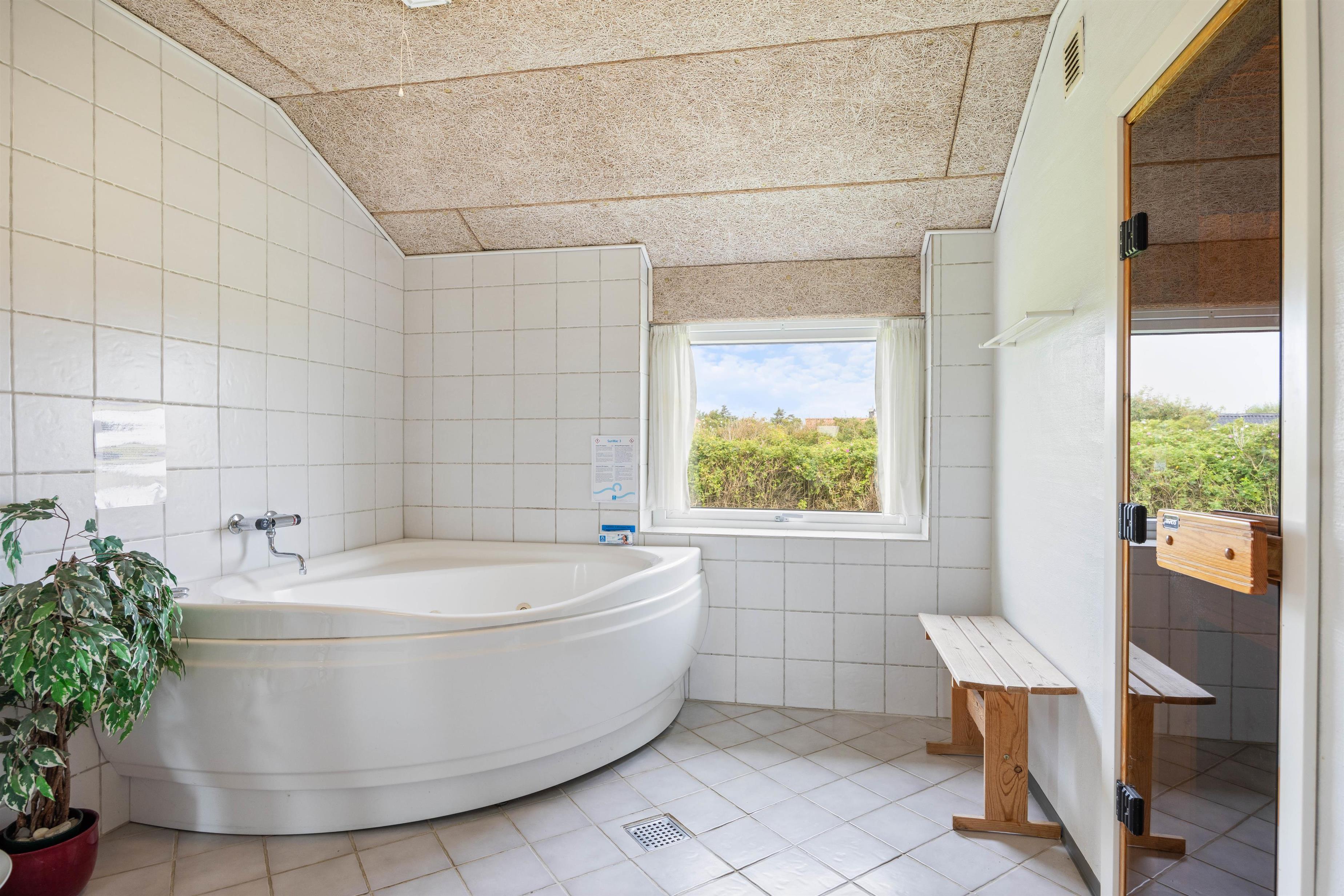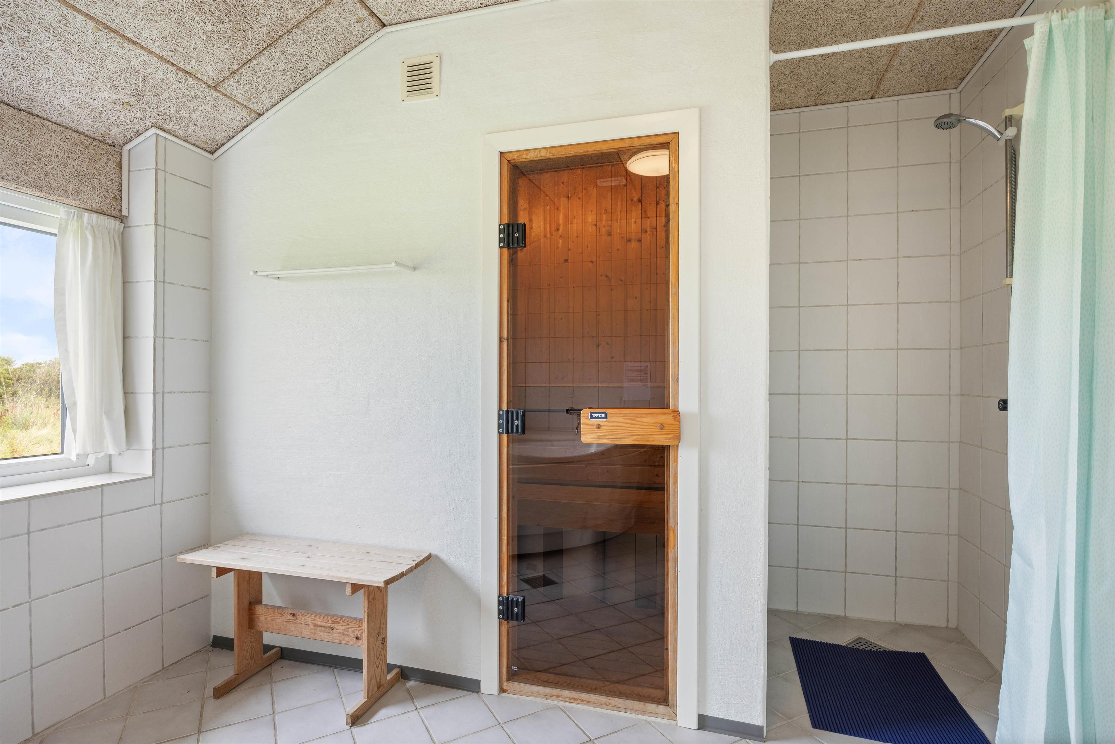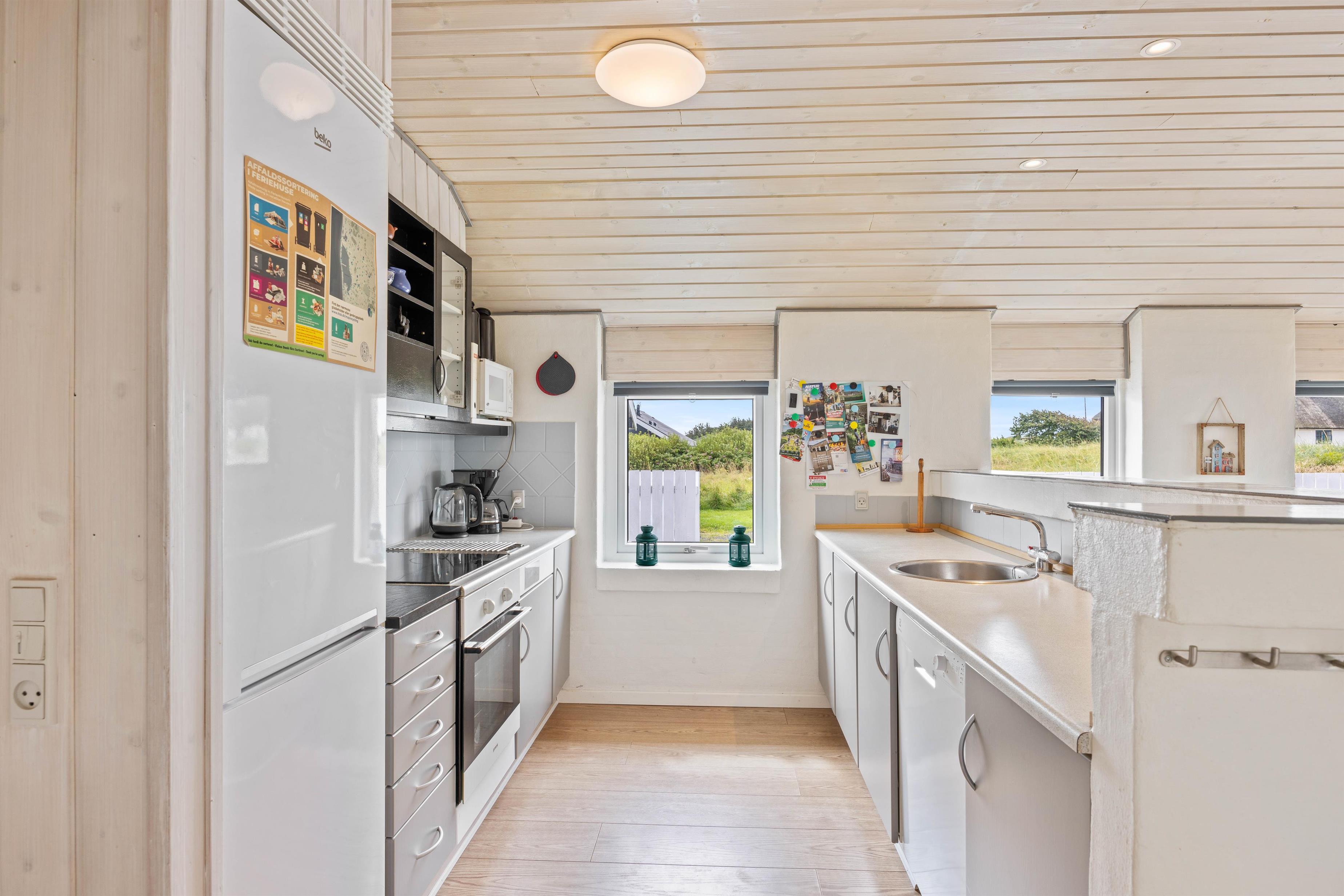 Sommerhuset er indrettet med fokus på komfort og gode materialer. Køkkenet er udstyret med både fryser, mikrobølgeovn og opvaskemaskine. På badeværelset er der både vaskemaskine og tørretumbler samt et dejlig wellnessområde med spabad og sauna. Indretningen i hele huset er lys og imødekommende.