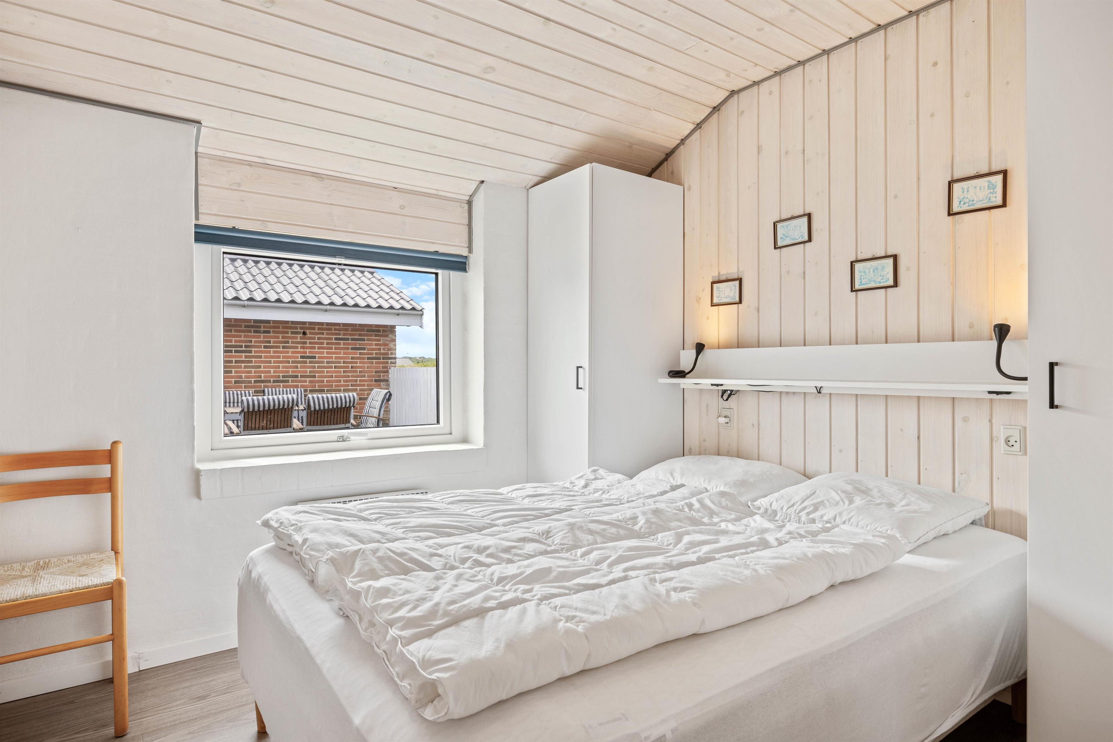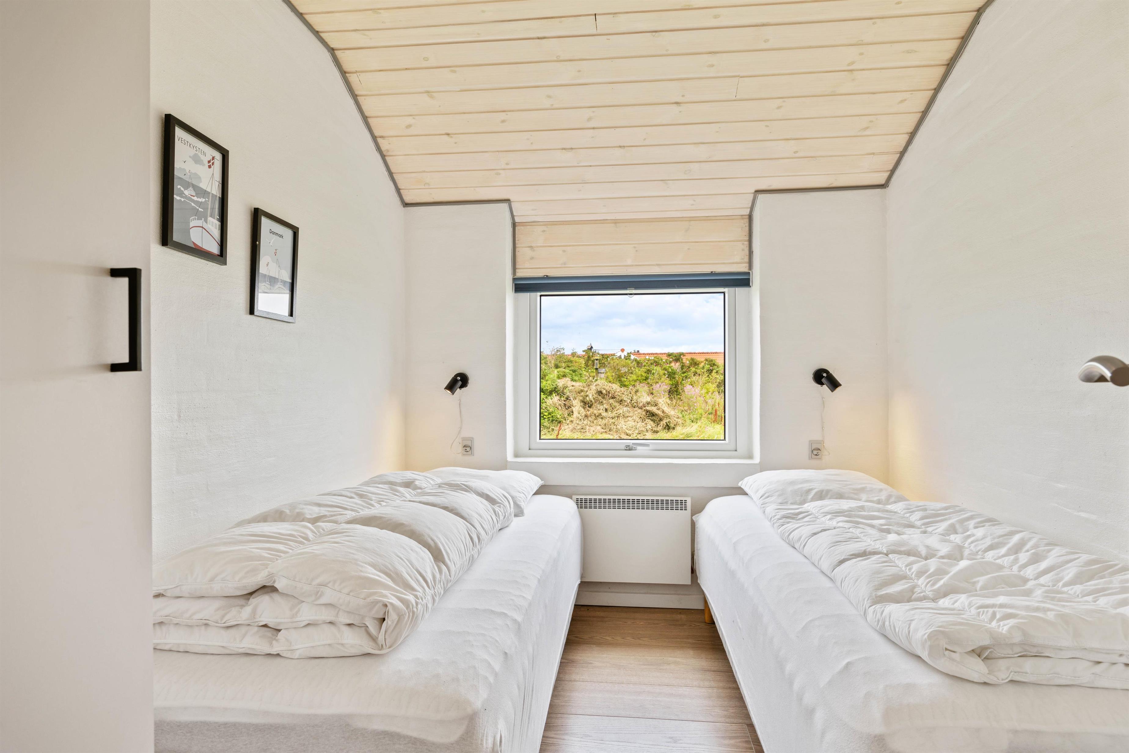 Efter en dejlig dag kan I finde til ro i en af sommerhusets soveværelser. De 8 sovepladser fordeler sig på 4 soverum, så der er plads til alle.