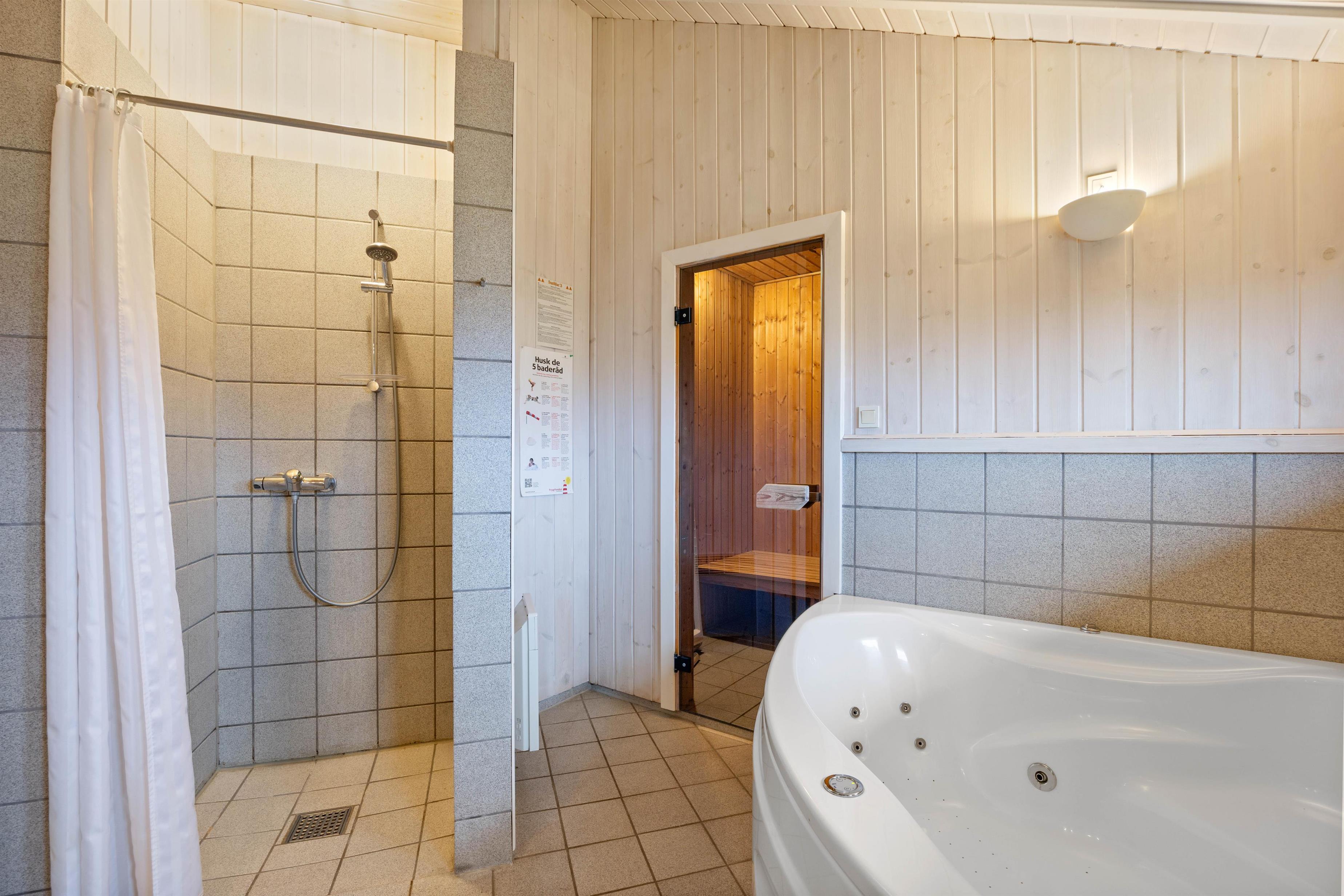 Med højt til loftet og store gulv til loft vinduer fremstår sommerhuset både lyst og åbent. Tag på ferie med din egen familie + jeres venner, hvor begge familier kan tage et kæledyr med. Her kan i nemlig sagtens holde ferie samlet, da huset er 108 kvadratmeter og der er to badeværelser. På det ene badeværelser finder I en skøn sauna efterfulgt af et opfriskende spabad.