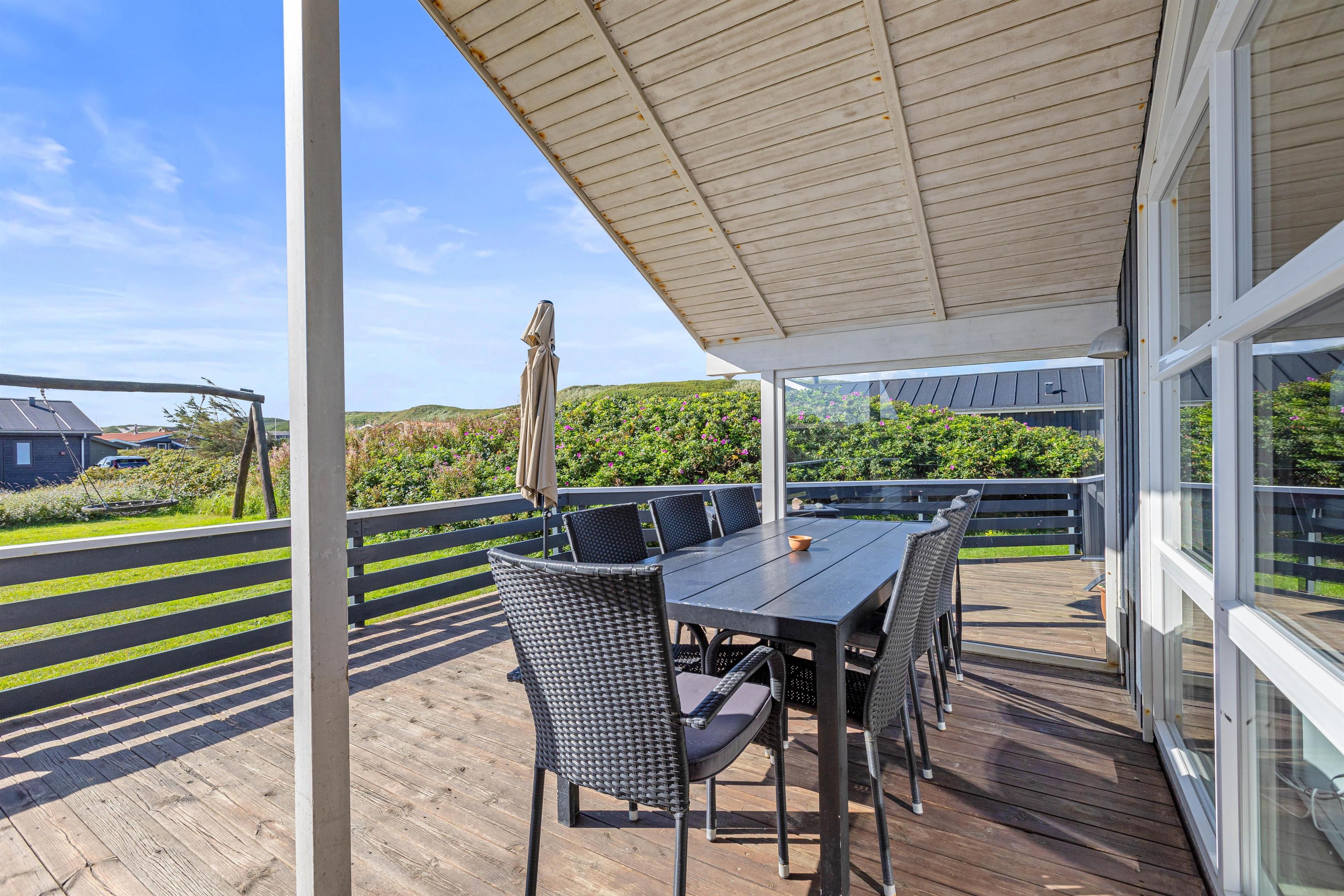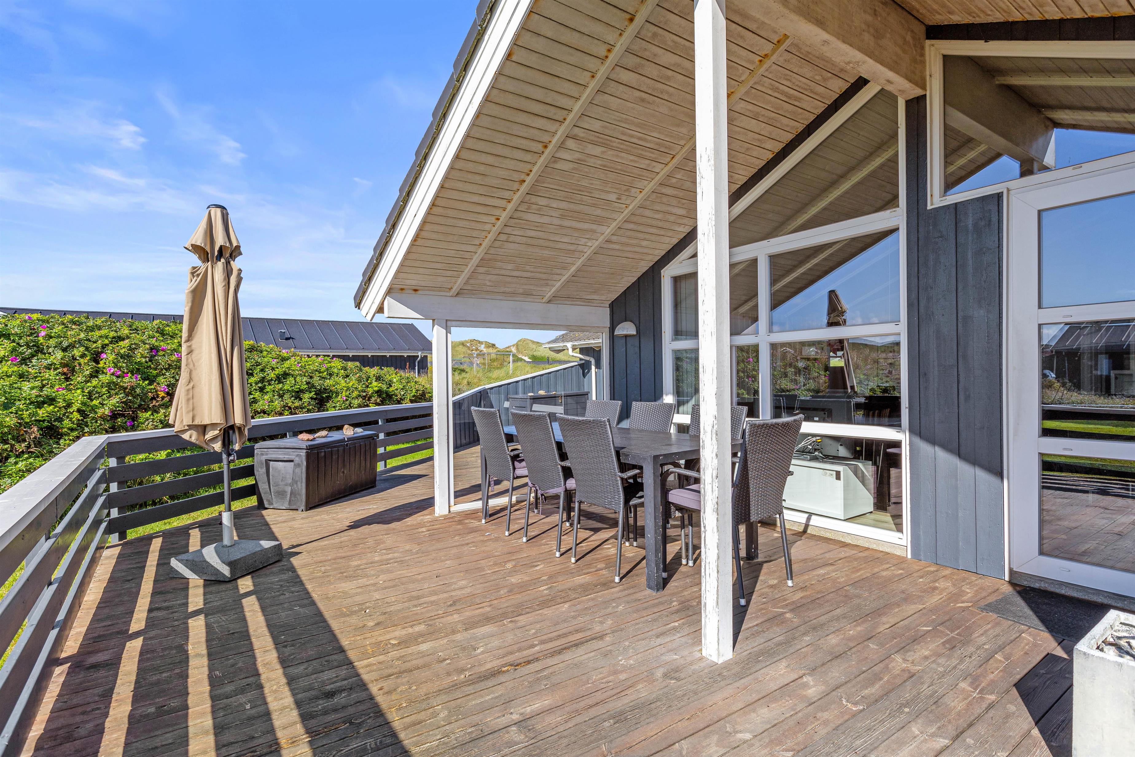 Sommerhuset er omgivet af en stor, lukket og delvist overdækket terrasse. Denne er perfekt til småbørn og hunde, som kan færdes frit rundt uden større opsyn. Dette kan give jer ekstra tid, til rigtig at få lade batterierne op med næsen op i solen eller med en kop kaffe.
