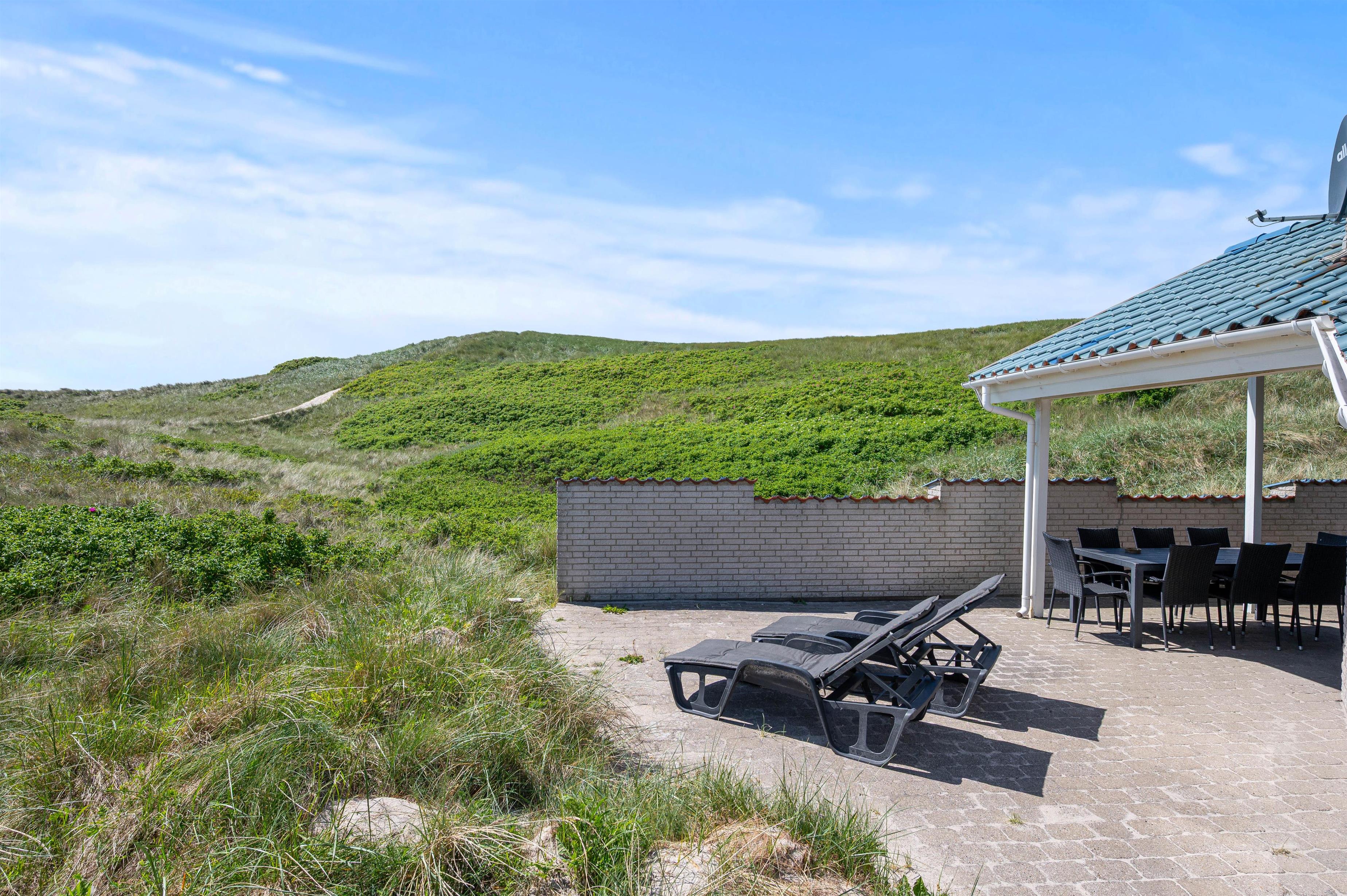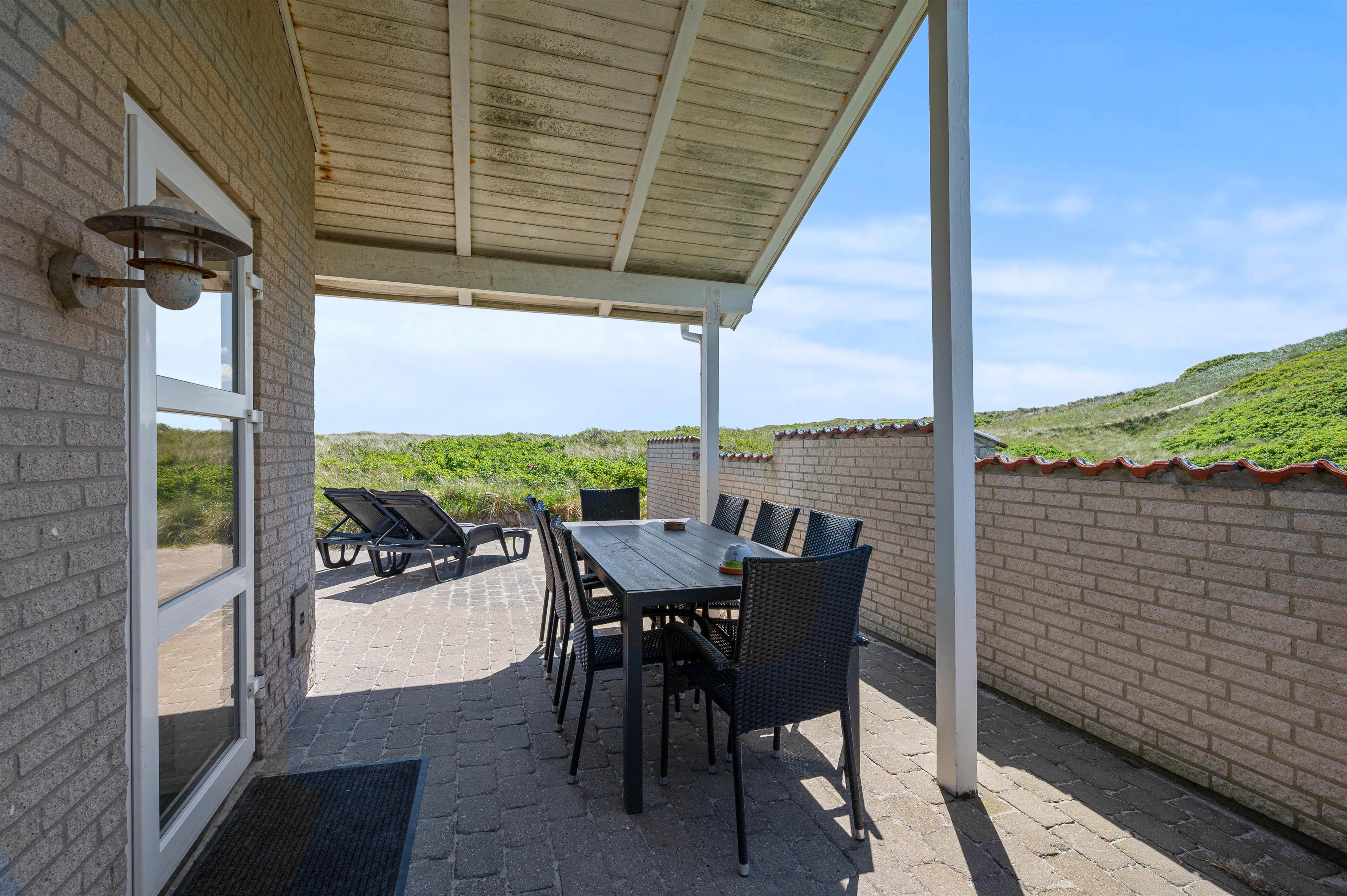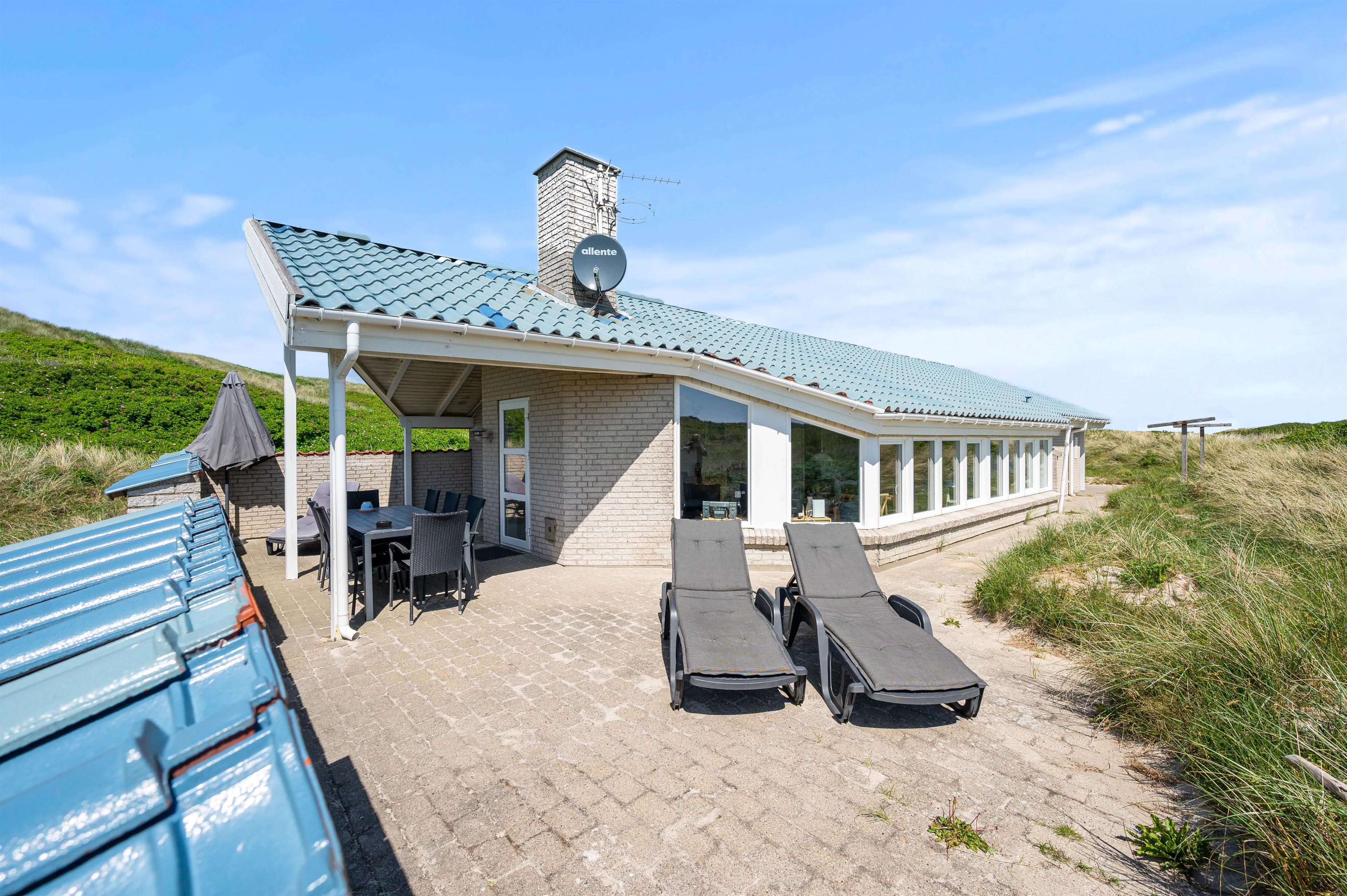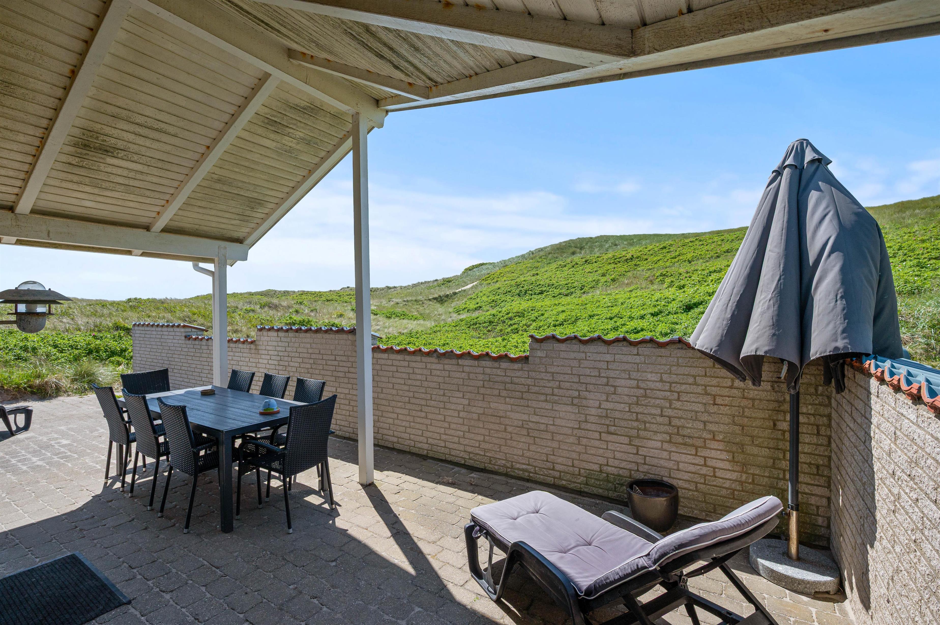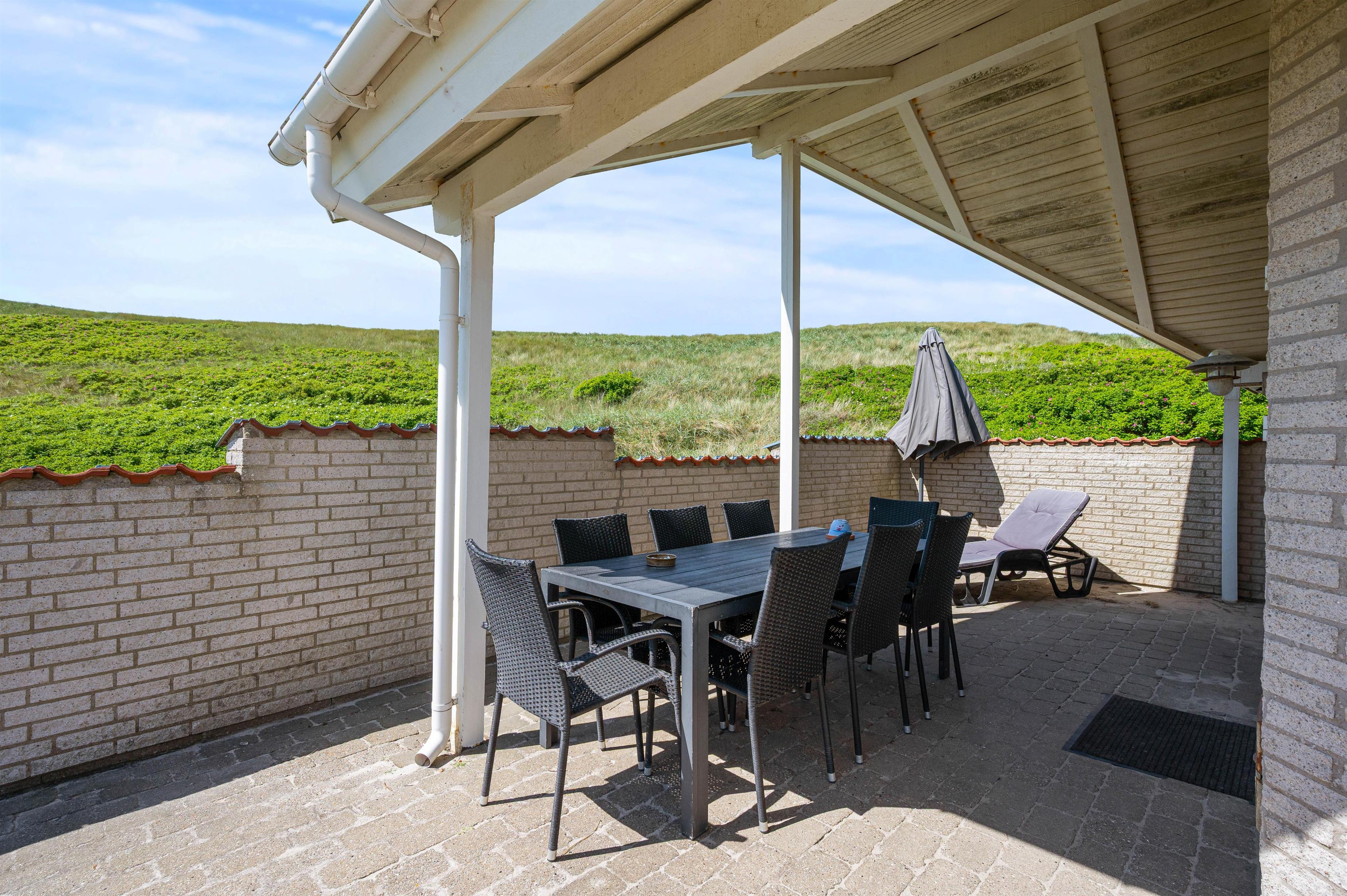 Da feriehuset ligger for enden af en lille sidevej, vil I uforstyrret kunne nyde ferien. Og da der er gode terrasser mod både øst, syd og vest, har I god mulighed for at sidde ude og nyde roen og naturen hele dagen. På terrassen i vest er der endda lavet en læmur, som afskærmet for vinden, men som også sørger for privatliv, når I ligger ude og soler Jer eller nyder en hyggelig grillaften.