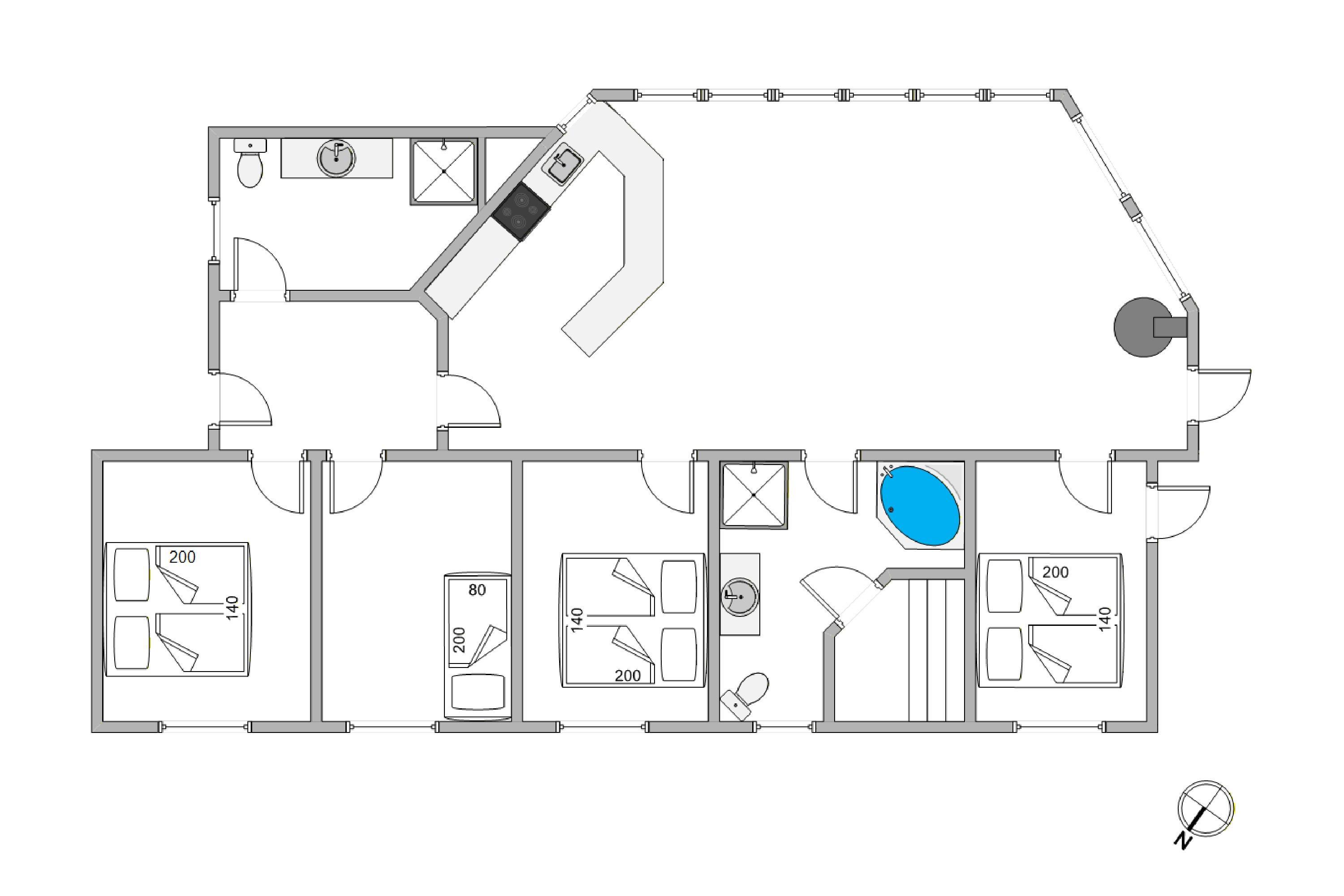 Feriehuset er dejligt rummeligt og godt indrettet, så der endda er plads til to familier. De to badeværelser har god plads, og på den ene er der oveni købet en sauna og et spabad, så I rigtig kan slappe af.