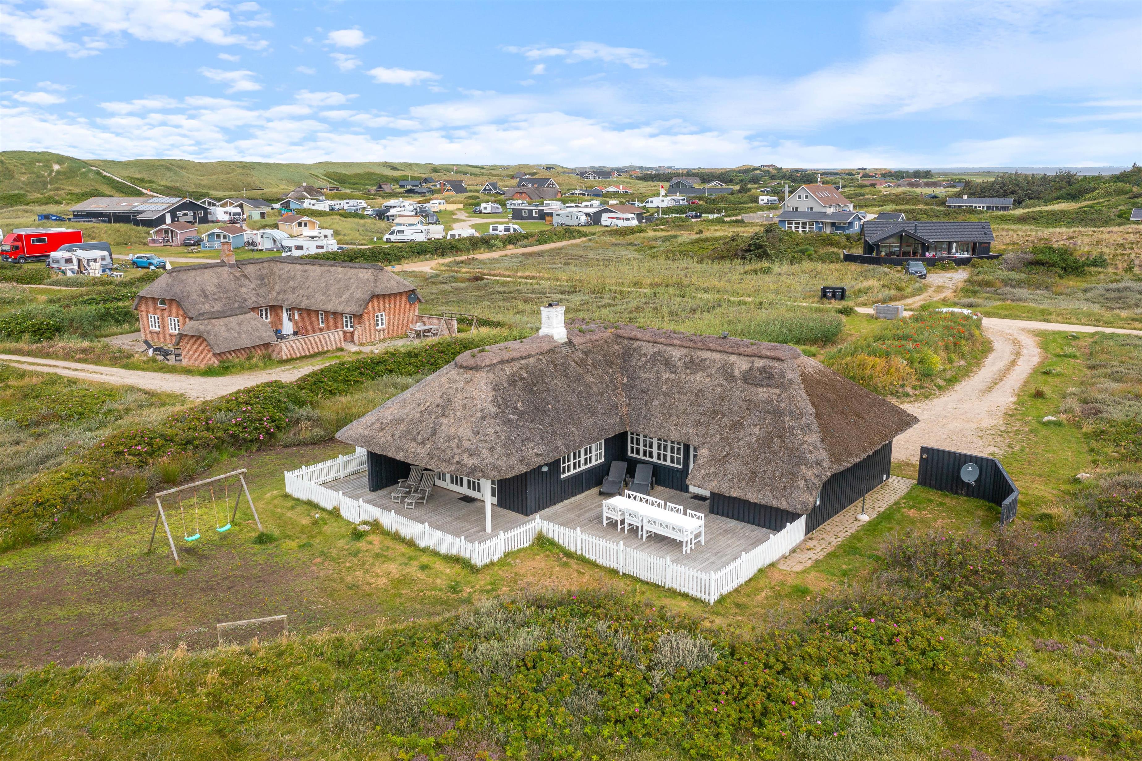 I det skønne sommerhusområde Årgab møder i det charmerende sommerhus med stråtag på Tingodden 228. Huset blev renoveret i 2022, men har altså stadig bevaret charmen og den hyggelig sommerhusstemning. Huset er placeret på en skøn naturgrund 200 meter fra havet, hvor i også vil finde en dejlig udsigt til klitterne mod vest. Her er der en hyggelig indretning med masser plads til 6 personer og 2 hunde.
