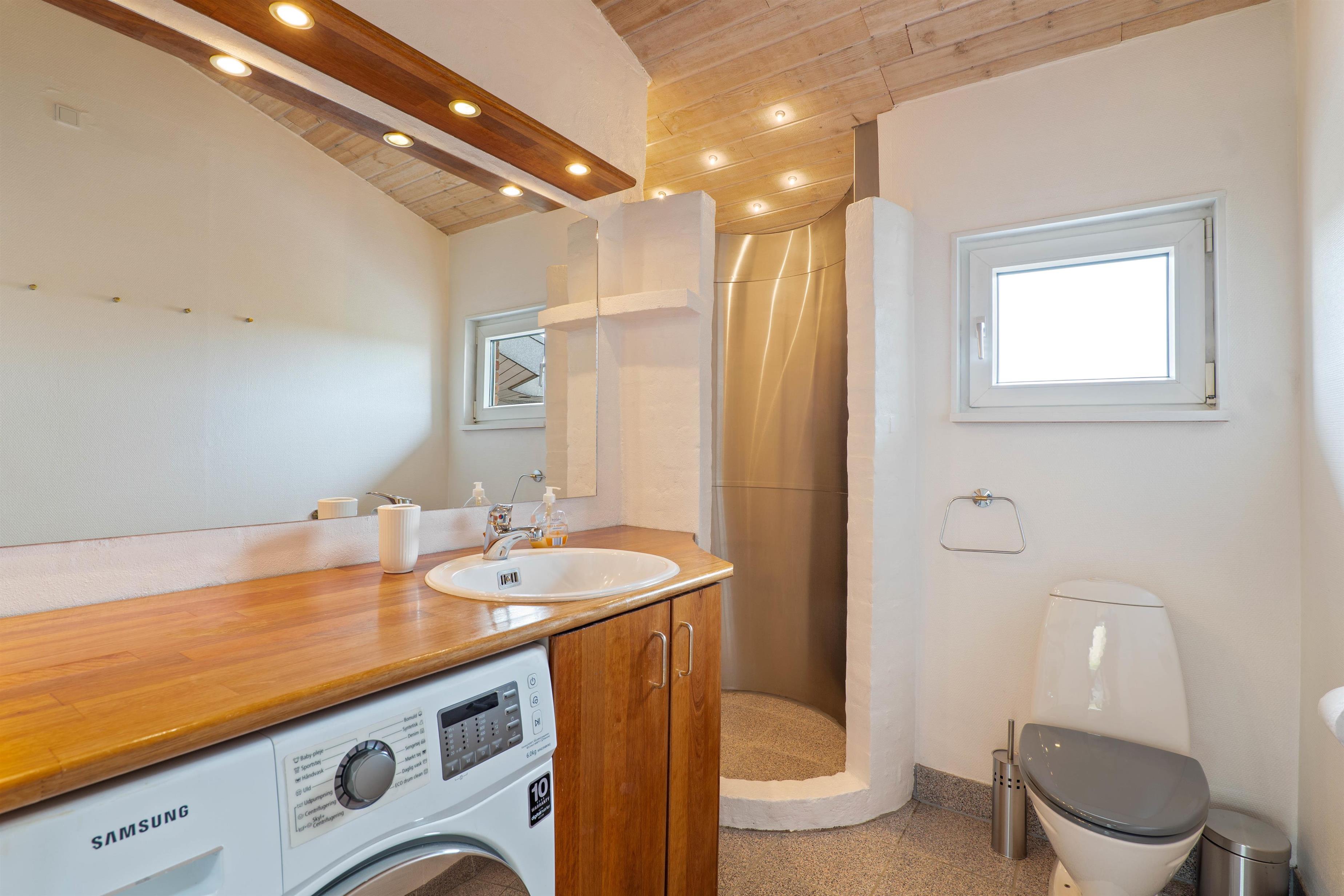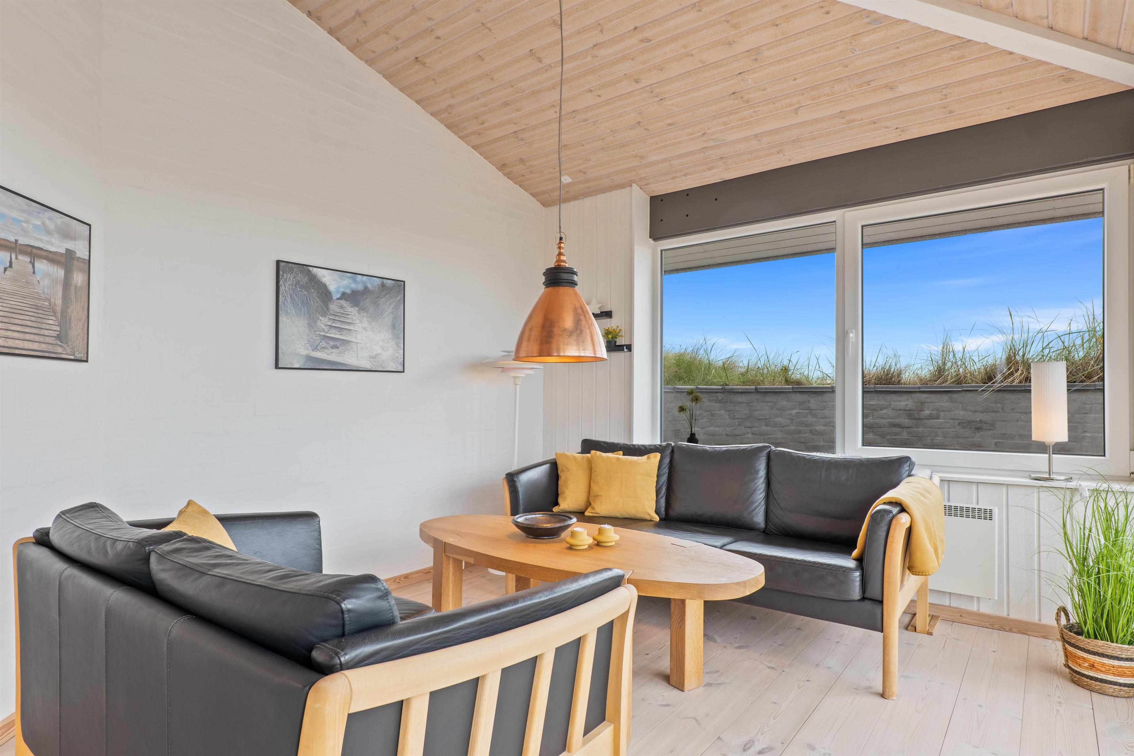 Sommerhuset har en dejlig lys og moderne indretning, som indbyder til ægte hygge og familietid i en af de to stuer. De to lækre badeværelser inklusiv rummeligt bad gør også, at I undgår morgenstress og kø til toilettet til enhver tid.