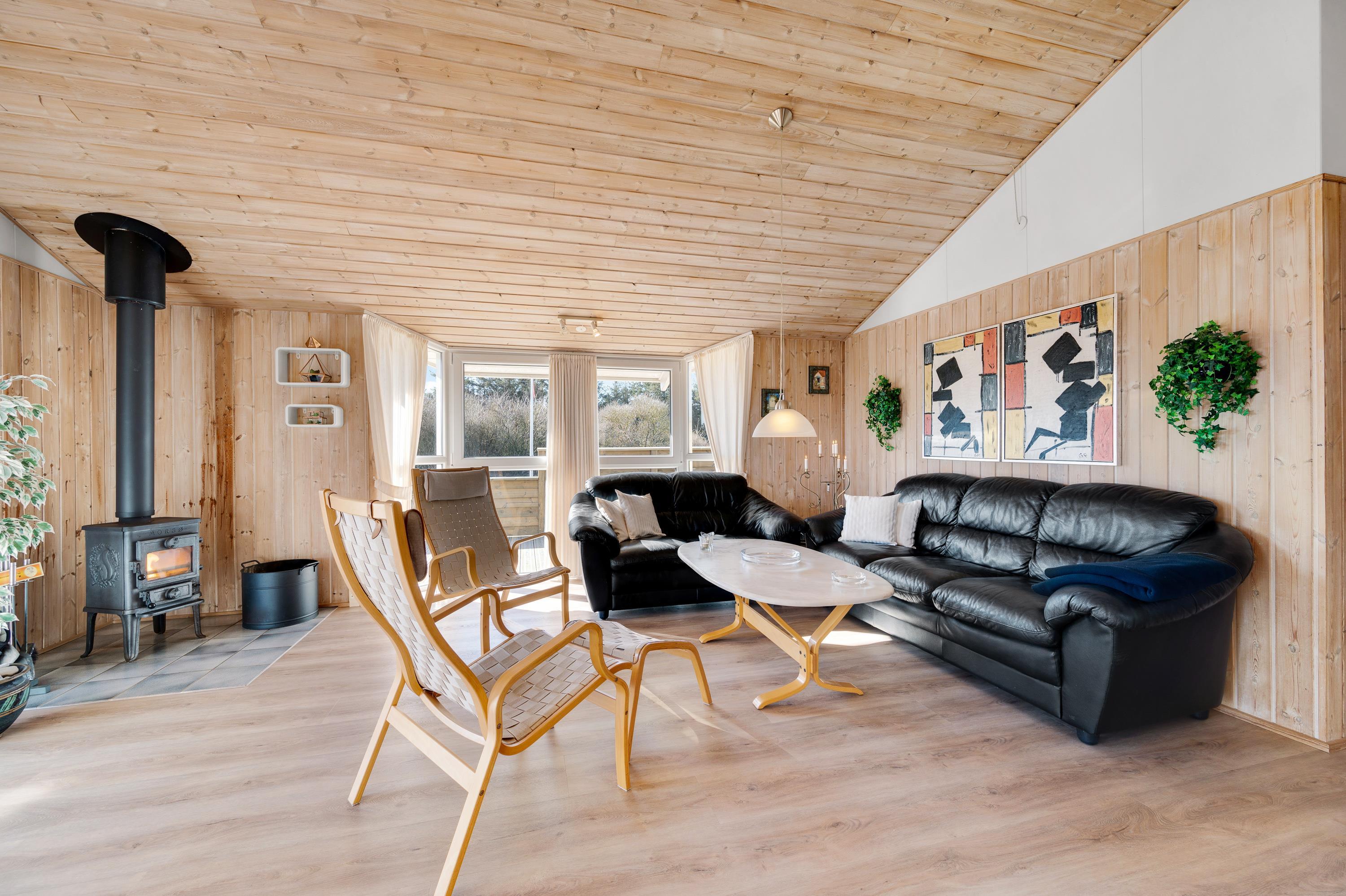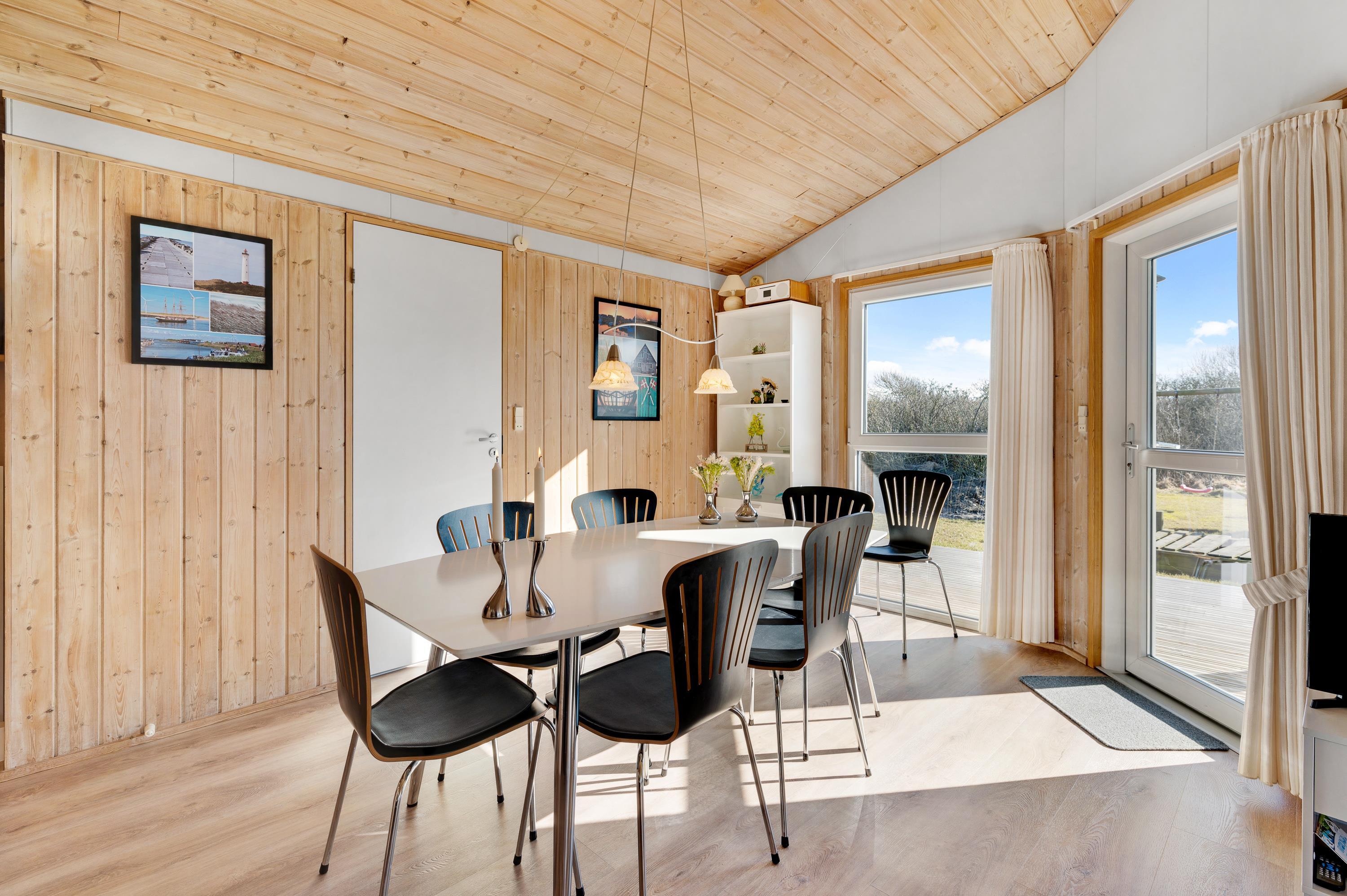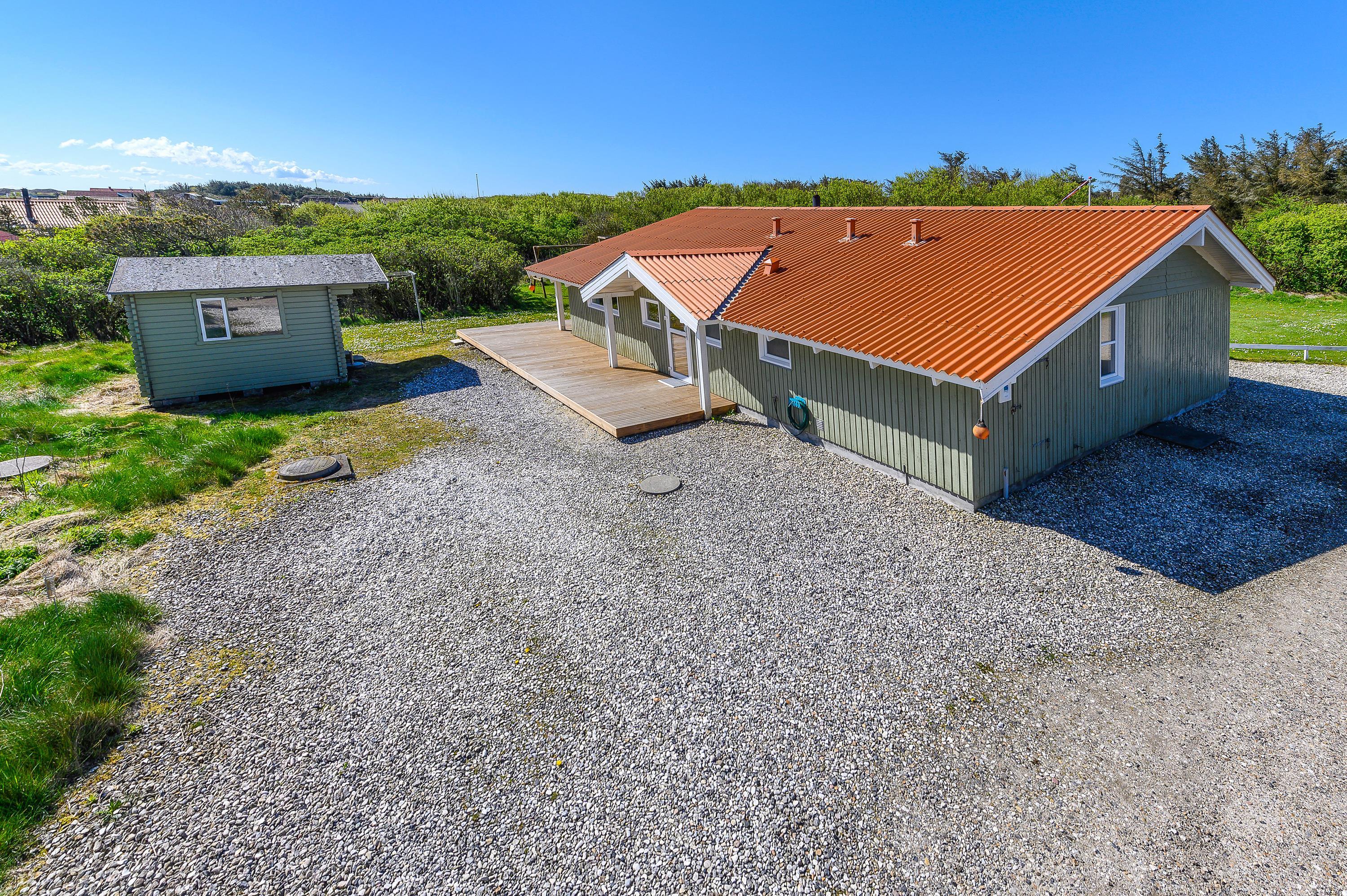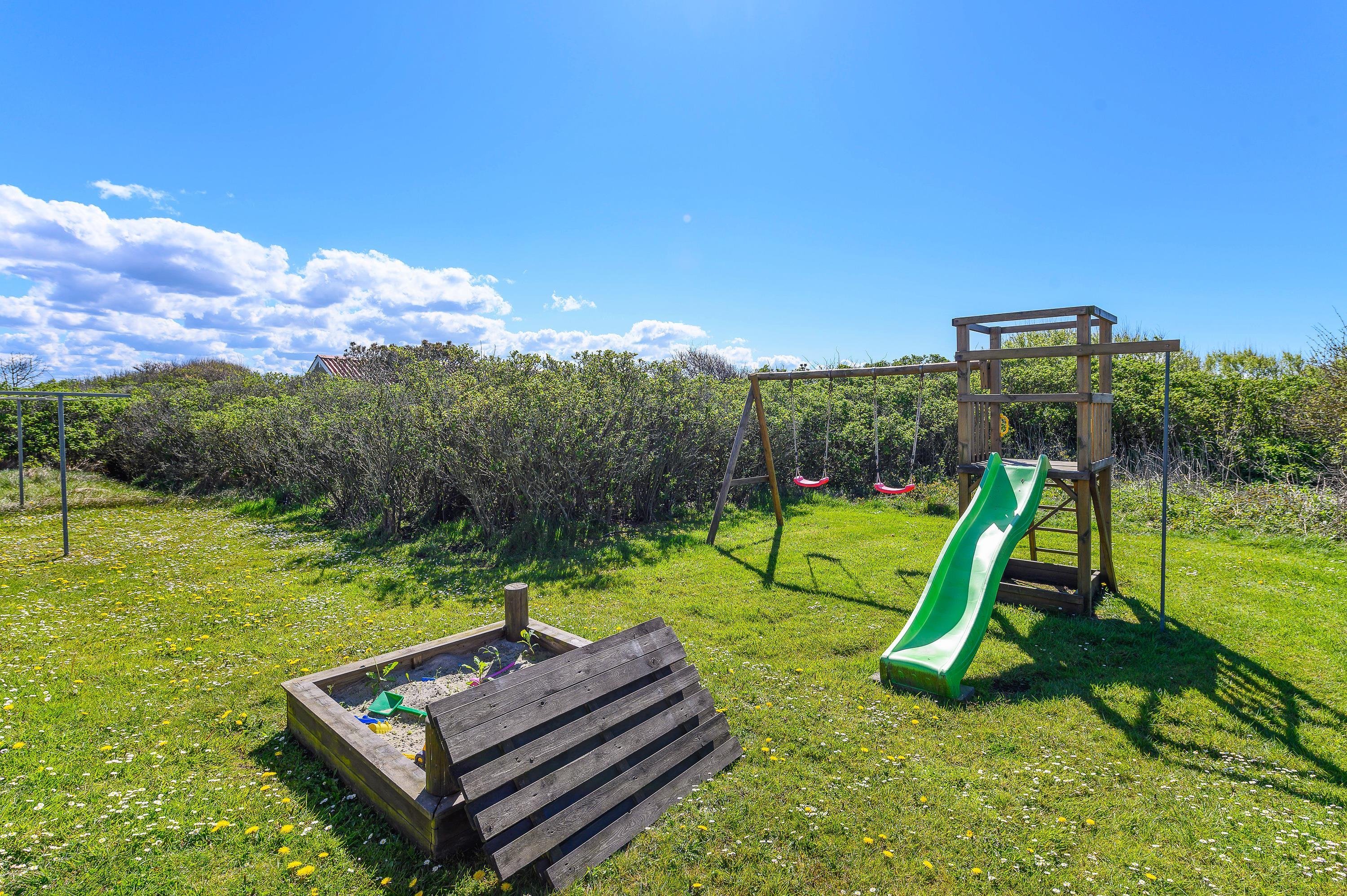 Dette fine feriehus kan danne rammerne om en skøn ferie for 8 feriegæster samt 2 kæledyr. Feriehuset er velegnet til hunde-familien, da Vesterhavet ikke er langt herfra. Også den store plænegrund vil komme hunde og børn til gode, da her er plads til leg som kongespil eller fodbold. På græsplænen kan børnene også hygge sig i sandkassen eller på gyngerne – mens de voksne kan holde øje og nyde kaffen på den skønne træterrasse. Træterrassen er delvist afskærmet, så her kan I sidde i læ for vinden eller solens stråler.
