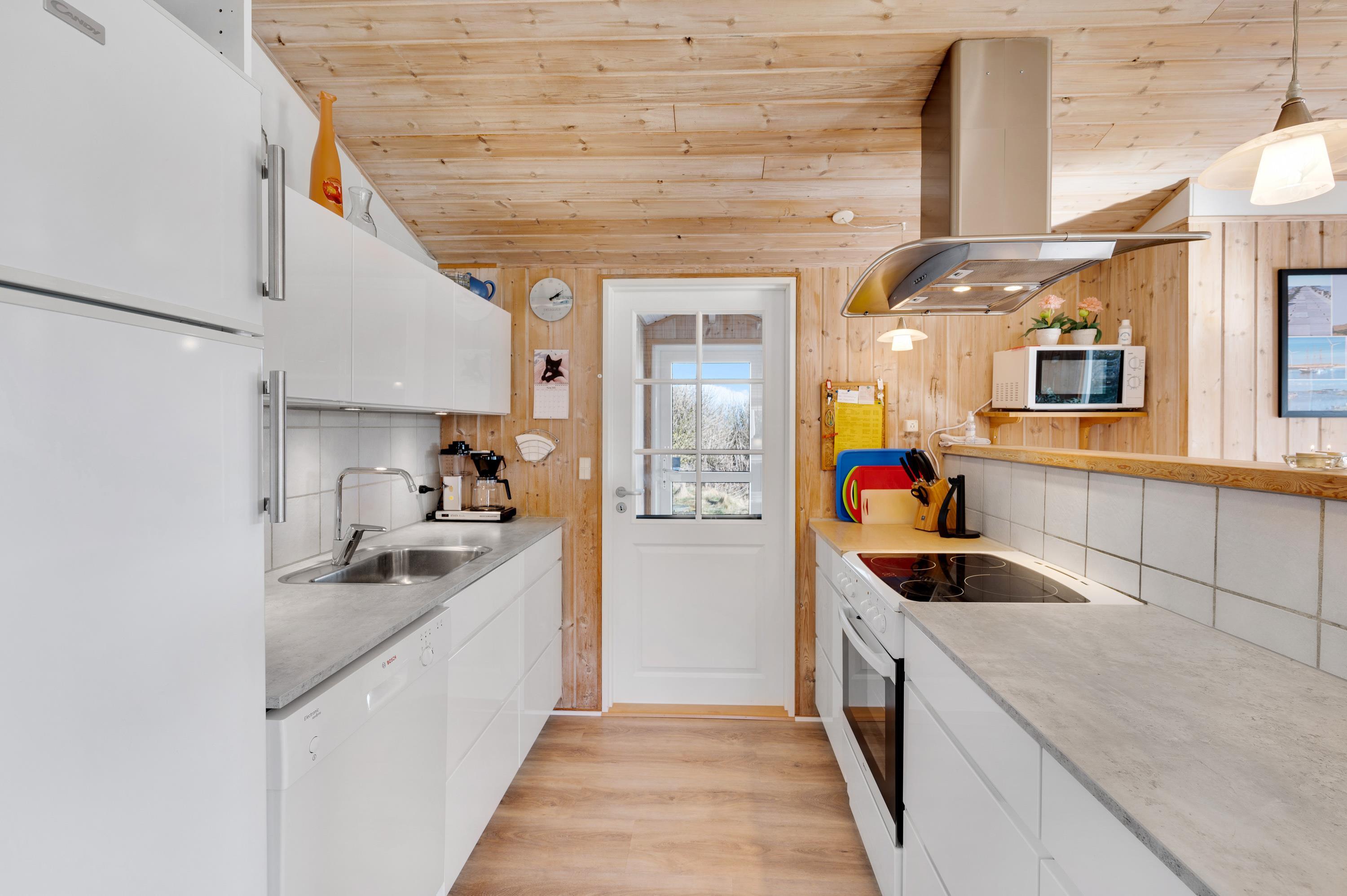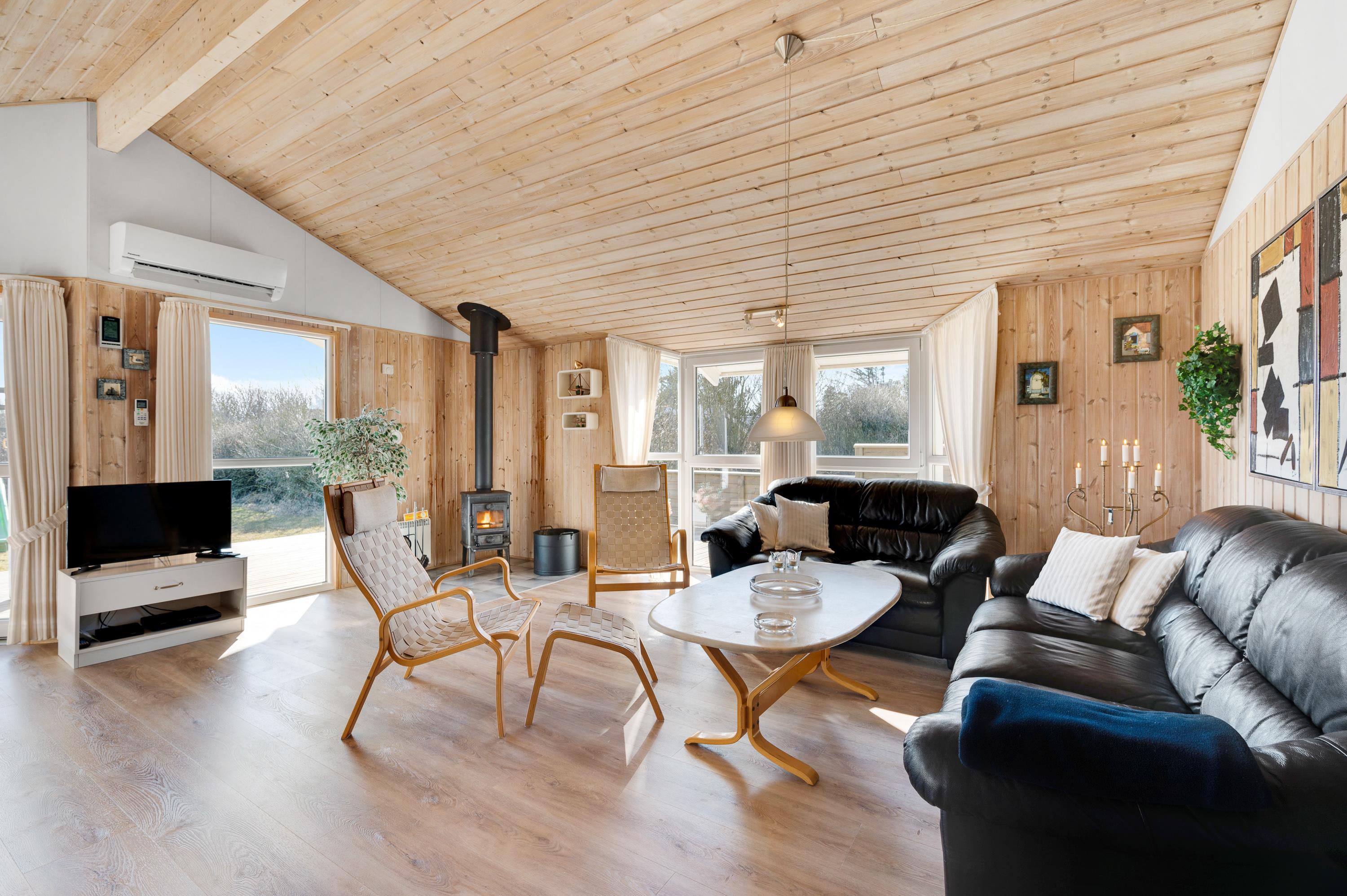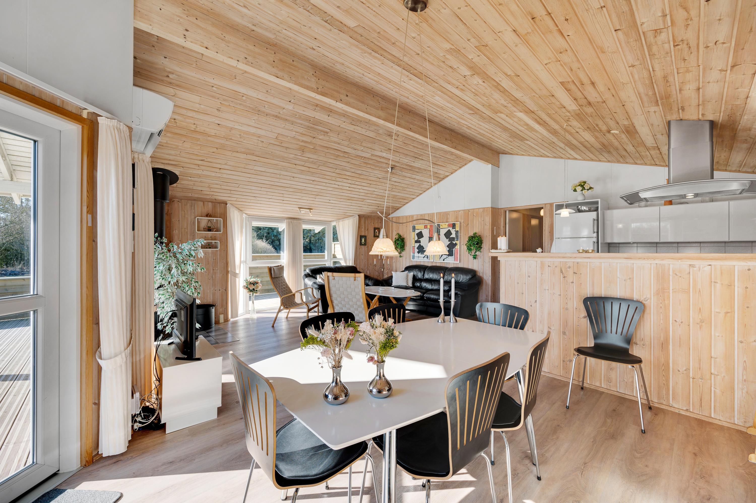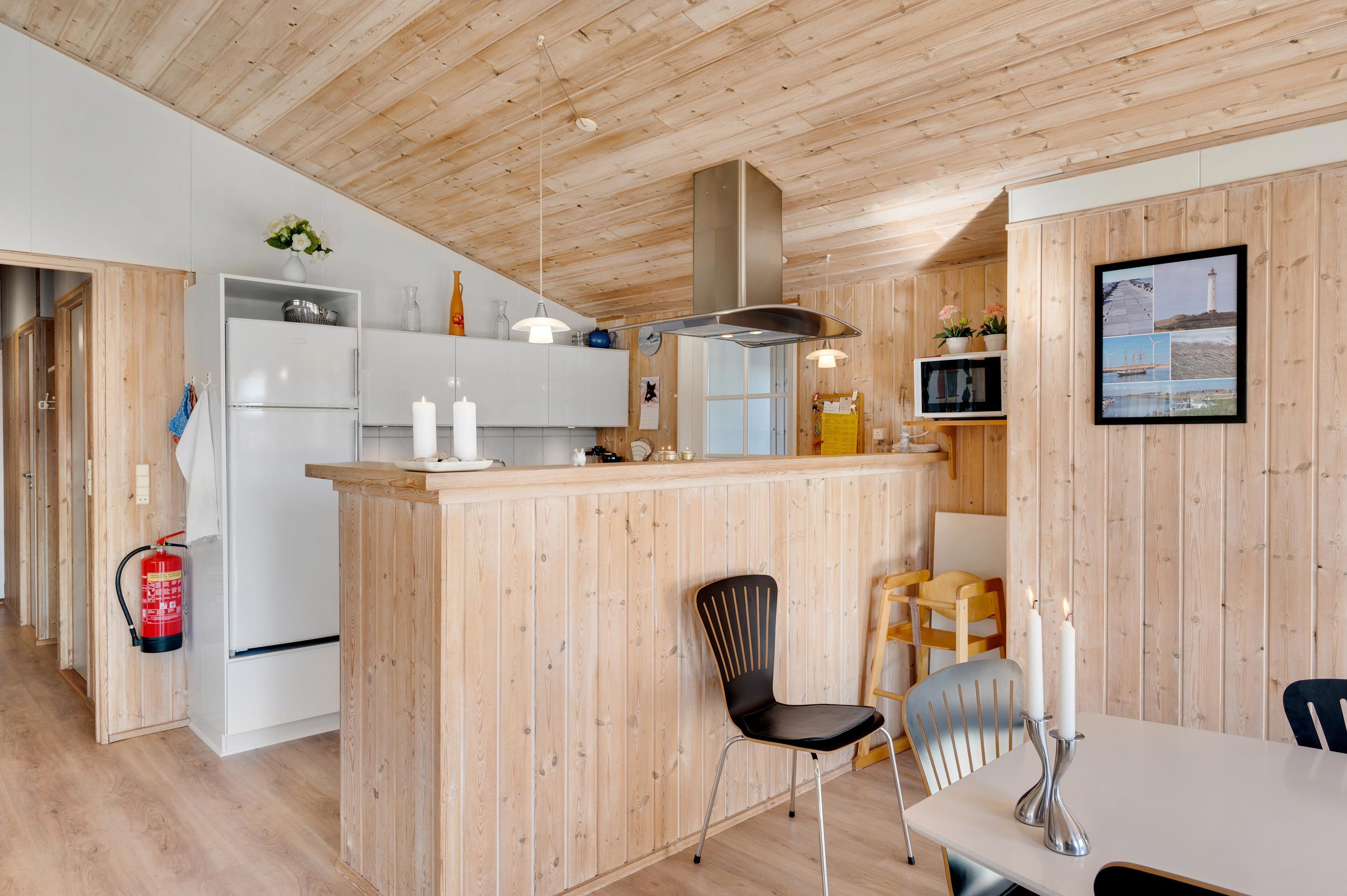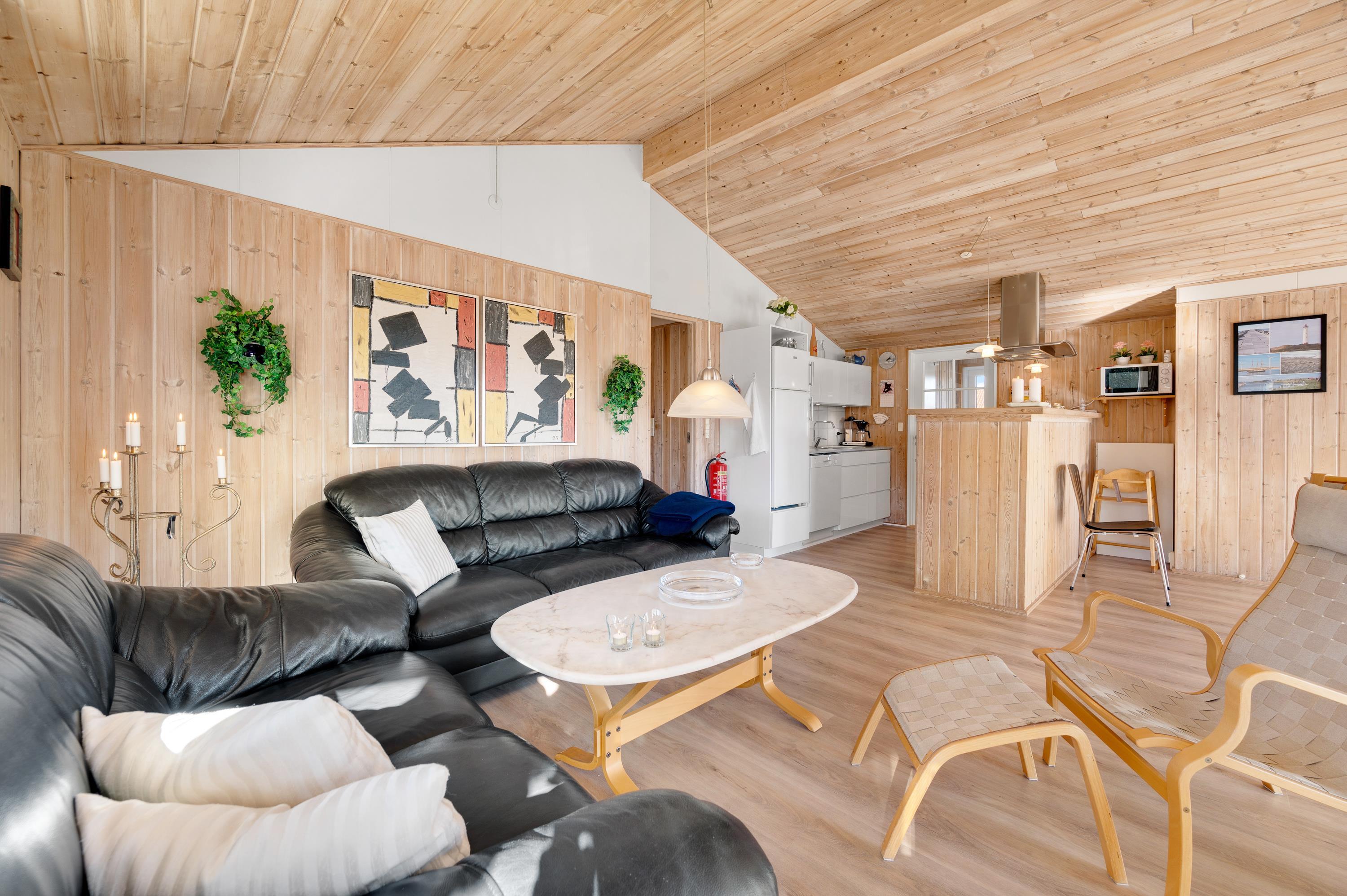 Dette fine feriehus kan danne rammerne om en skøn ferie for 8 feriegæster samt 2 kæledyr. Feriehuset er velegnet til hunde-familien, da Vesterhavet ikke er langt herfra. Også den store plænegrund vil komme hunde og børn til gode, da her er plads til leg som kongespil eller fodbold. På græsplænen kan børnene også hygge sig i sandkassen eller på gyngerne – mens de voksne kan holde øje og nyde kaffen på den skønne træterrasse. Træterrassen er delvist afskærmet, så her kan I sidde i læ for vinden eller solens stråler.