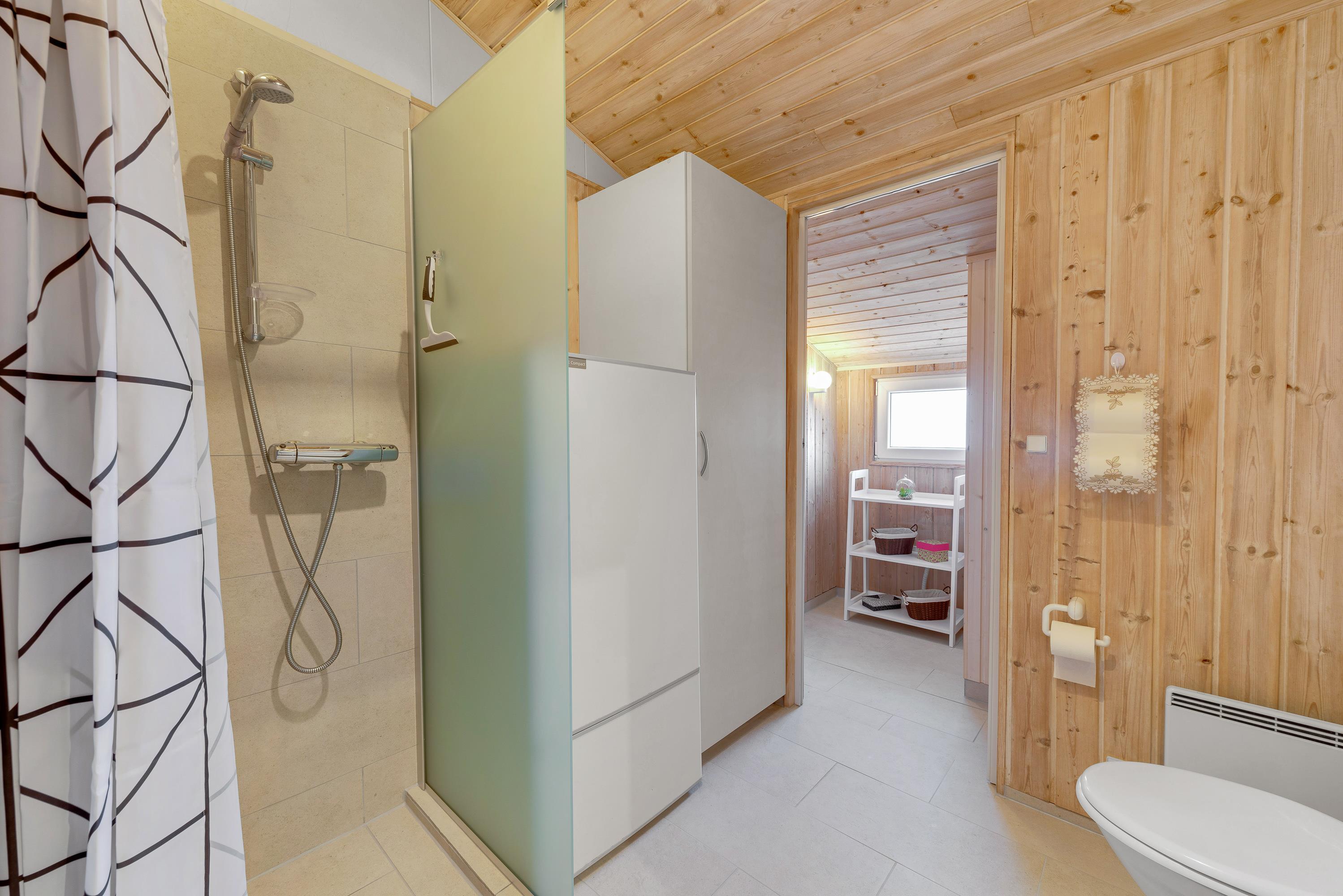 Planløsningen i sommerhuset byder derudover på fire soveværelser samt to badeværelser – på det ene badeværelse finder I også saunaen. I huset er vaskemaskine og tørretumbler også tilgængeligt.