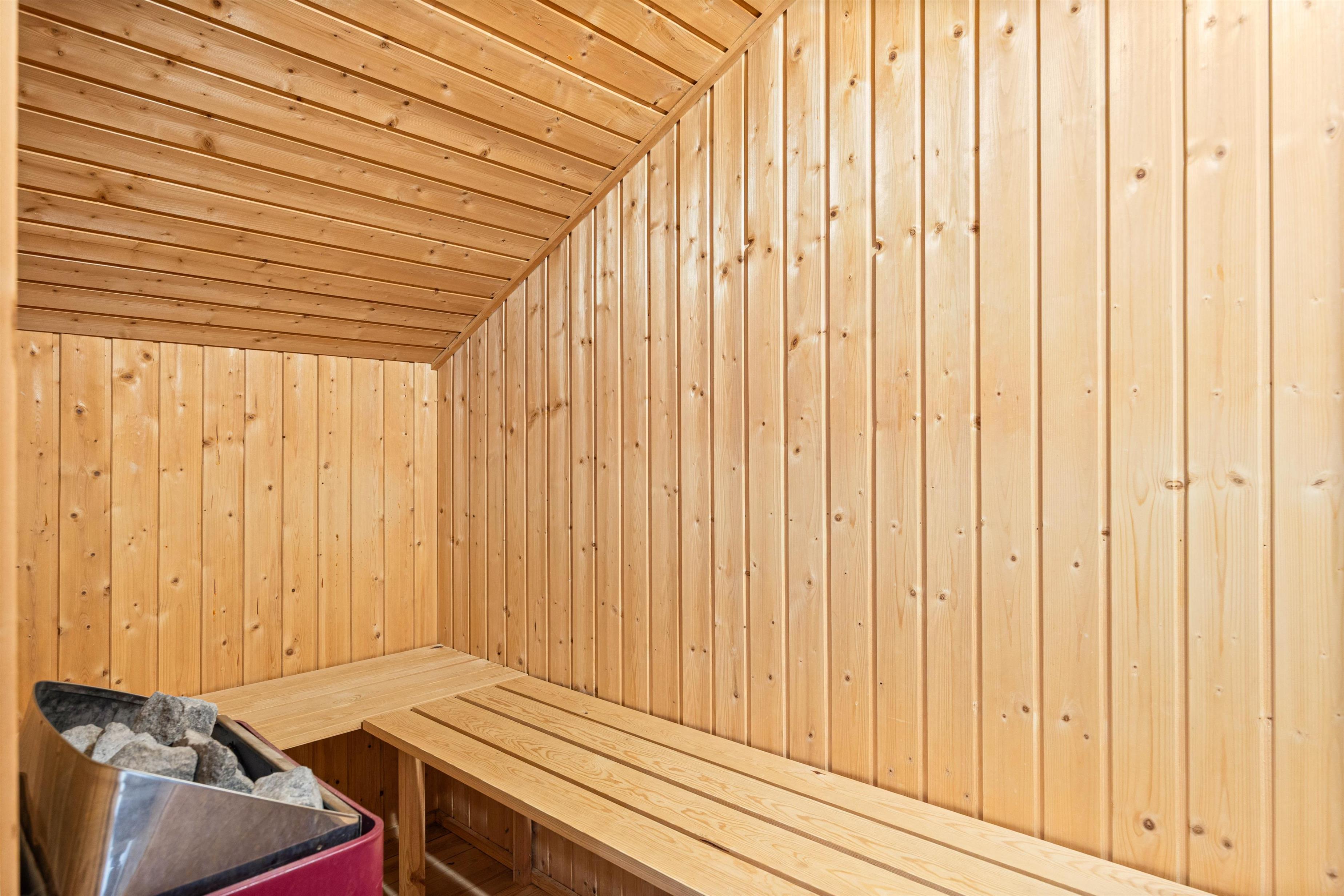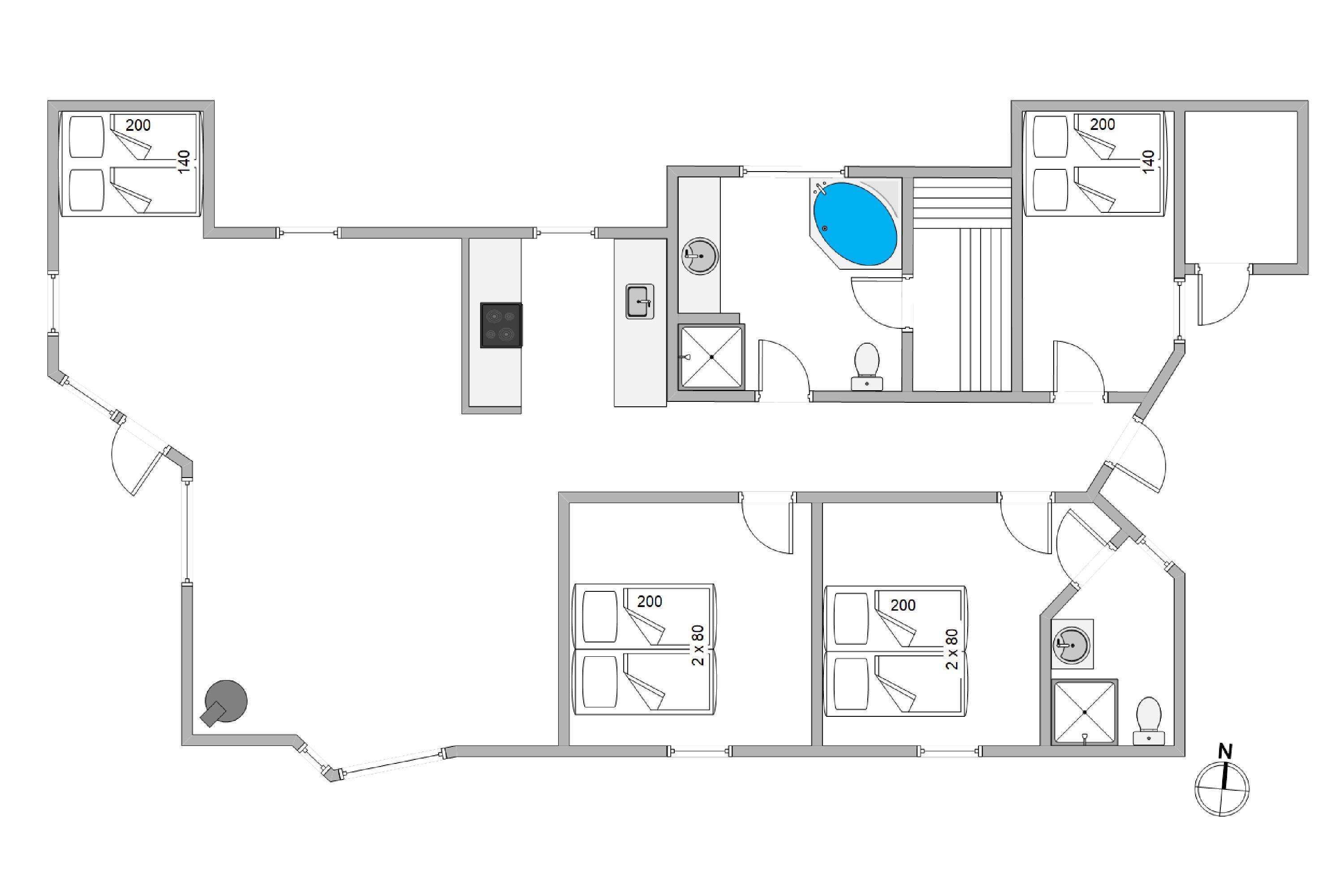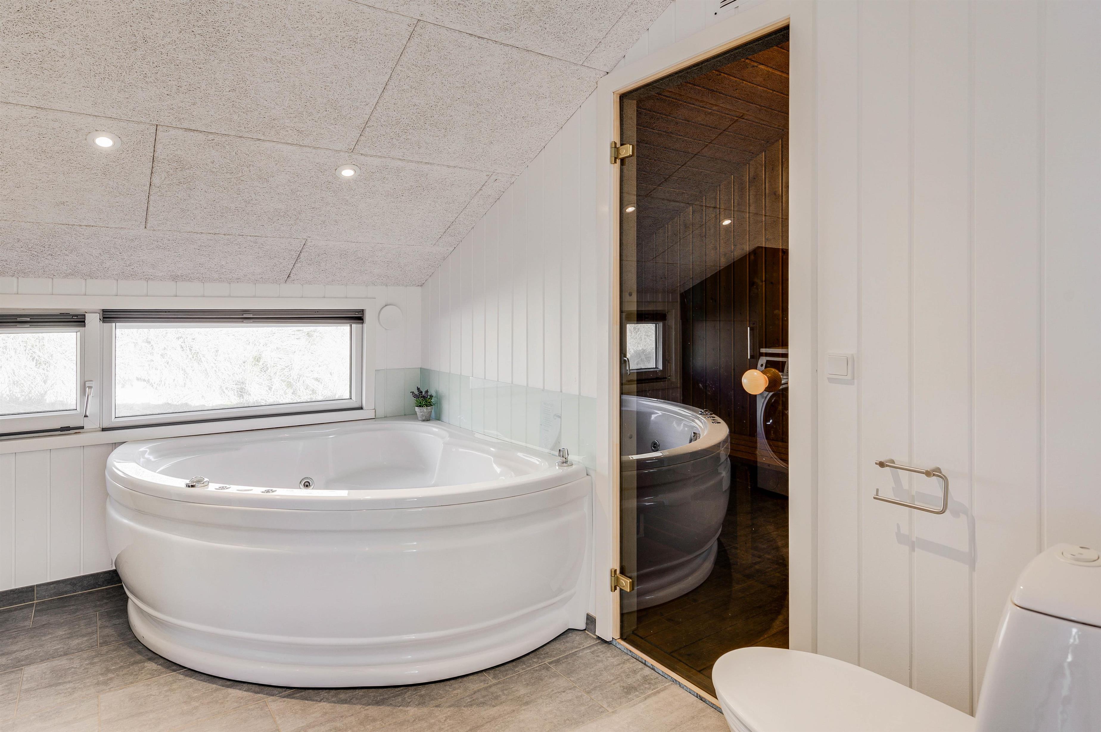 Den hyggelige stue har loft til kip og er indrettet med gode møbler, en flot brændeovn og energibesparende varmepumpe. Der er en stor fladskærm, så familien kan nyde en afslappende film efter en frisk travetur langs Vesterhavet. Alkoven i stuen er velegnet til læsning eller til hygge med en PC. Der er gode værelser og velindrettede badeværelser, hvor der også er spa og sauna.