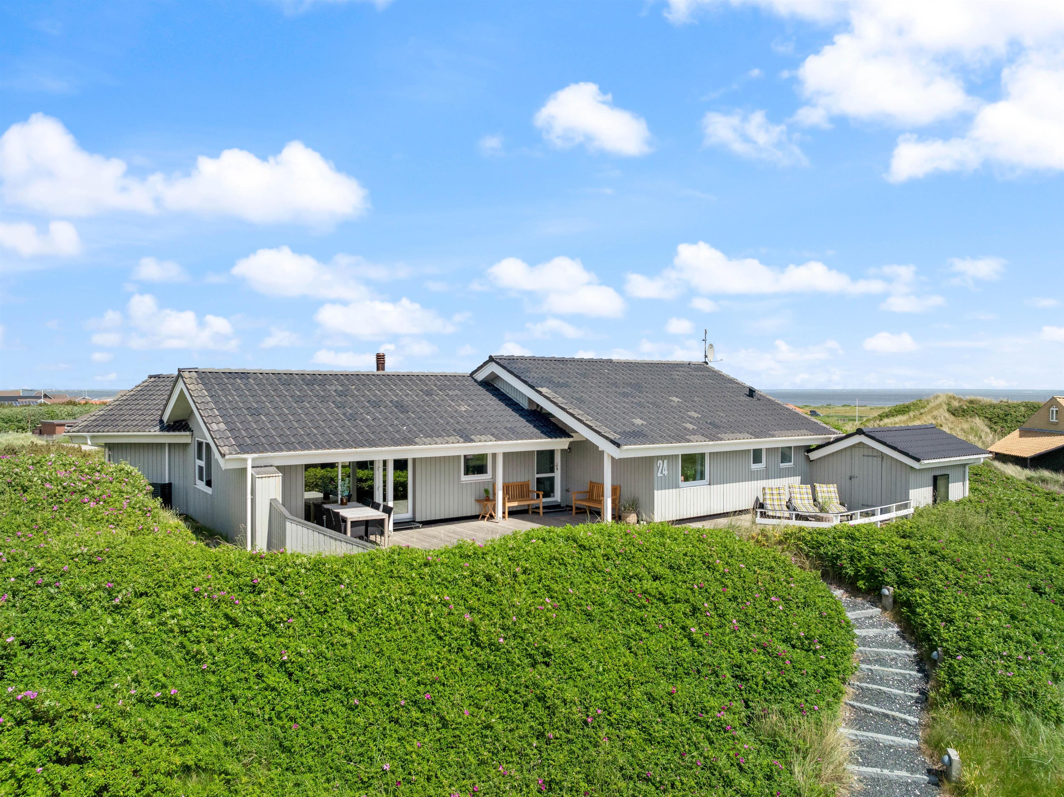 På Strandkrogvejen 24 finder I et hyggeligt sommerhus til 6 personer med en skøn udsigt. Sommerhuset byder på en hyggelig atmosfære. I kan blandt andet slappe af i spaen og saunaen eller tage et hvil på sofaen foran brændeovnen. Kun 250 meter fra sommerhuset ligger Vesterhavet, hvor I kan gå lange ture langs vandet og blive blæst igennem af den friske vesterhavsluft.