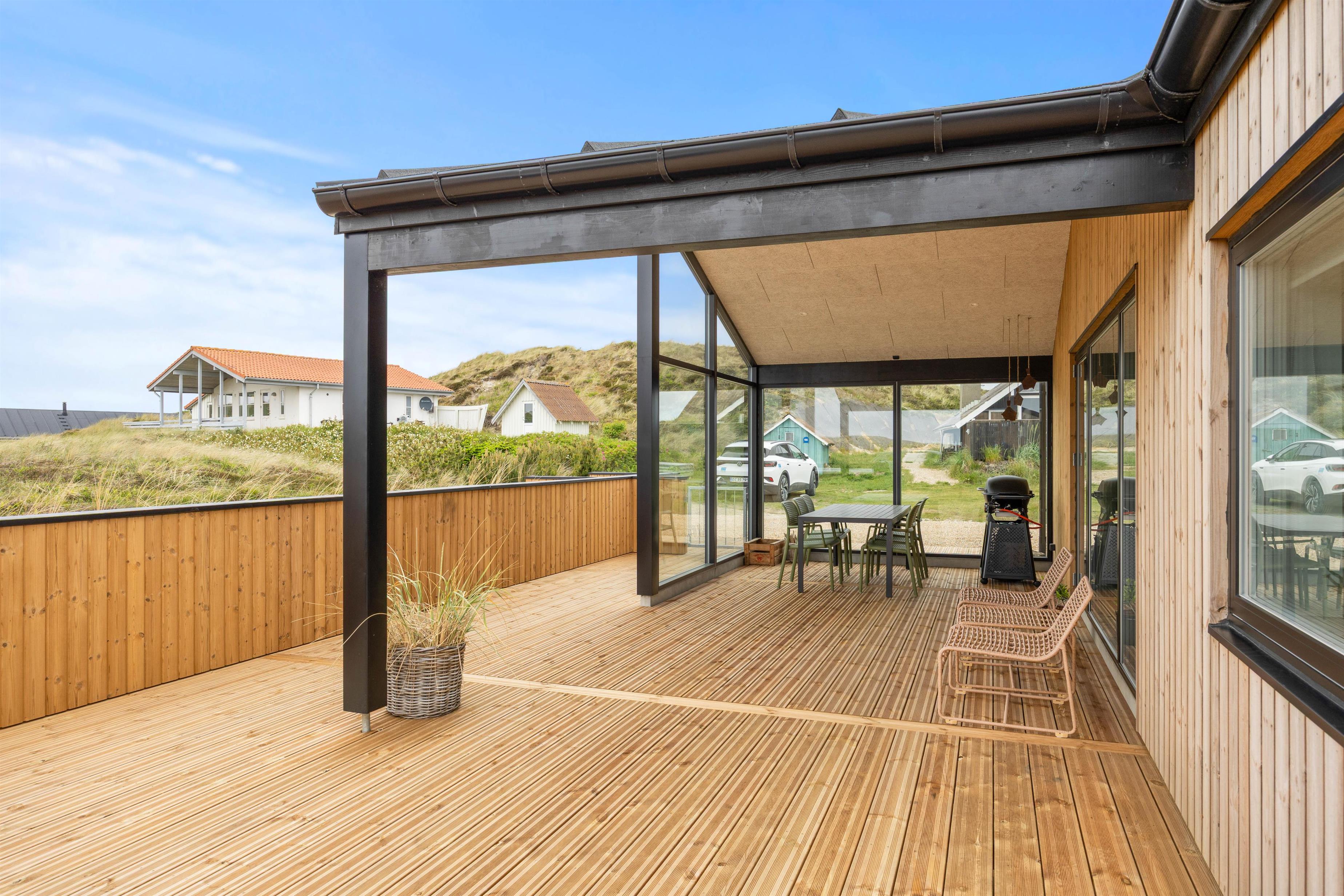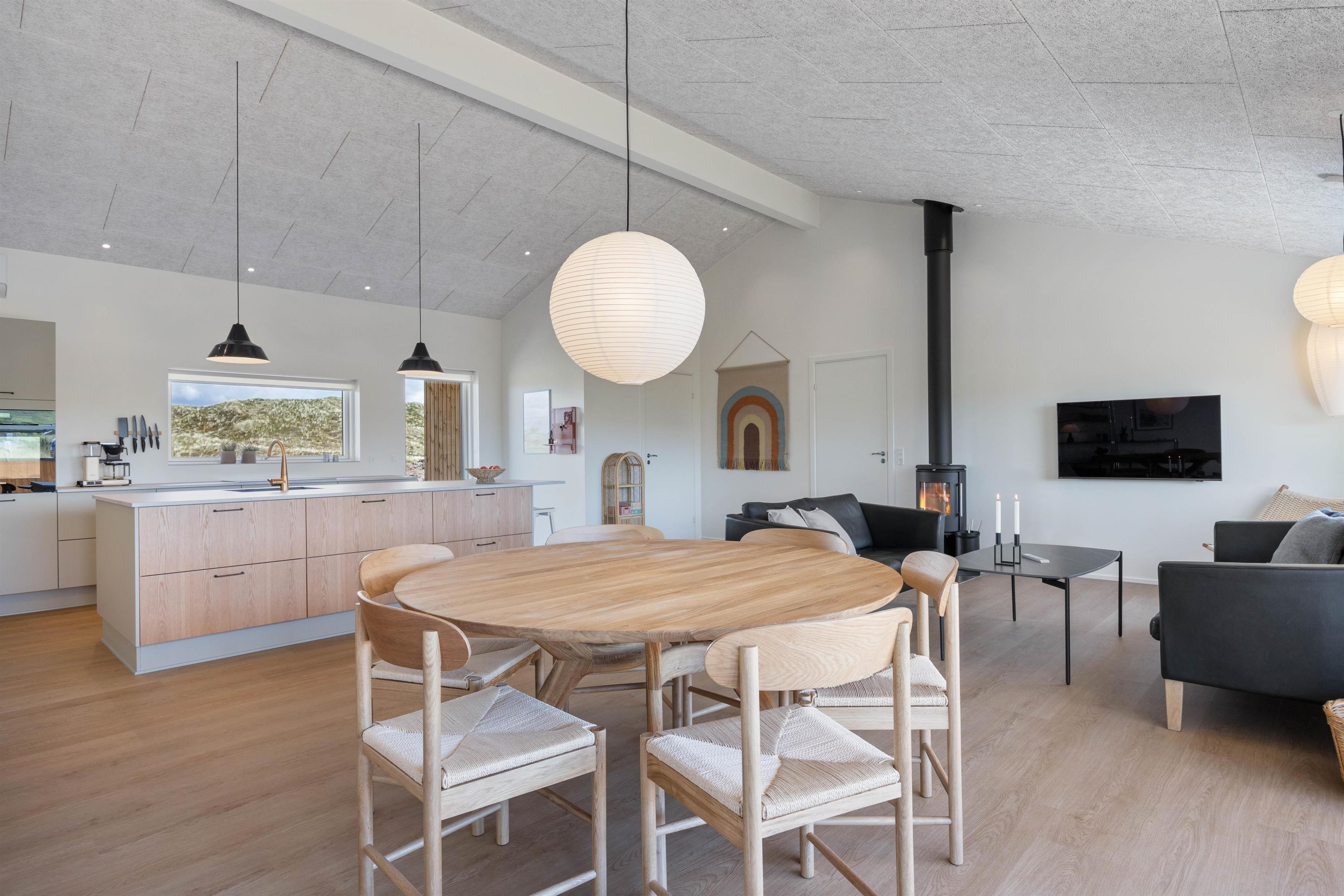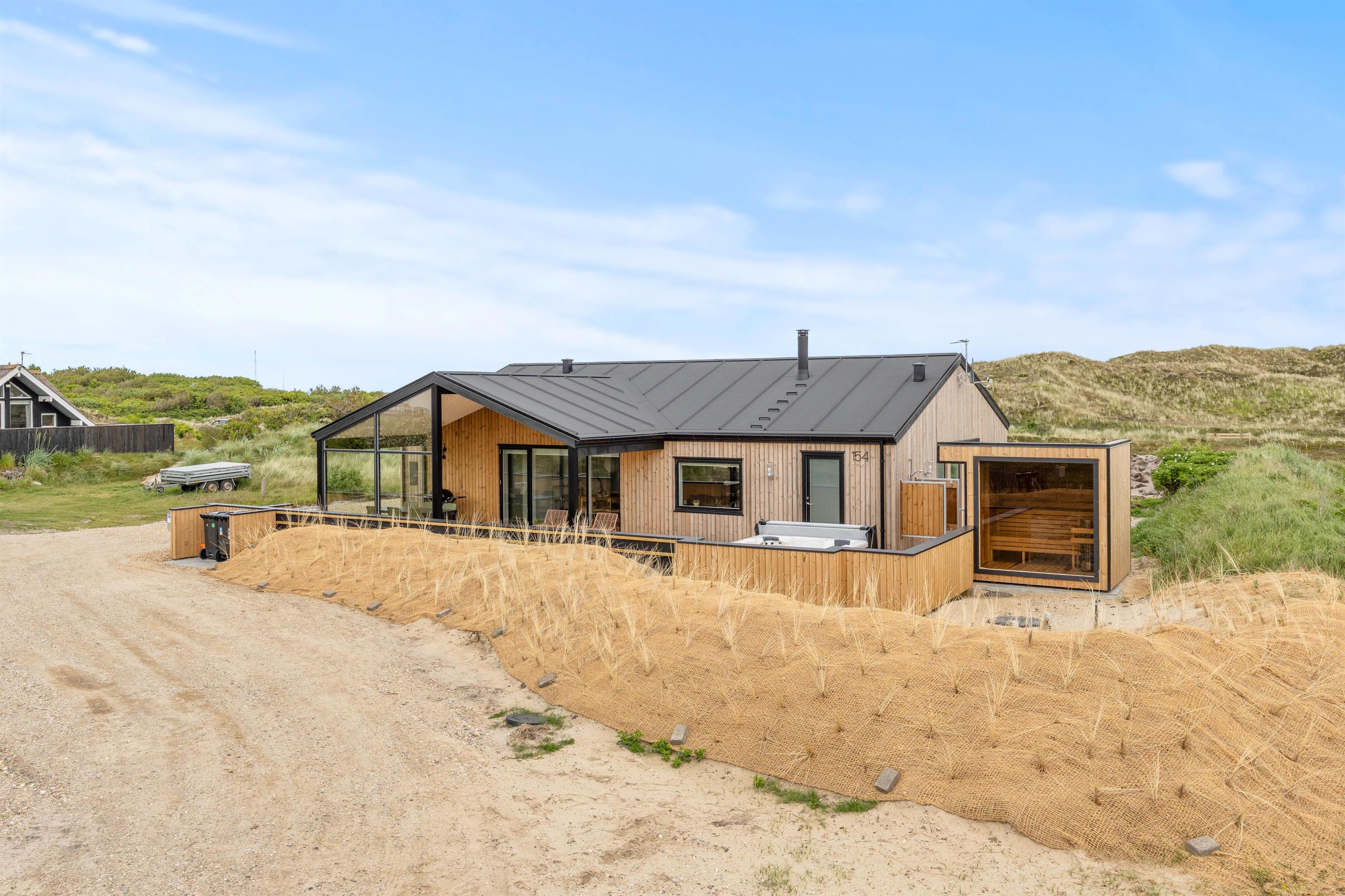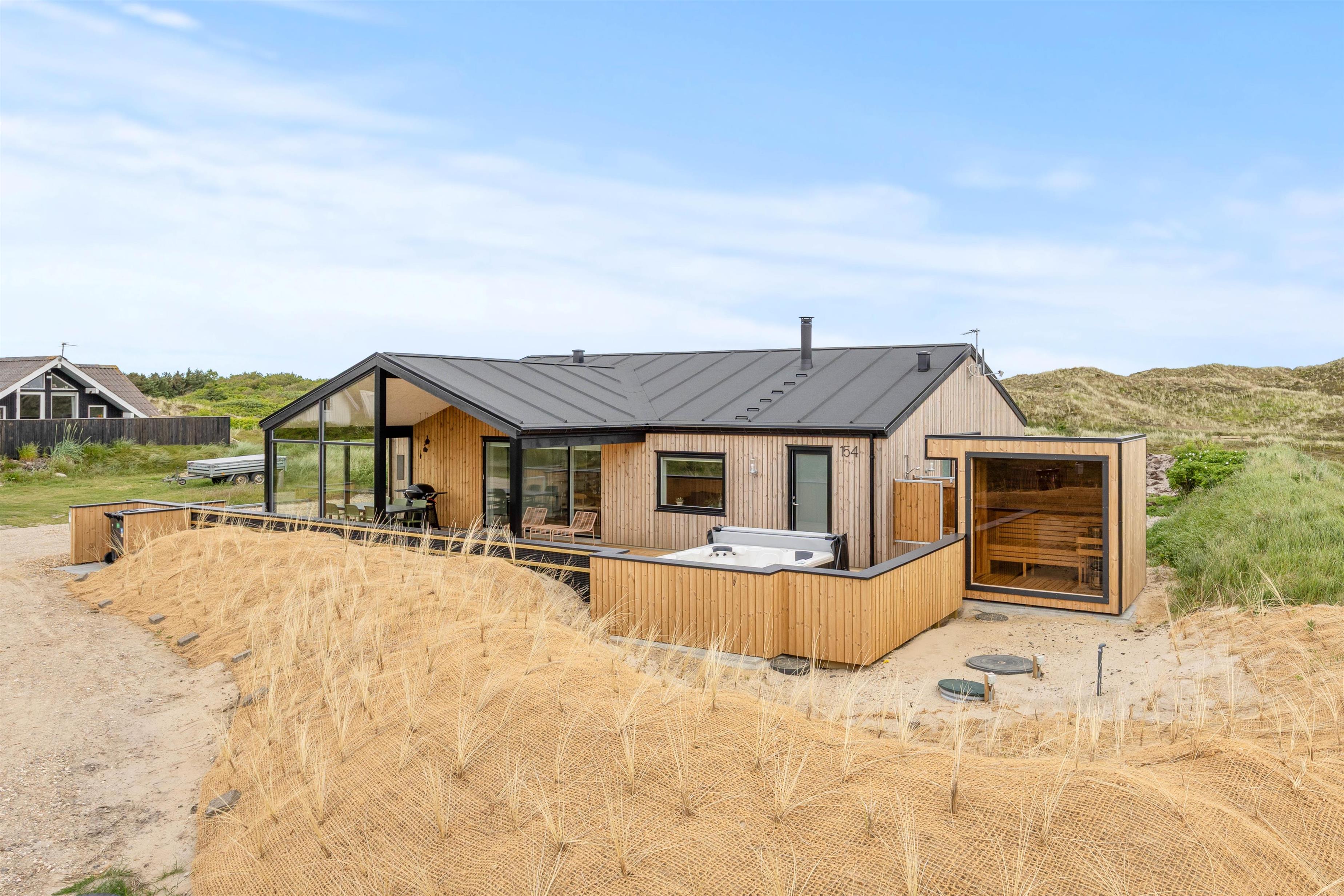 Dette skønne sommerhus, som er bygget i 2025, har alt, hvad I har brug for til en afslappende ferie. Her er plads til 6 personer og 2 hunde, så hele familien – inklusive de firbenede – kan holde en god og hyggelig ferie sammen. Med skønne faciliteter, som udespa, sauna og brændeovn og en beliggenhed kun 250 meter fra det brusende Vesterhav, er rammen sat for en dejlig ferie.