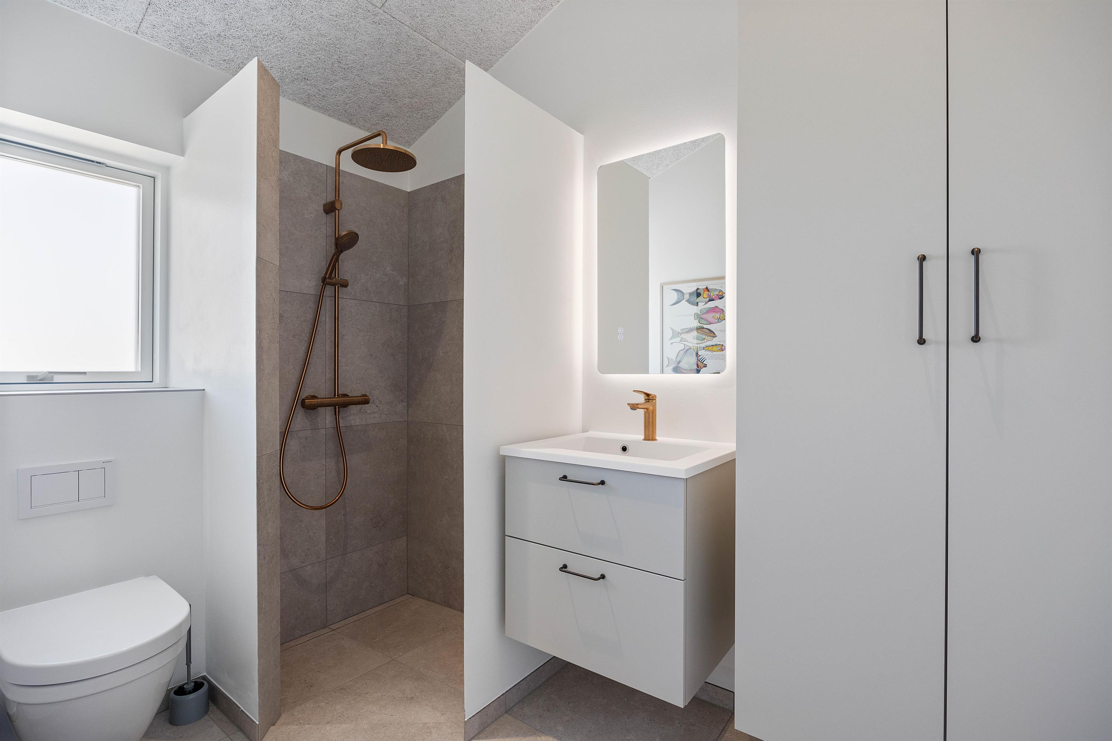 Efter en dejlig dag kan I finde til ro i en af sommerhusets 3 soverum, hvor der i alt er 6 sovepladser. Hvert soveværelse har sit eget badeværelse med gulvvarme, som gør morgenstunden ekstra komfortabel - her er der plads til, at alle kan starte dagen i eget tempo, uden at skulle dele badeværelse.