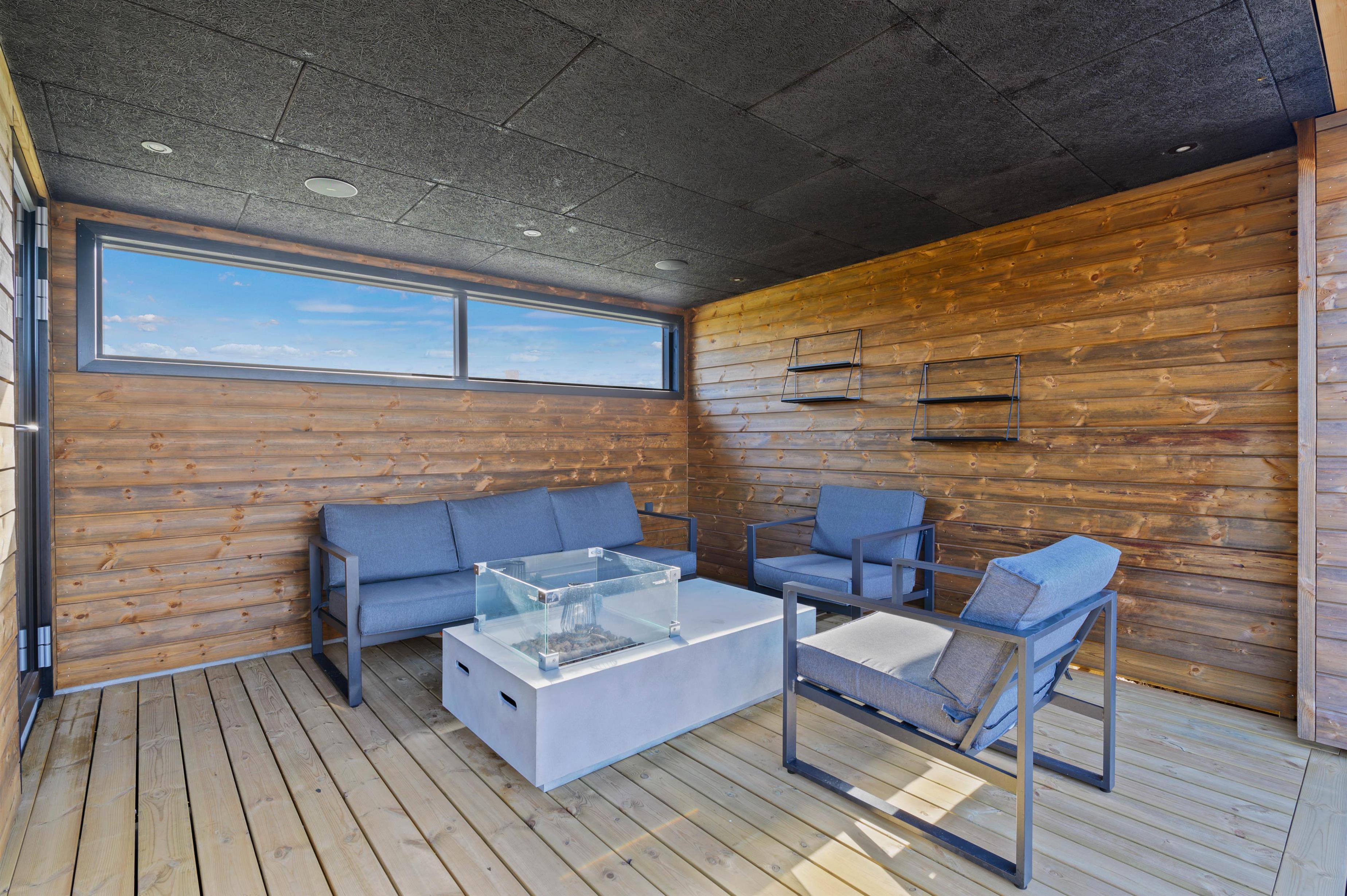 Terrassen er lukket samt delvist overdækket og afskærmet, så I kan sidde i læ for vinden, og hundene kan gå frit rundt. Desuden er der på terrassen en udebruser, dog opvarmes vandet til bruseren af vejret, og vandtemperaturen afhænger derfor af vejrforholdene. Udebruseren er derfor også kun tilgængelig fra april til november.
