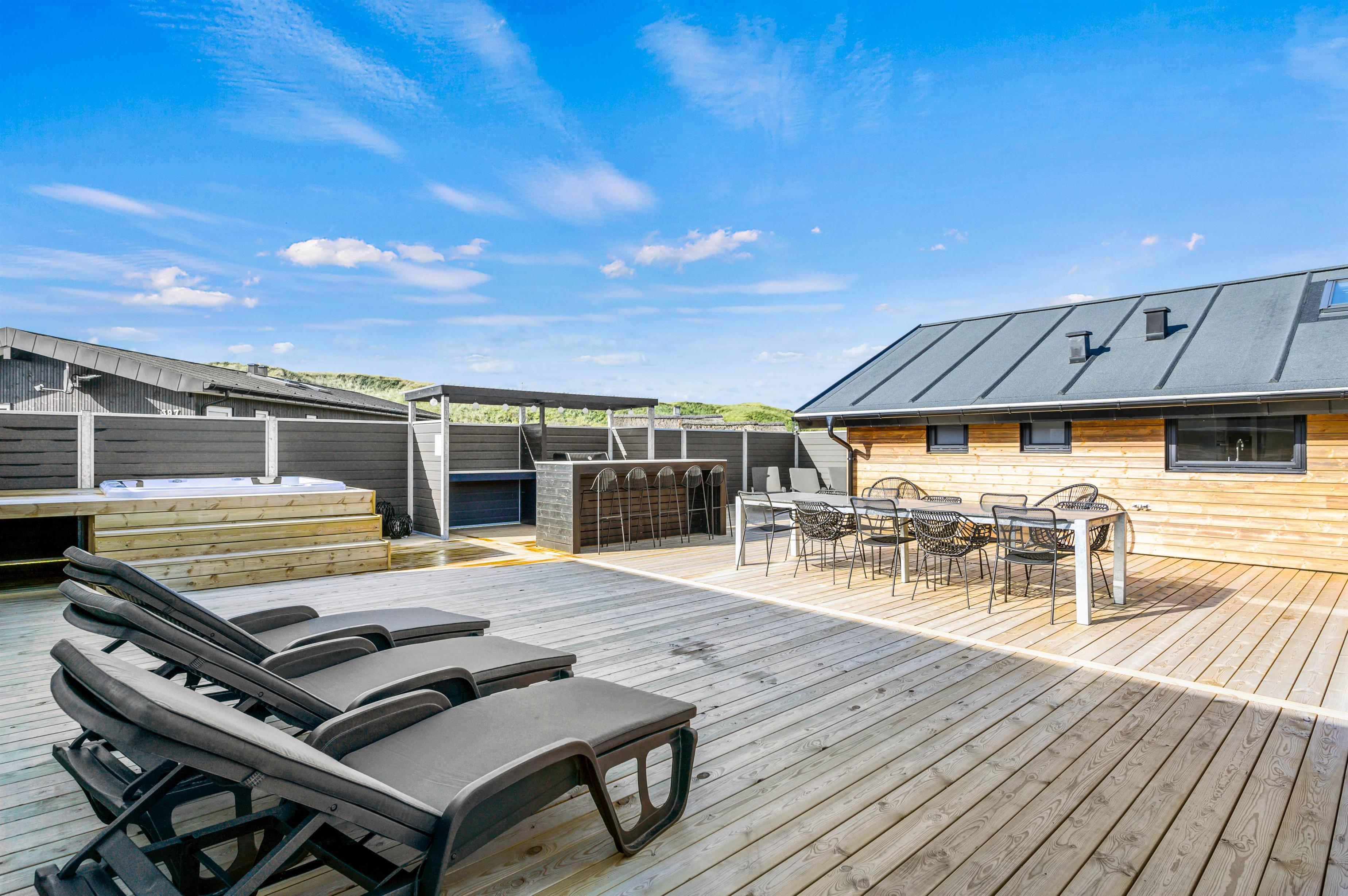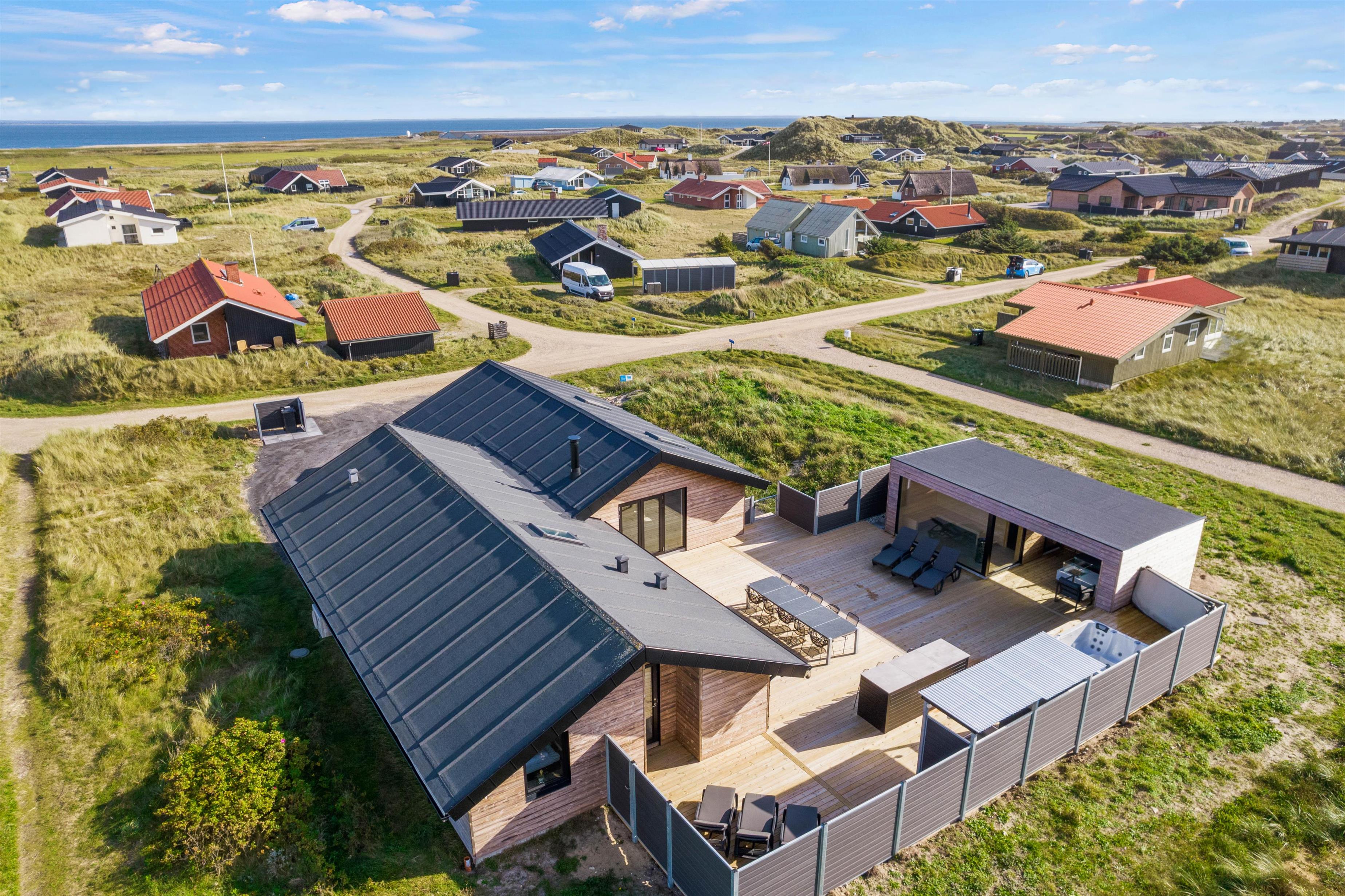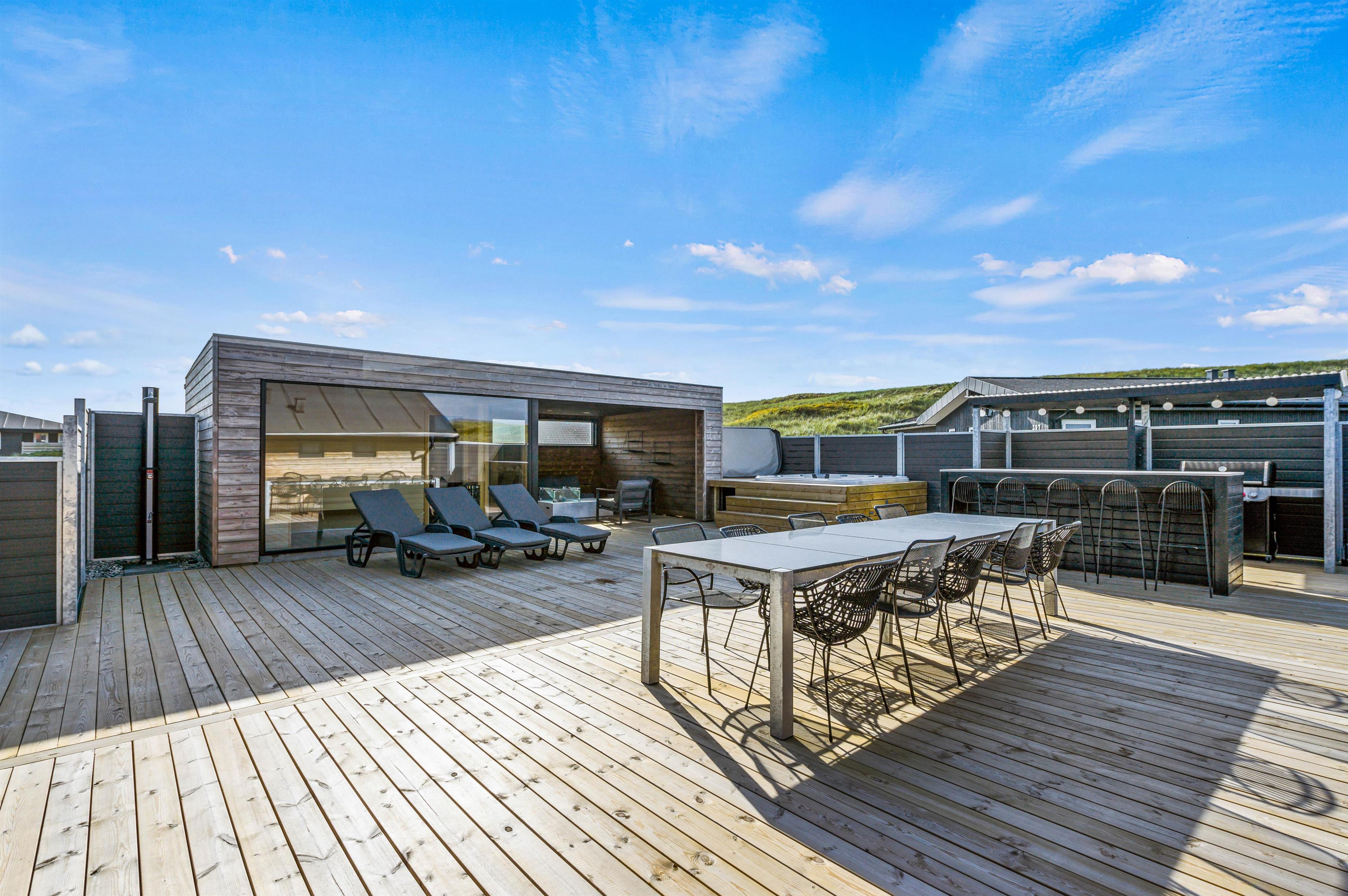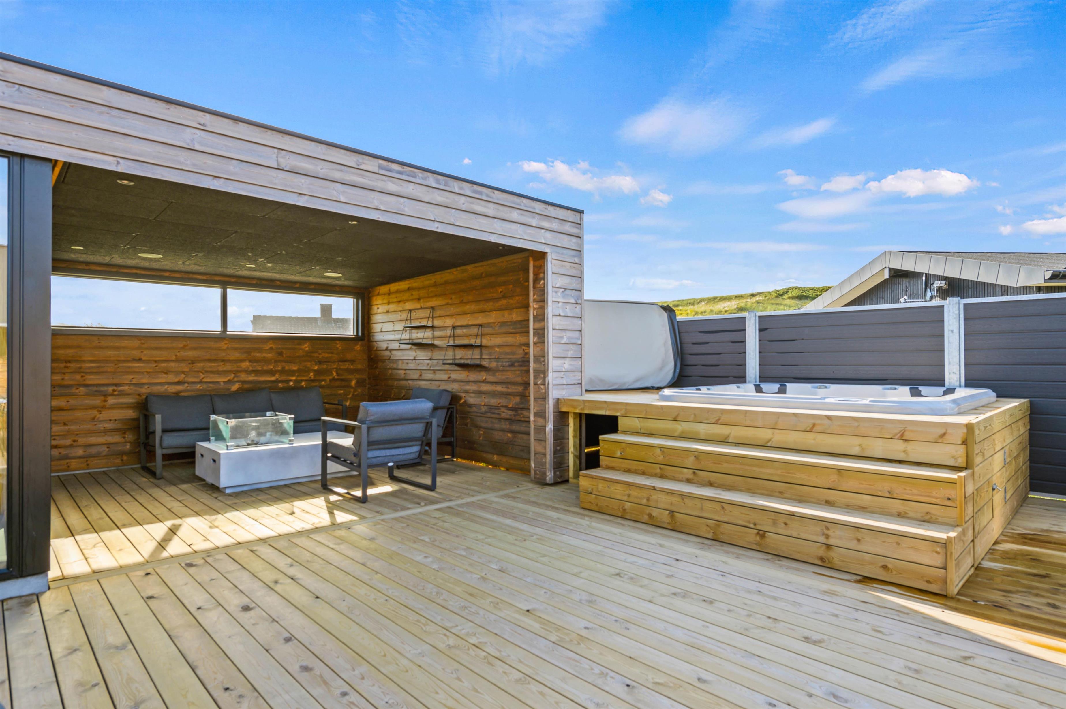 En oase til afslapning venter på jer i det udendørs område ved sommerhuset. Terrassen på naturgrunden inviterer jer til at nyde solen på liggestolene, mens Vesterhavet bruser lige rundt om hjørnet. Komfortable havemøbler og grill står klar til jer, så I kan holde en hyggelig grillaften i familiens selskab.