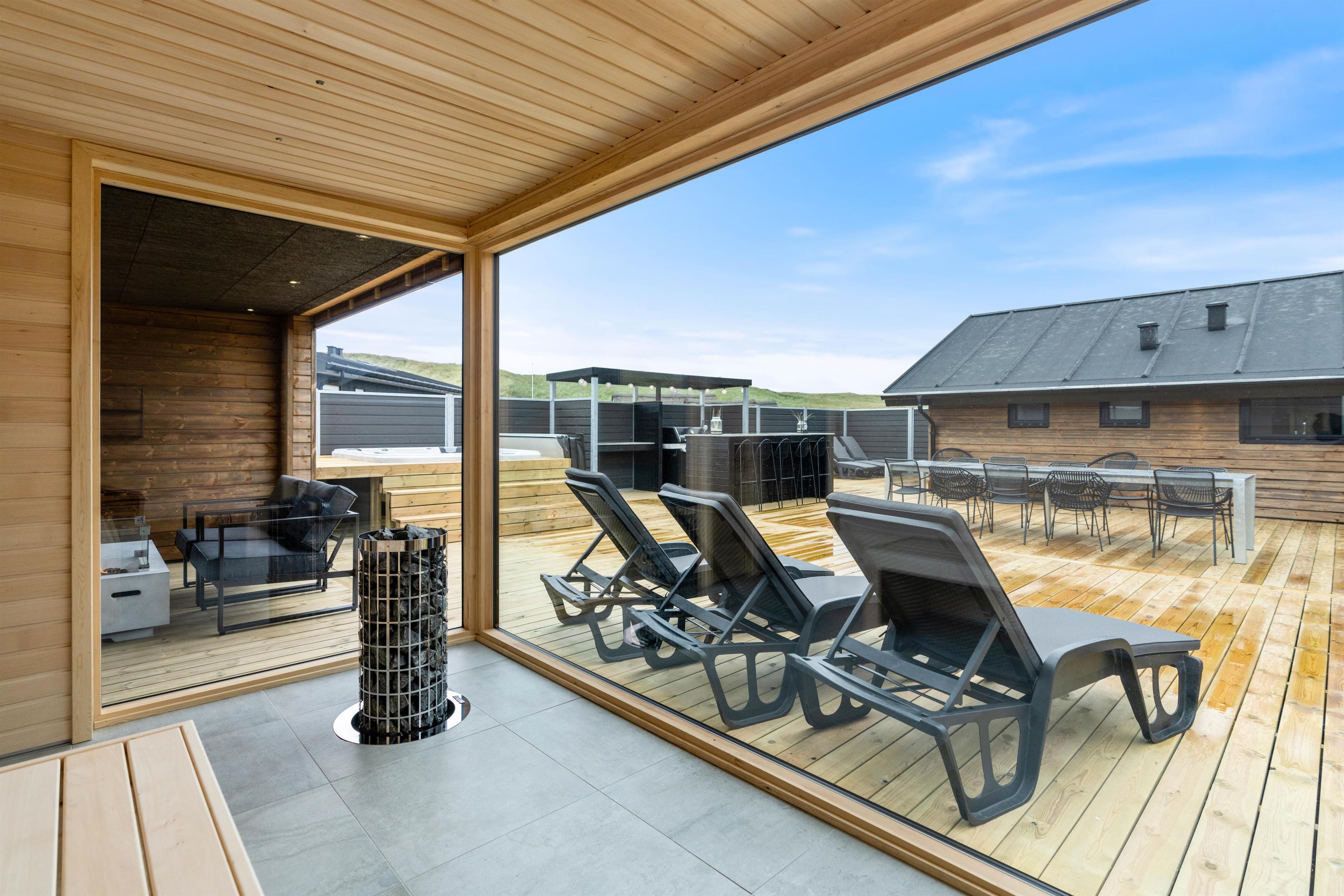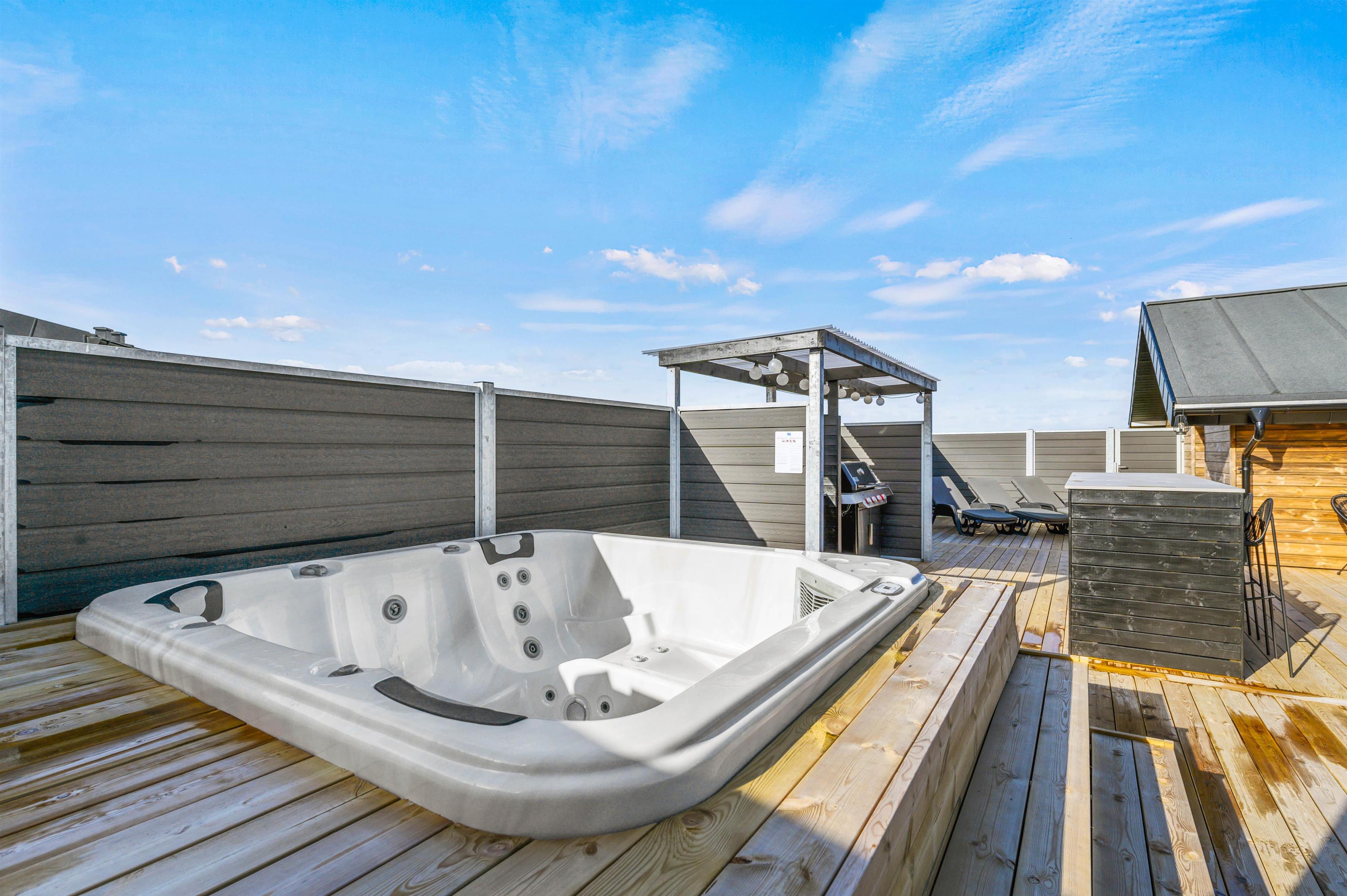 Når aftenen er ved at være omme, kan I hoppe en tur i det udendørs spabad efterfulgt af en tur i den varme sauna på terrassen.