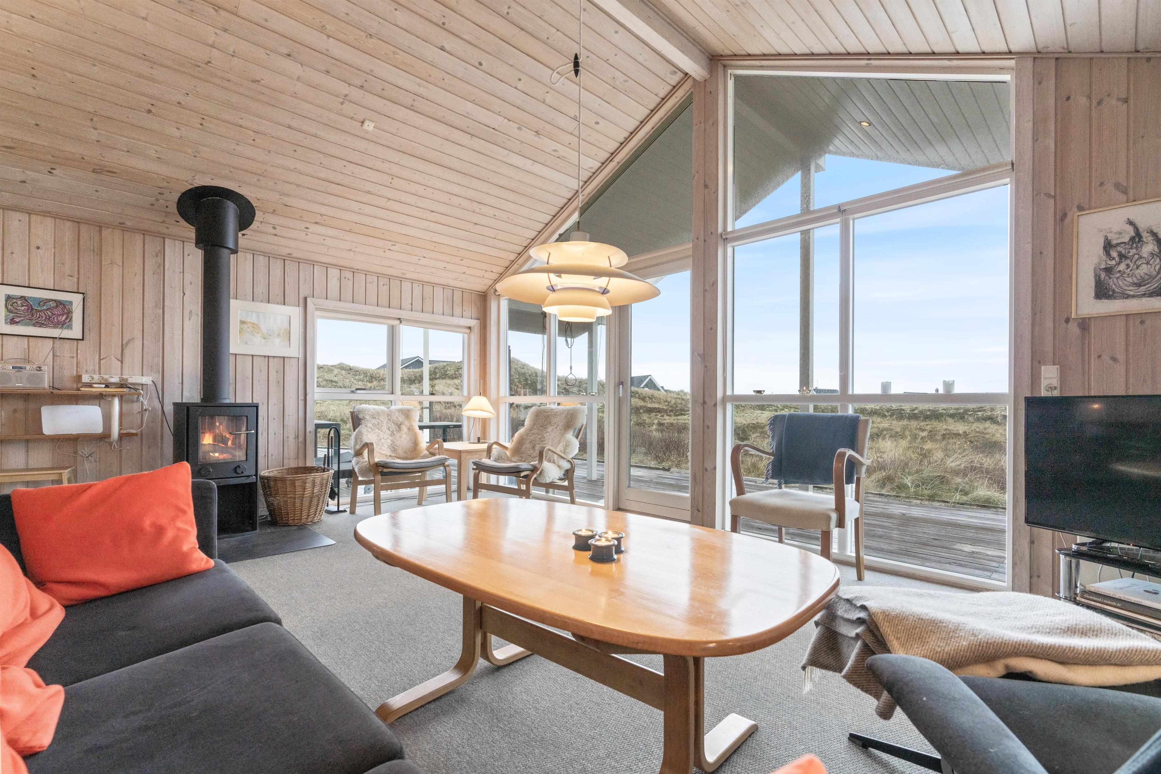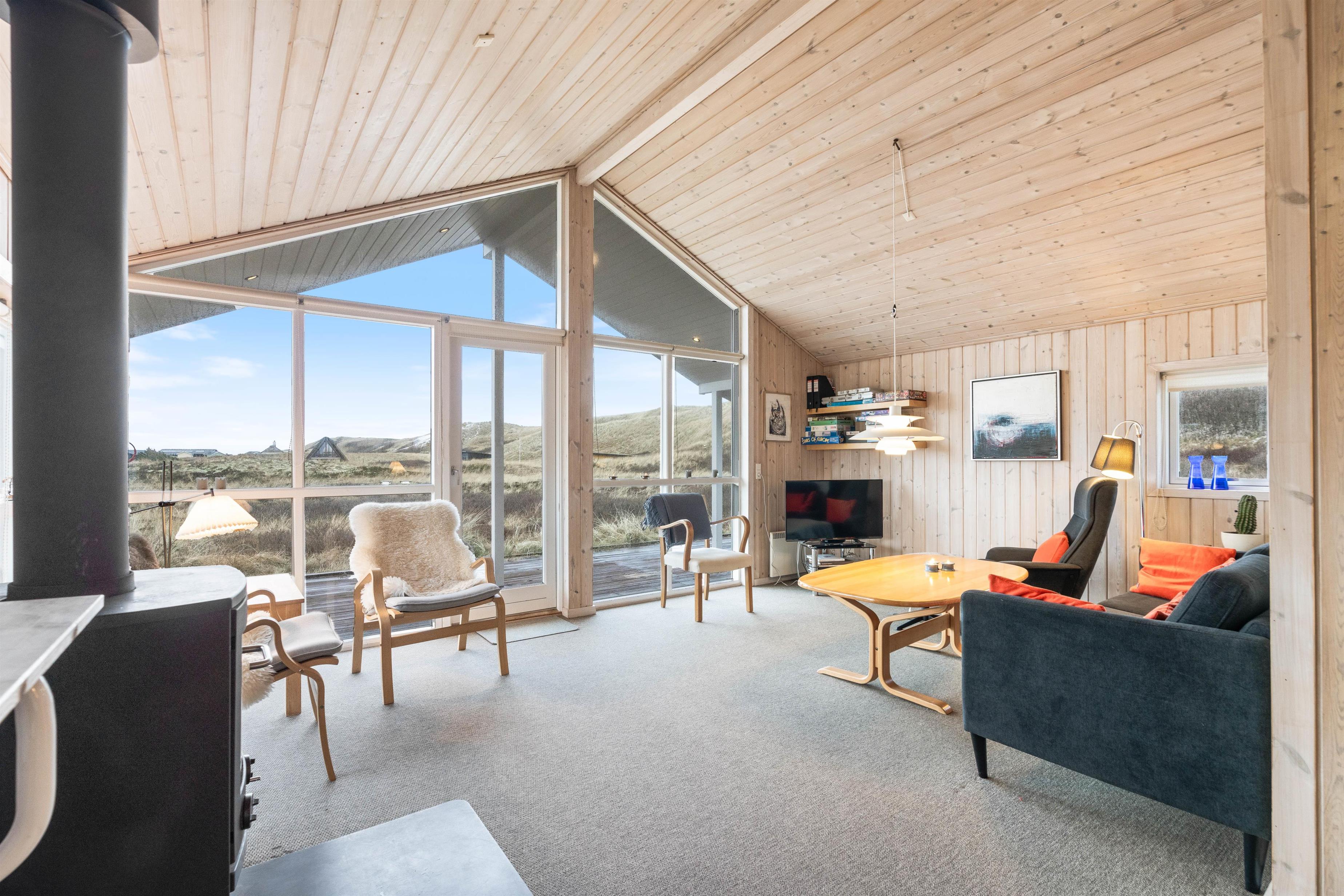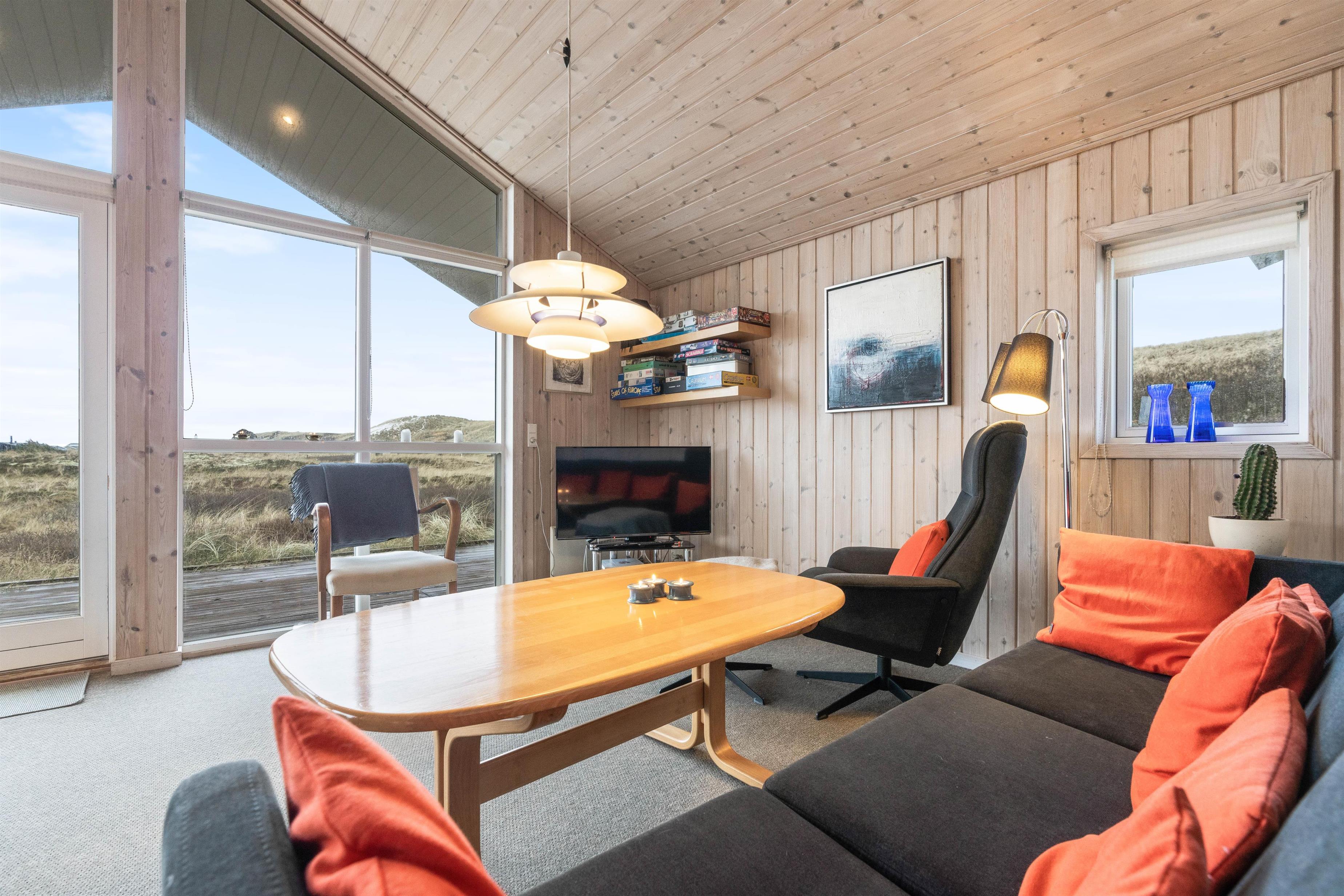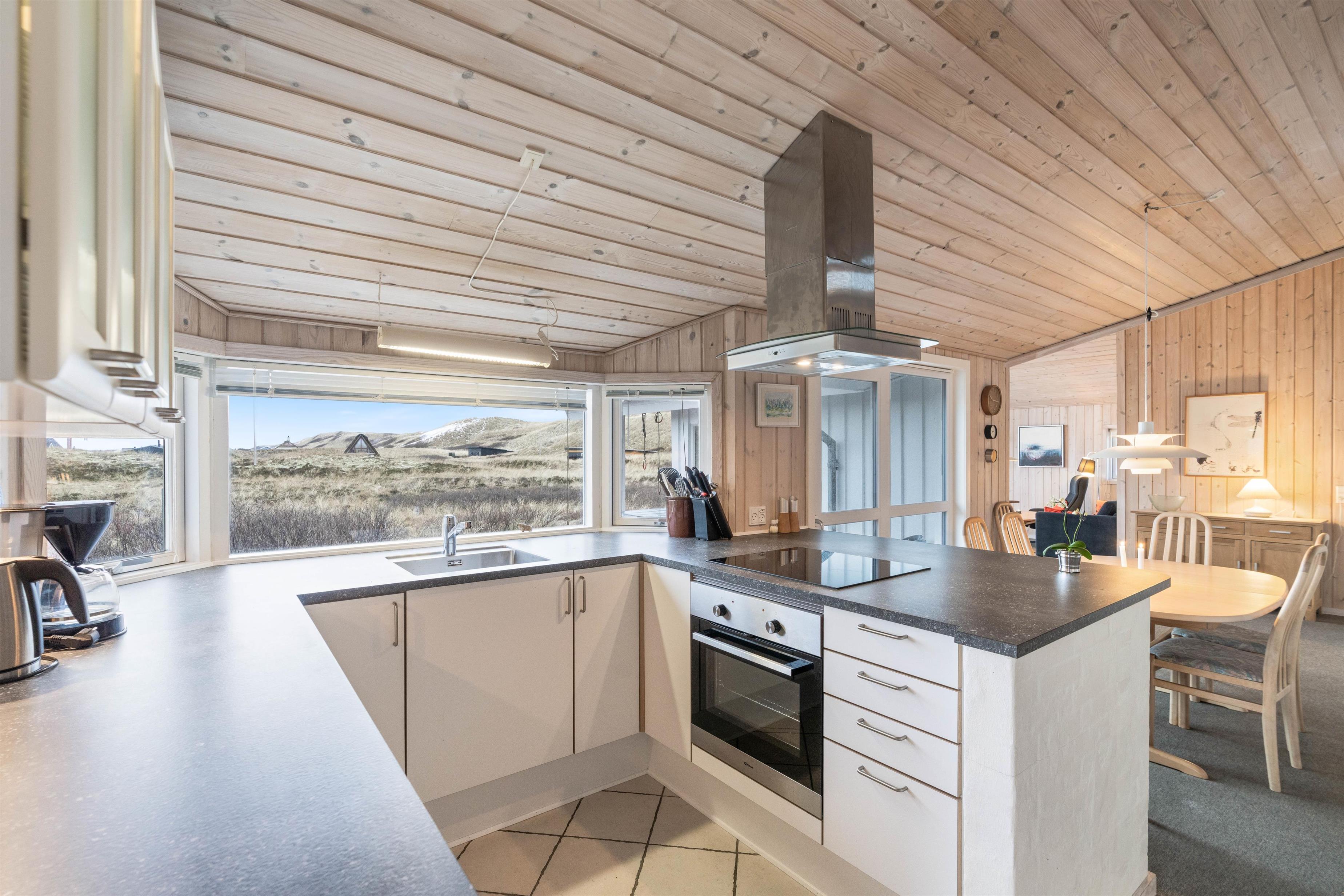 Både køkken-, spise- og stuerum er åbnet op, så der er rig mulighed for samvær og hygge. De store vinduespartier i stuen lader masser af lys slippe ind og giver en behagelig følelse, samtidig med, at I har en flot udsigt ud over klitlandskabet.