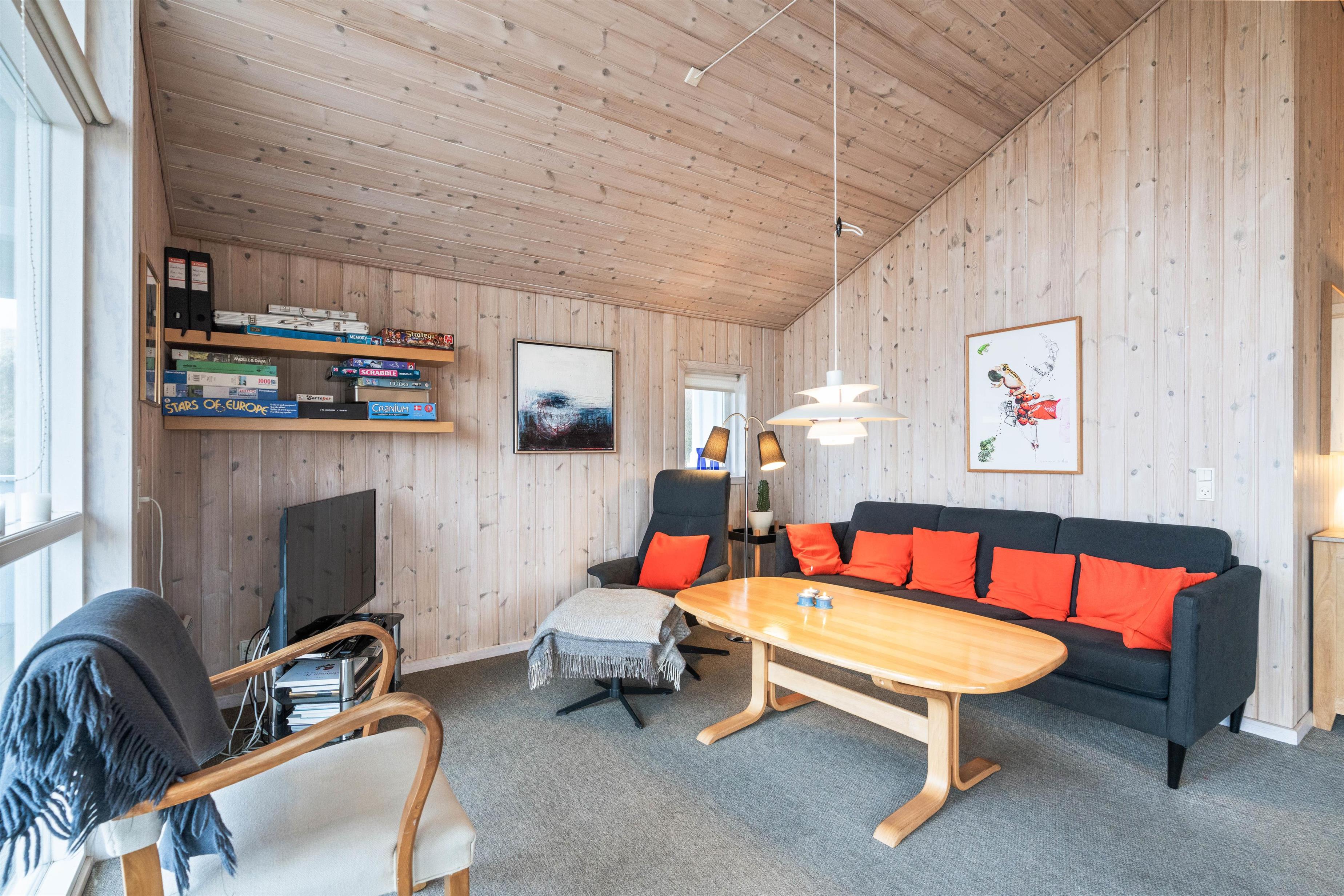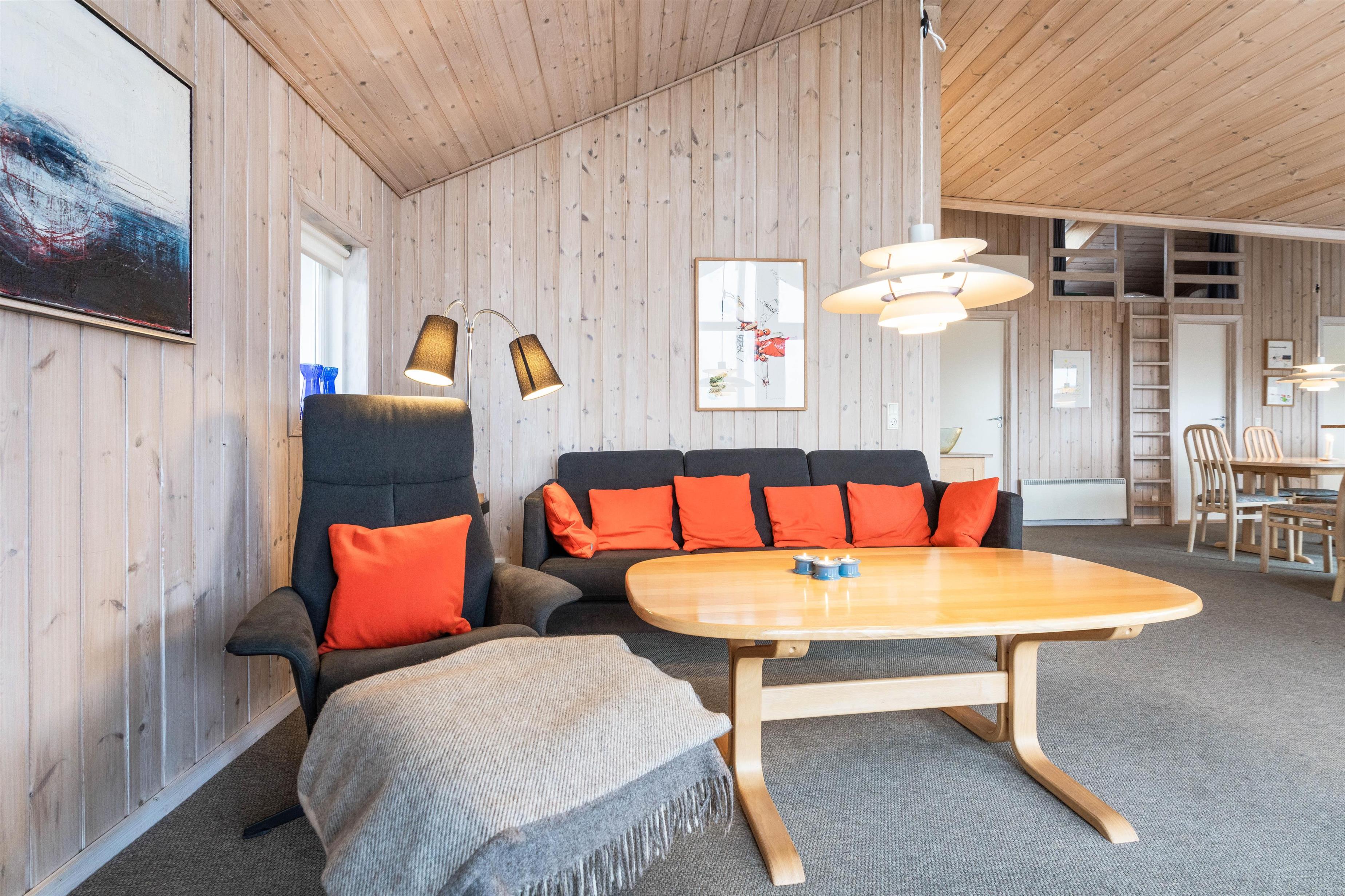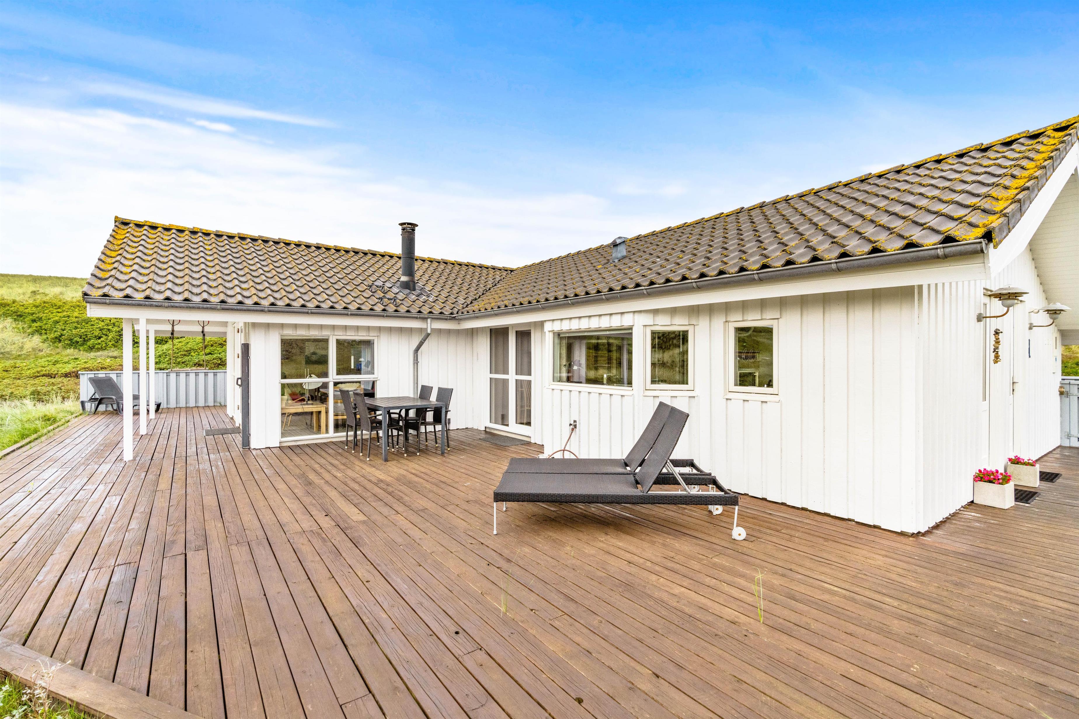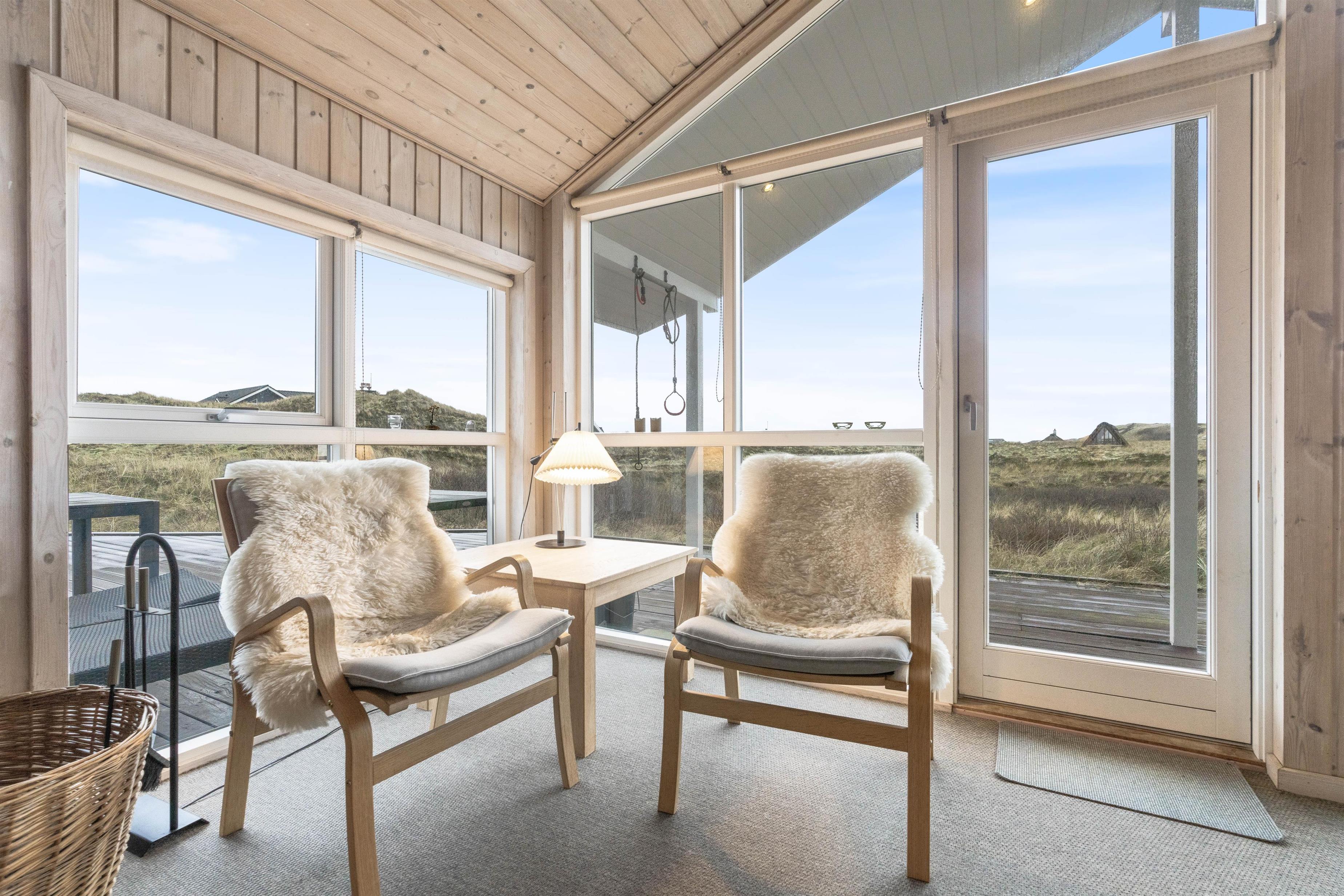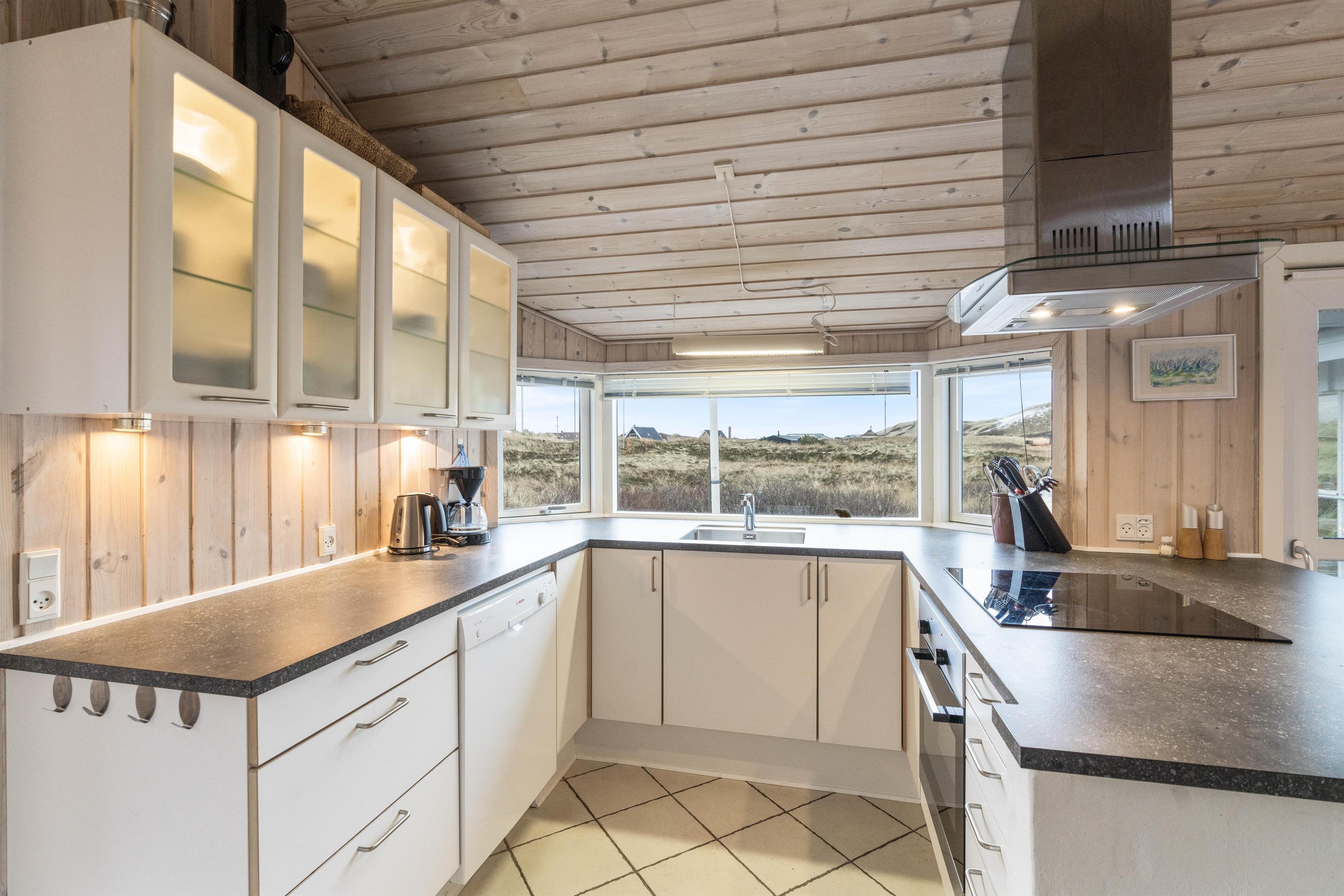 Både køkken-, spise- og stuerum er åbnet op, så der er rig mulighed for samvær og hygge. De store vinduespartier i stuen lader masser af lys slippe ind og giver en behagelig følelse, samtidig med, at I har en flot udsigt ud over klitlandskabet.