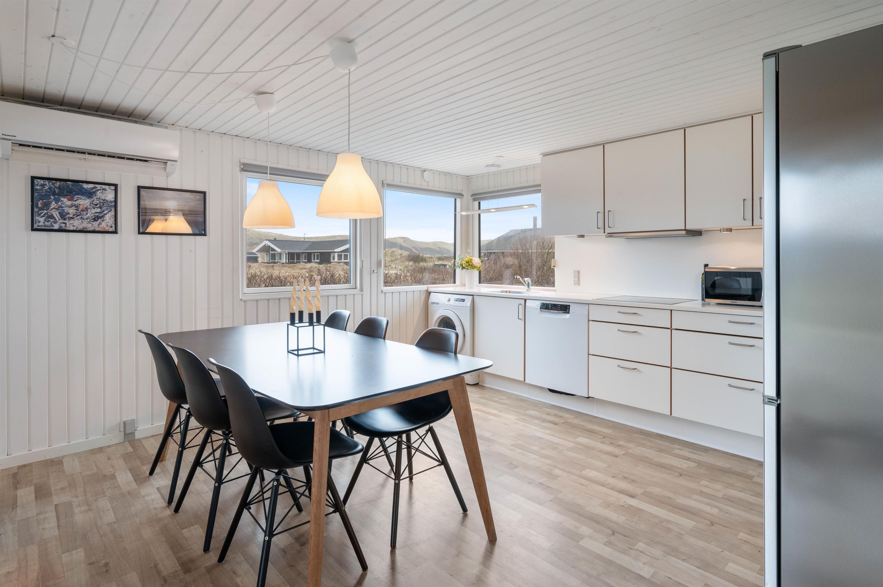 Husets beliggenhed er exceptionel, og kun 150 meter væk ligger den skønne sandstrand og Vesterhavets brusende bølger og kalder på jer. Tag en dukkert på en varm sommerdag, eller gå en tur i den imponerende efterårsstorm, hvor bølgerne danser i blæsten.