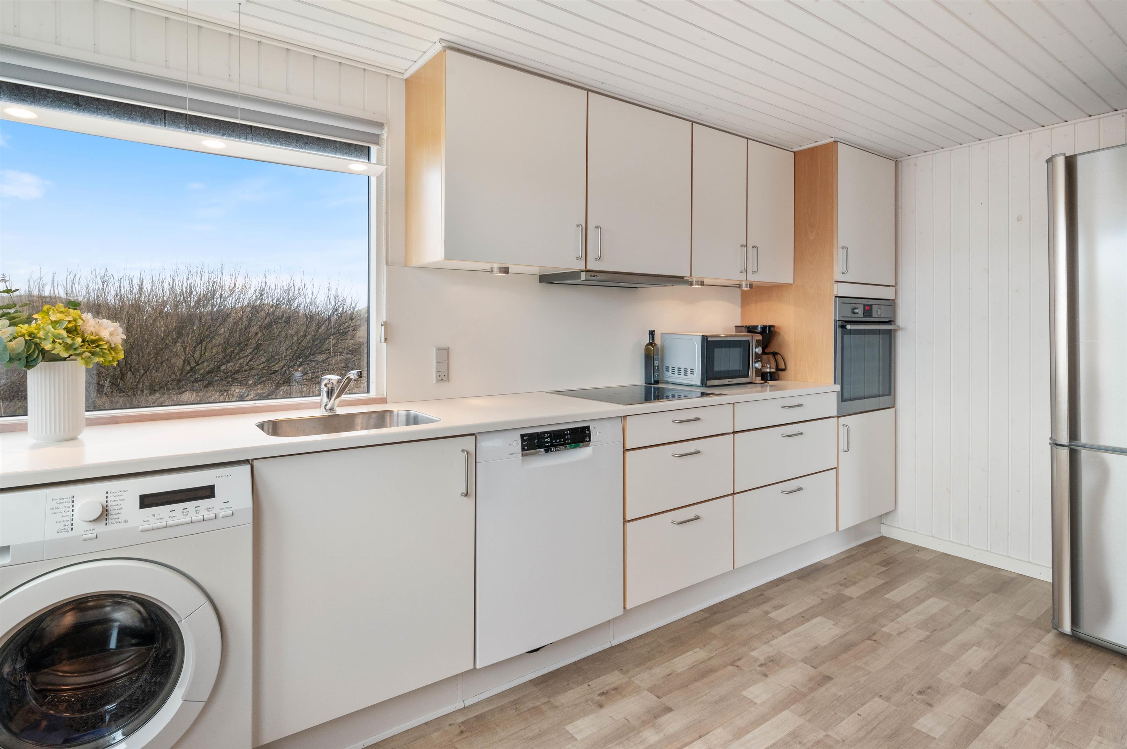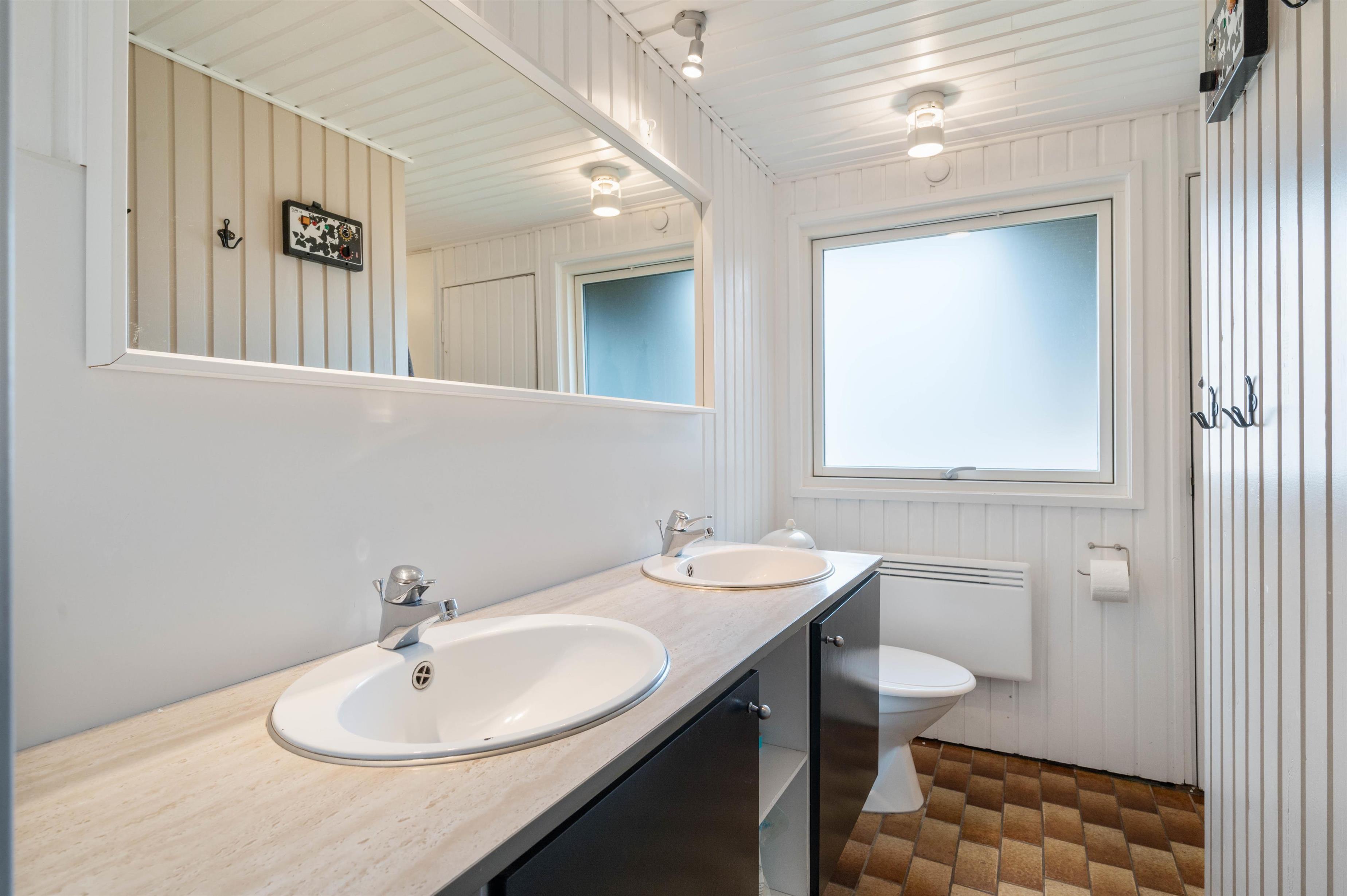 Her får I ekstra komfort: I det hyggelige sofahjørne står brændeovnen klar til at varme jer på de kolde feriedage, og fra badeværelset har I adgang til en skøn sauna, hvor I kan tanke ny energi efter en oplevelsesrig feriedag.