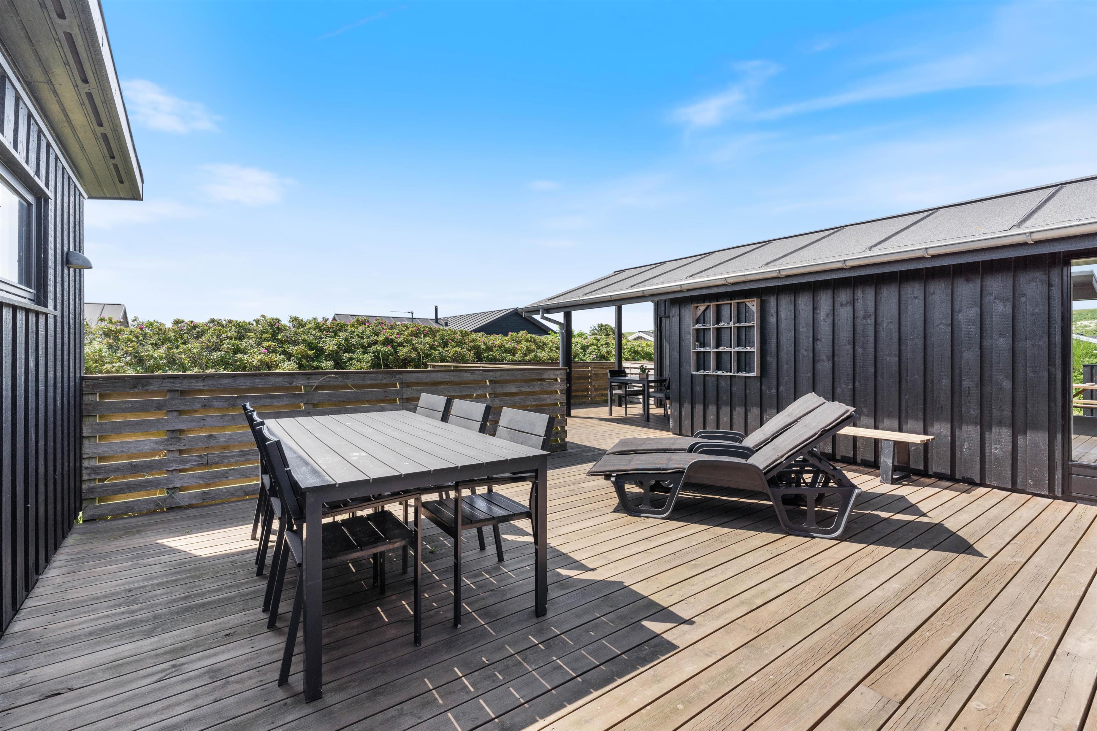 Terrassen er lukket af, og I kan roligt lade både børnene og hunden lege frit uden at skulle holde opsyn. I sommersolen kan I nyde varmen fra liggestolene med en kold drink i hånden, og på de lune aftener kan I tænde op i grillen og forkæle jer selv og hinanden med et ekstra godt feriemåltid.