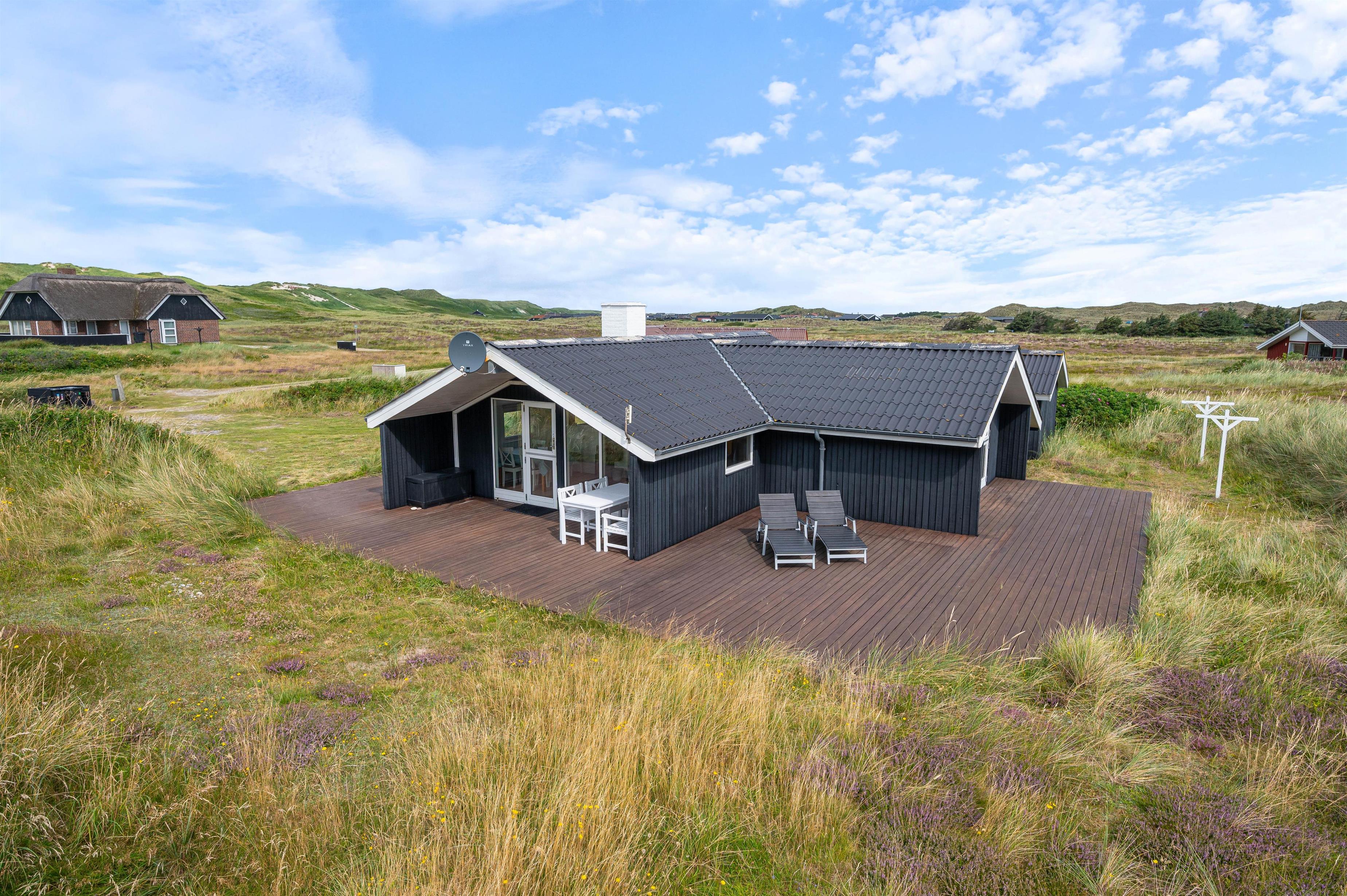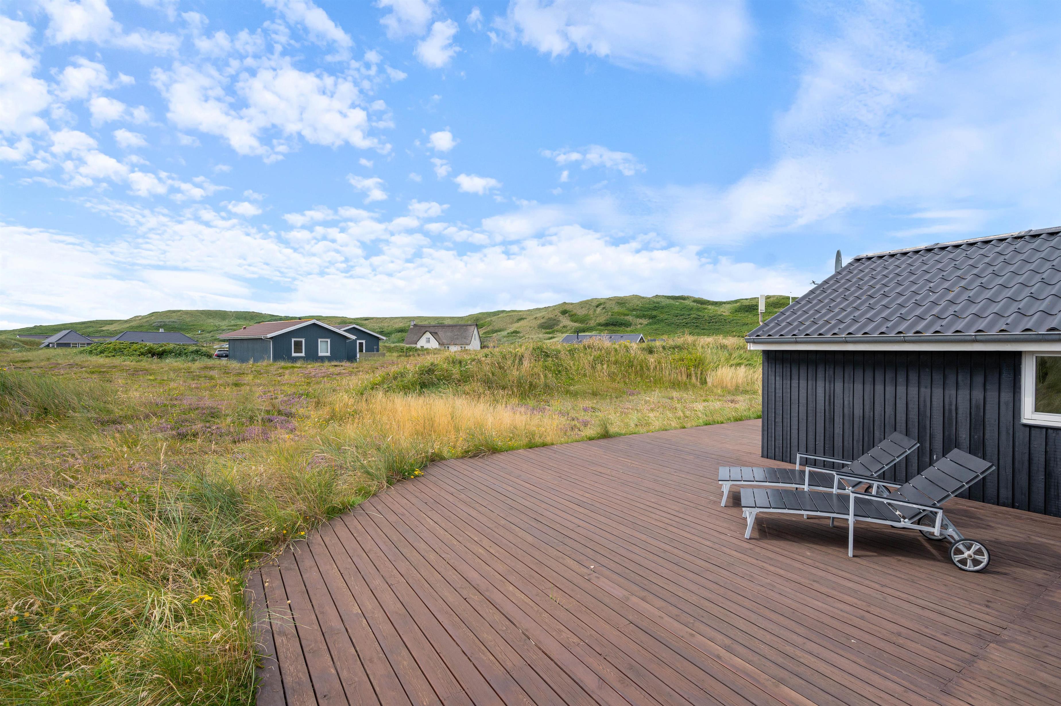 Nyd ferien og hyg dig med familien eller vennerne på den dejlige terrasse. Her er gode havemøbler og naturligvis en grill til den gode bøf eller friskfangede fisk. Fra terrassen er der smuk udsigt til hede og klitlandskab.
