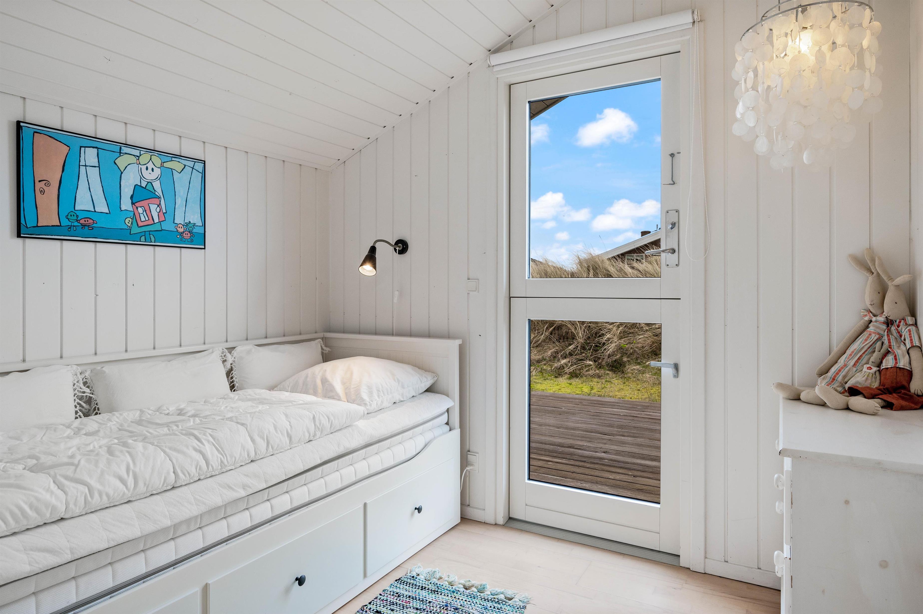Dette lyse og indbydende sommerhus byder dig velkommen med den charmerende og indbydende indretning. Her kan 5 personer holde ferie i lyse og indbydende rammer. De tre soveværelser er indrettet med henholdsvis 2 dobbeltsenge og en sovesofa. Pænt badeværelse med gulvvarme og bruseniche. Køkken med alt i hårde hvidevarer i åben forbindelse med en særdeles dejlig opholdsstue hvorfra der er udgang til en stor terrasse, hvoraf en lille del er overdækket. Huset er udstyret med energibesparende varmepumpe og har gratis trådløst internet.
