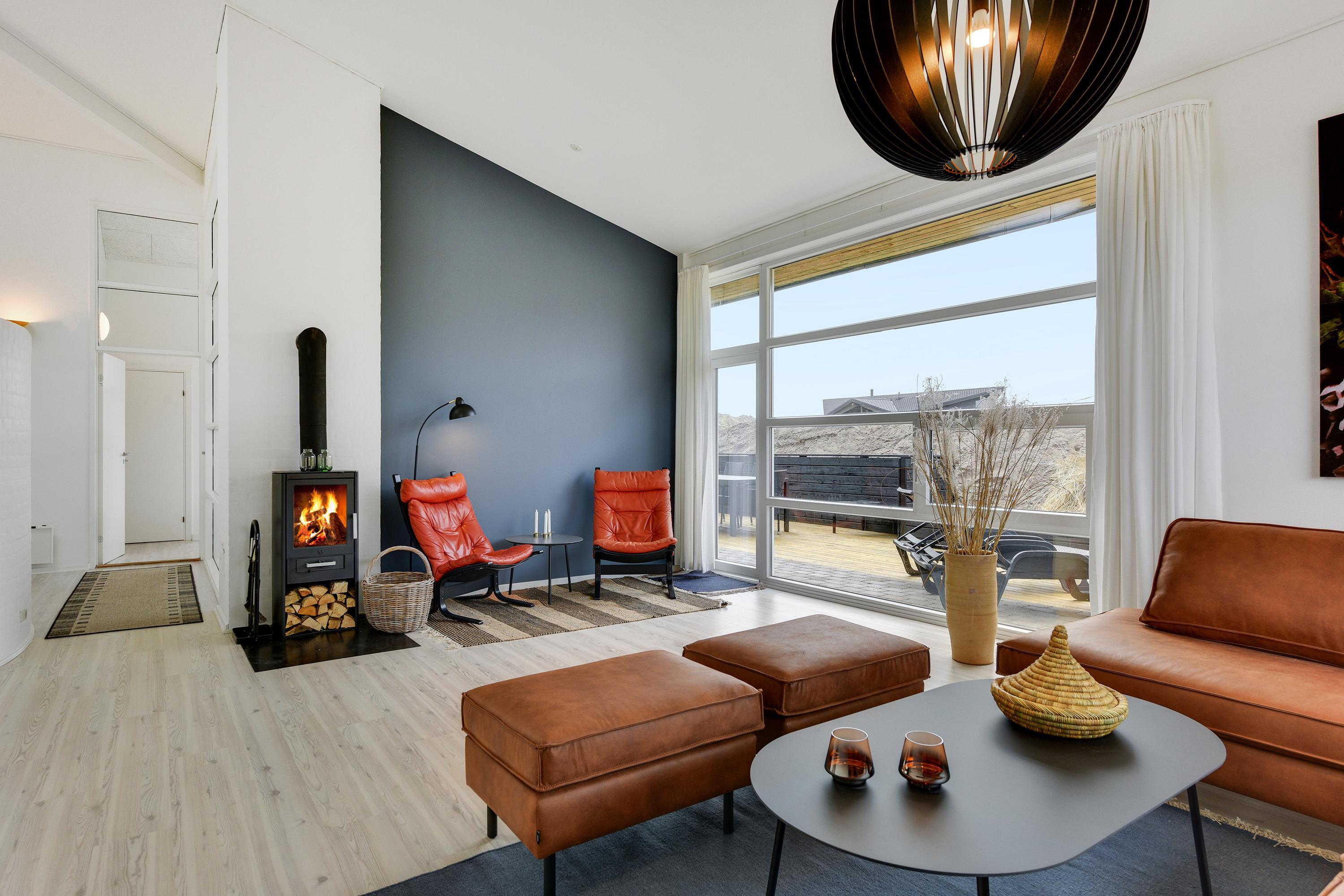 Sommerhuset er bygget i en enkel og flot arkitektur, som passer godt ind i klitlandskabet, og de store vinduer sørger for at trække landskabet med helt ind i stuen og det forskudte køkken- og spiseområde. Omkring et godt måltid med lokal råvarer, kan I tilbringe mange timer sammen.