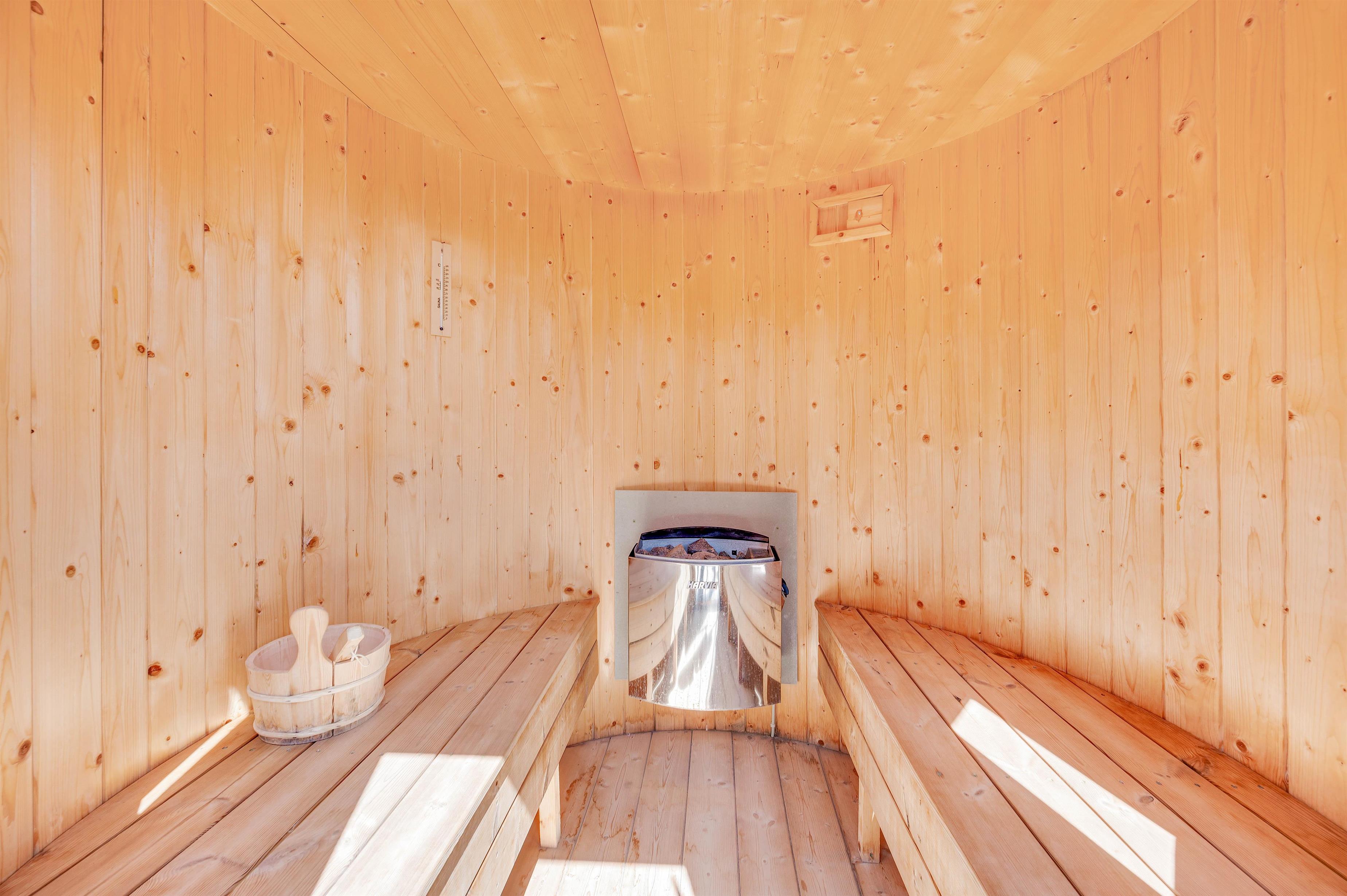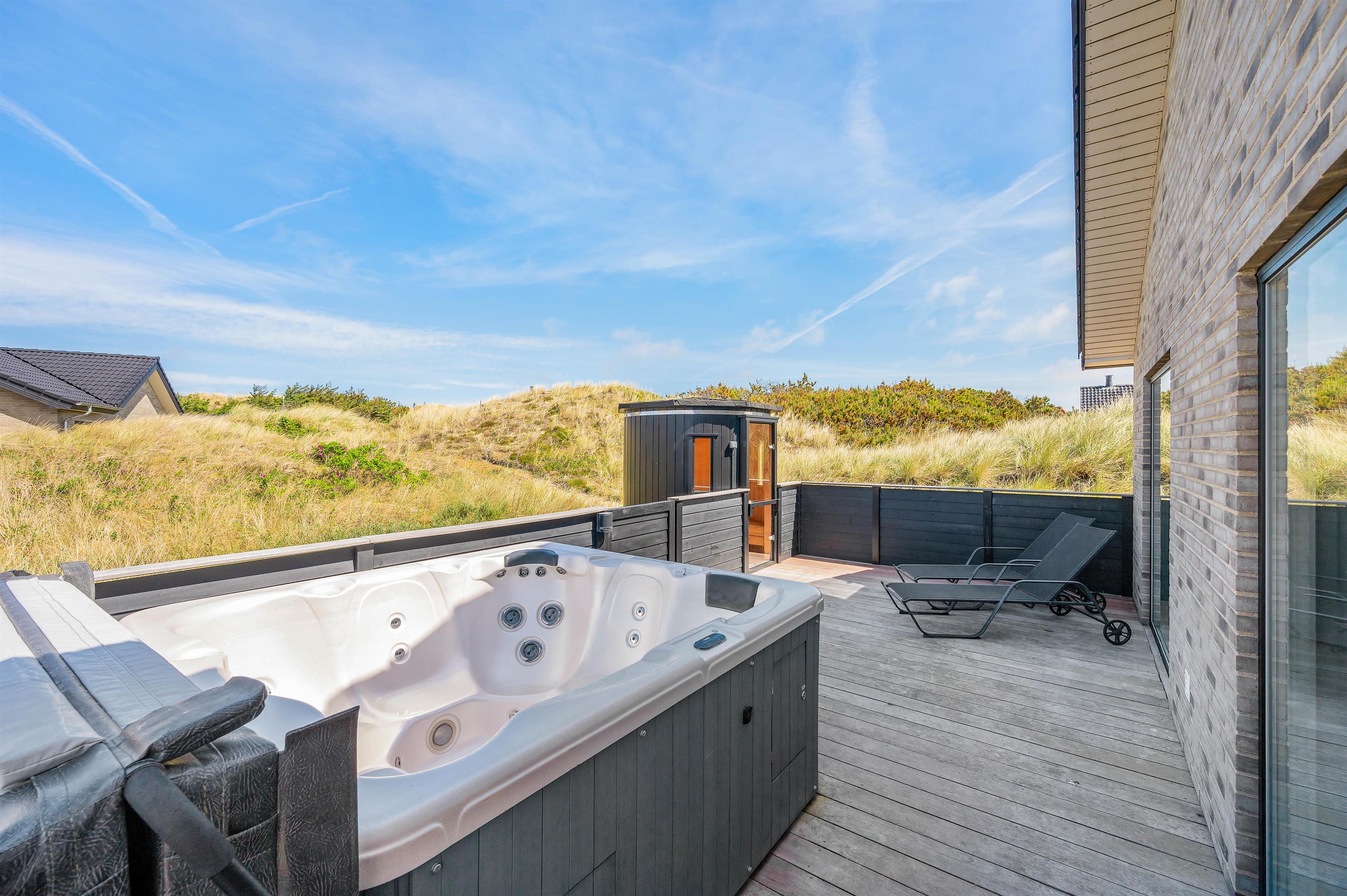 Tilbring en aften i udespaen – og nyd et godt glas vin med udsigt til stjernerne, med Vesterhavets salte duft og dets brusen i baggrunden. Bagefter kan I få varmen i udesaunaen - det er balsam for krop og sjæl. (udesaunaen kan maks blive 50 grader varmt)