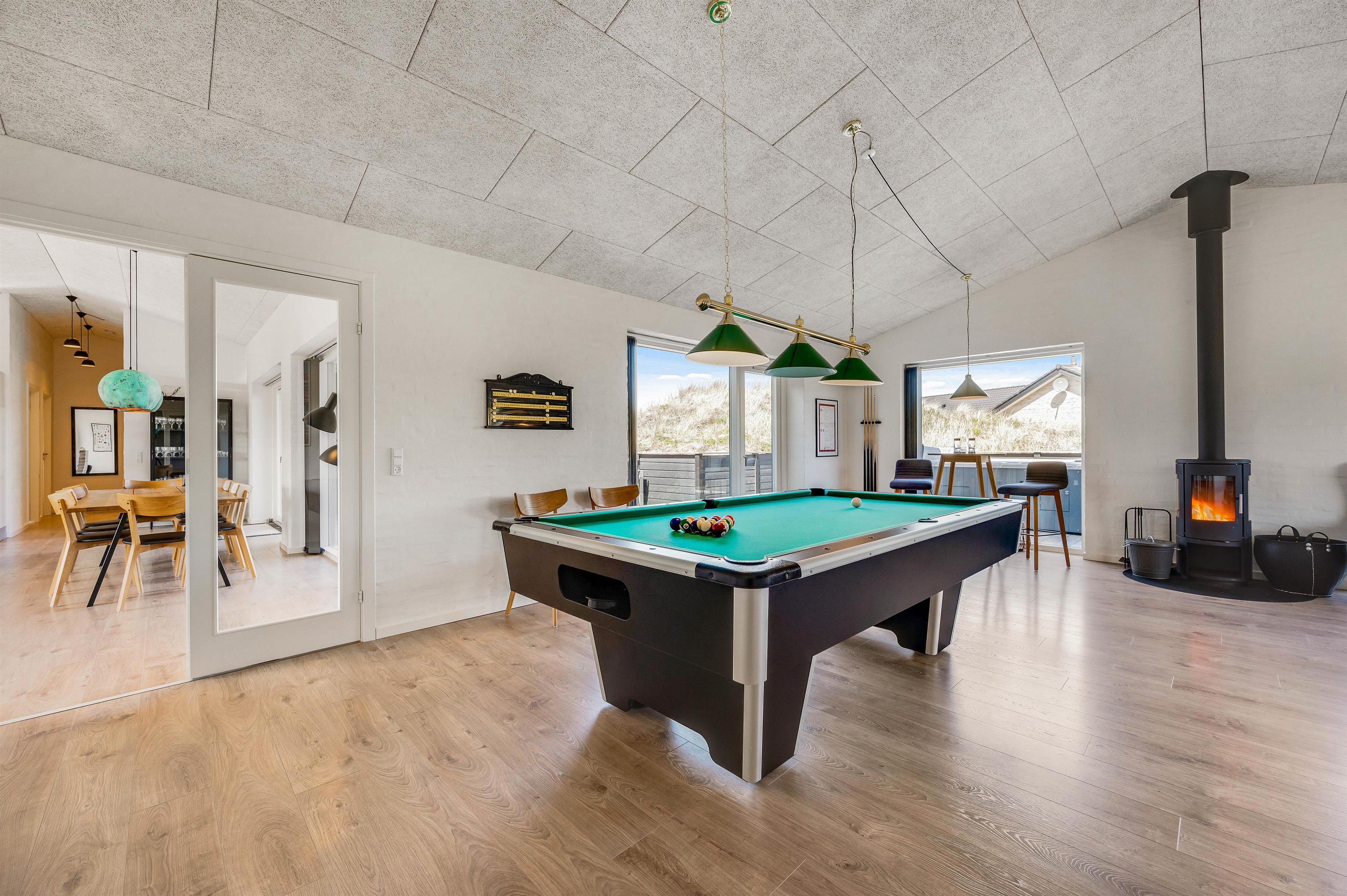 Hvis vejret ikke er til udendørsaktiviteter, kan I hygge jer i det store aktivitetsrum, hvor I finder et billardbord og sofahjørne, hvor I kan nyde varm kakao og kortspil foran den knitrende ild i brændeovnen.