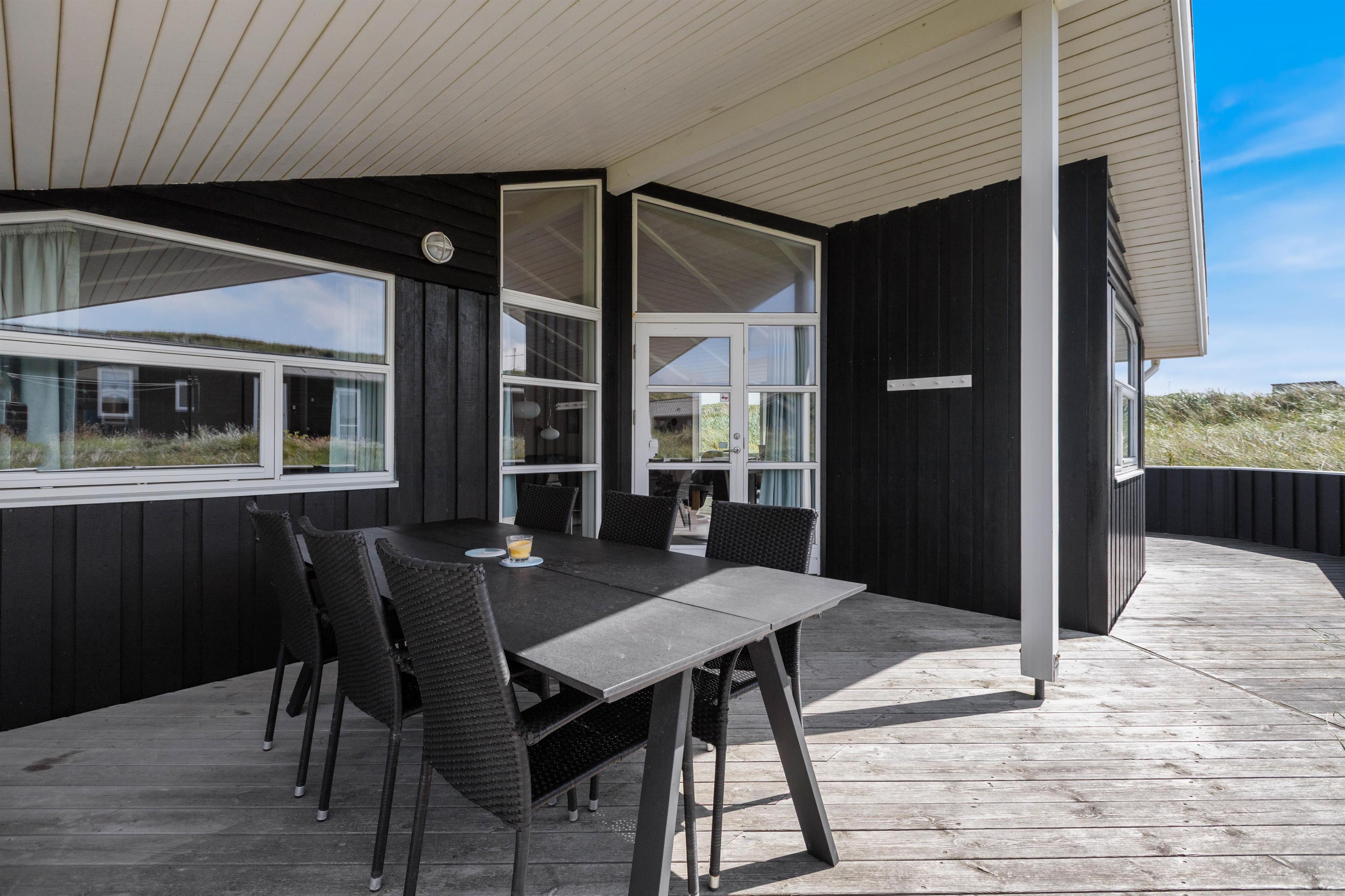 I det gode vejr er det altid attraktivt at være udenfor. Sommerhuset har en terrasse der løber det meste af vejen rundt om huset, så her er det altid muligt at finde en varm og læ fyldt plet, med havet som lydkulisse i baggrunden.