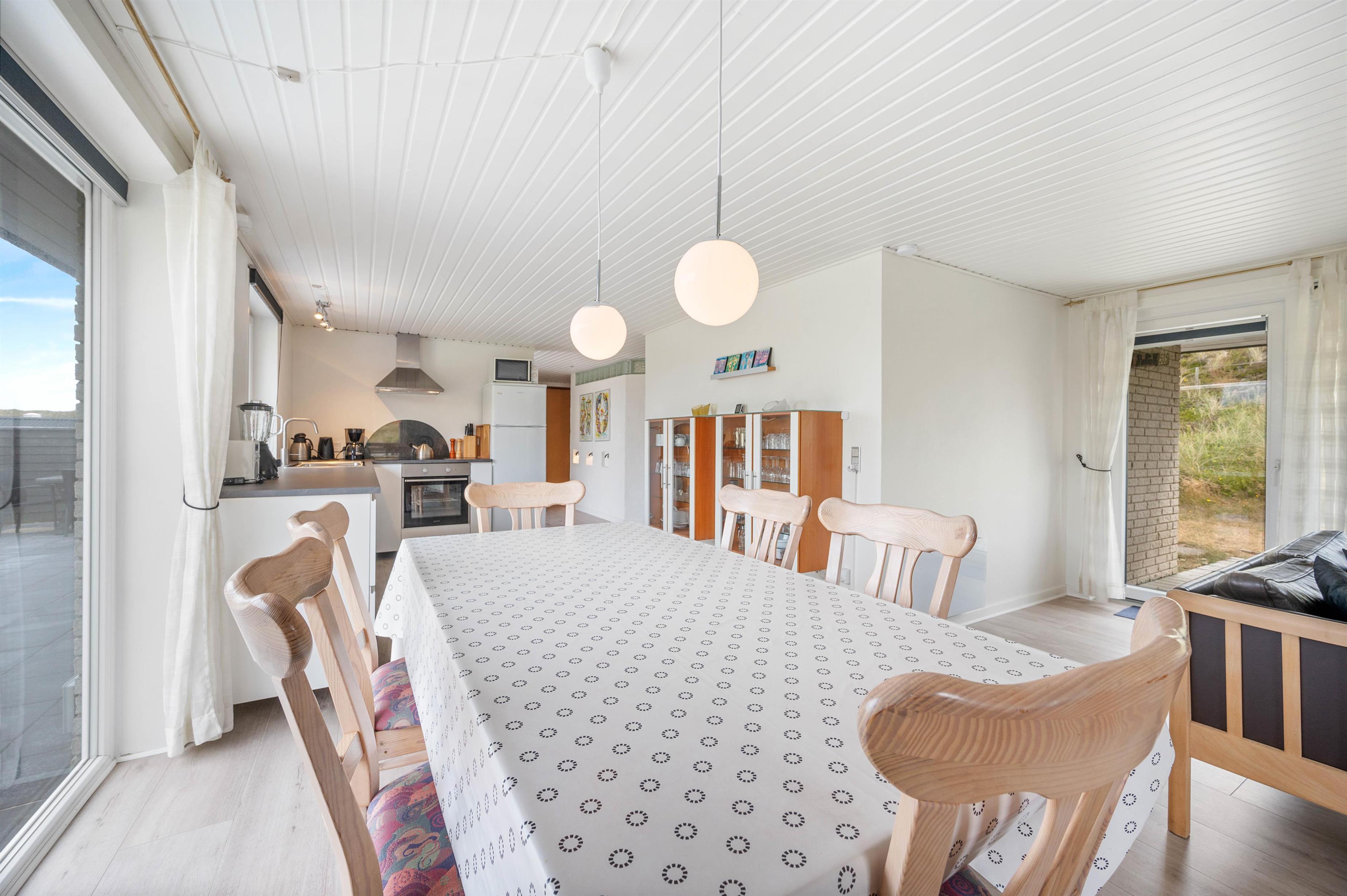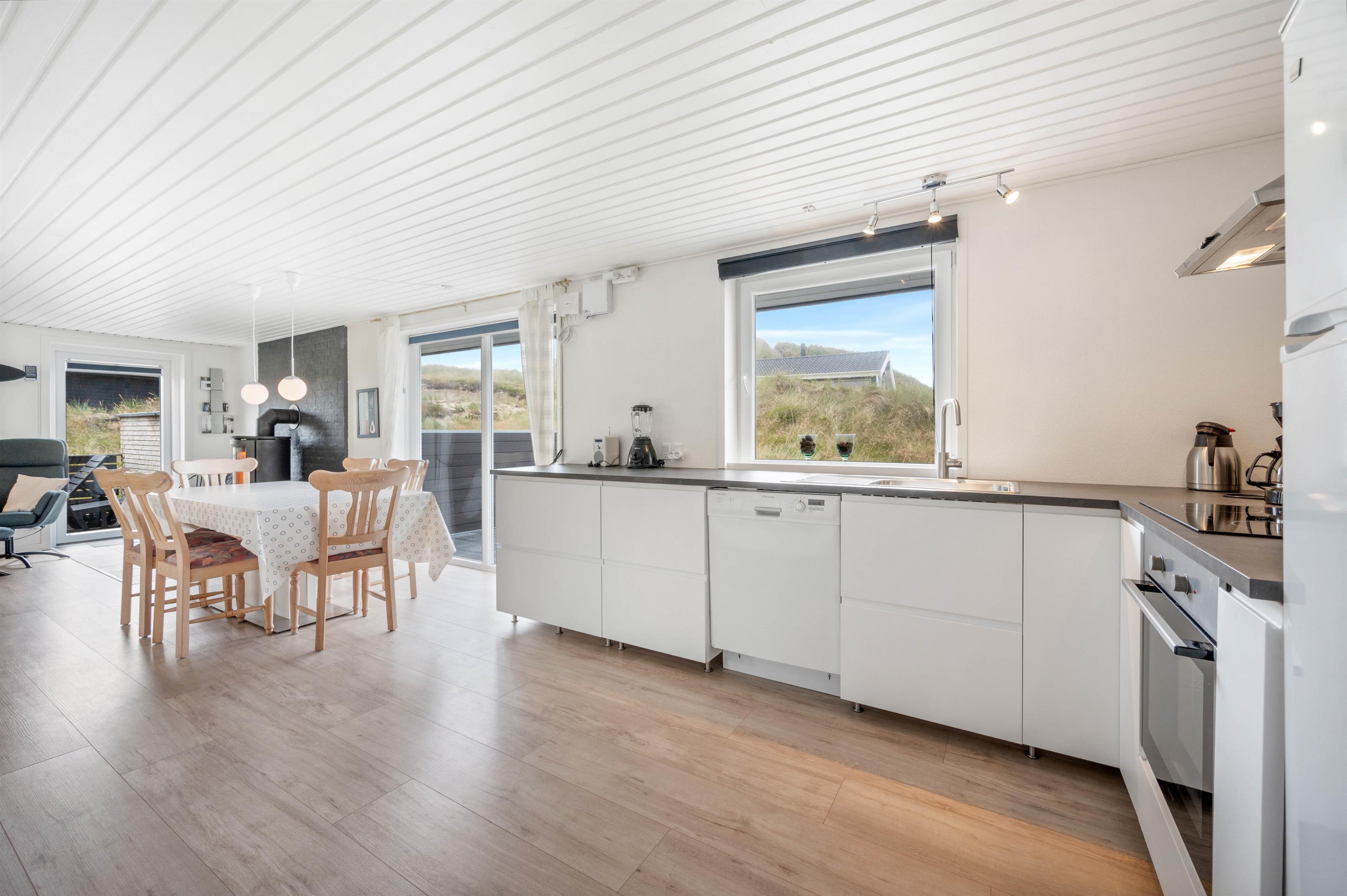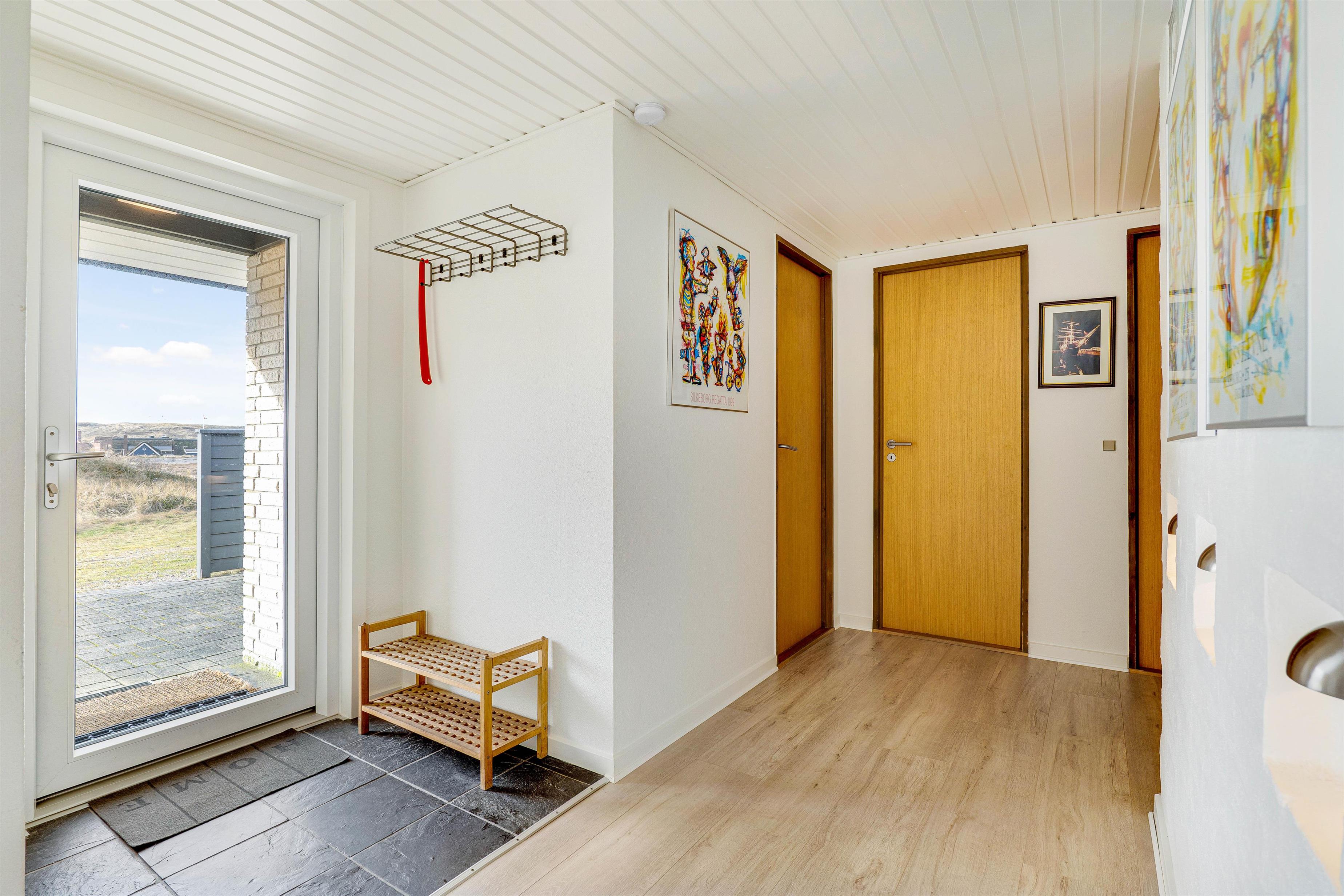 Dette flotte og velindrettede sommerhus vinder absolut ved nærmere bekendtskab. Trods sit beskedne ydre, har huset en flot og indbydende indretning, med store lyse rum og pæne møbler. Huset har 3 store soveværelser med dobbeltsenge. Stort flot badeværelse med gulvvarme og indgang til sauna. Desuden gæstetoilet med gulvvarme. Det store køkken står i åben forbindelse til spisestue og stue. Overalt i huset er der trægulve.