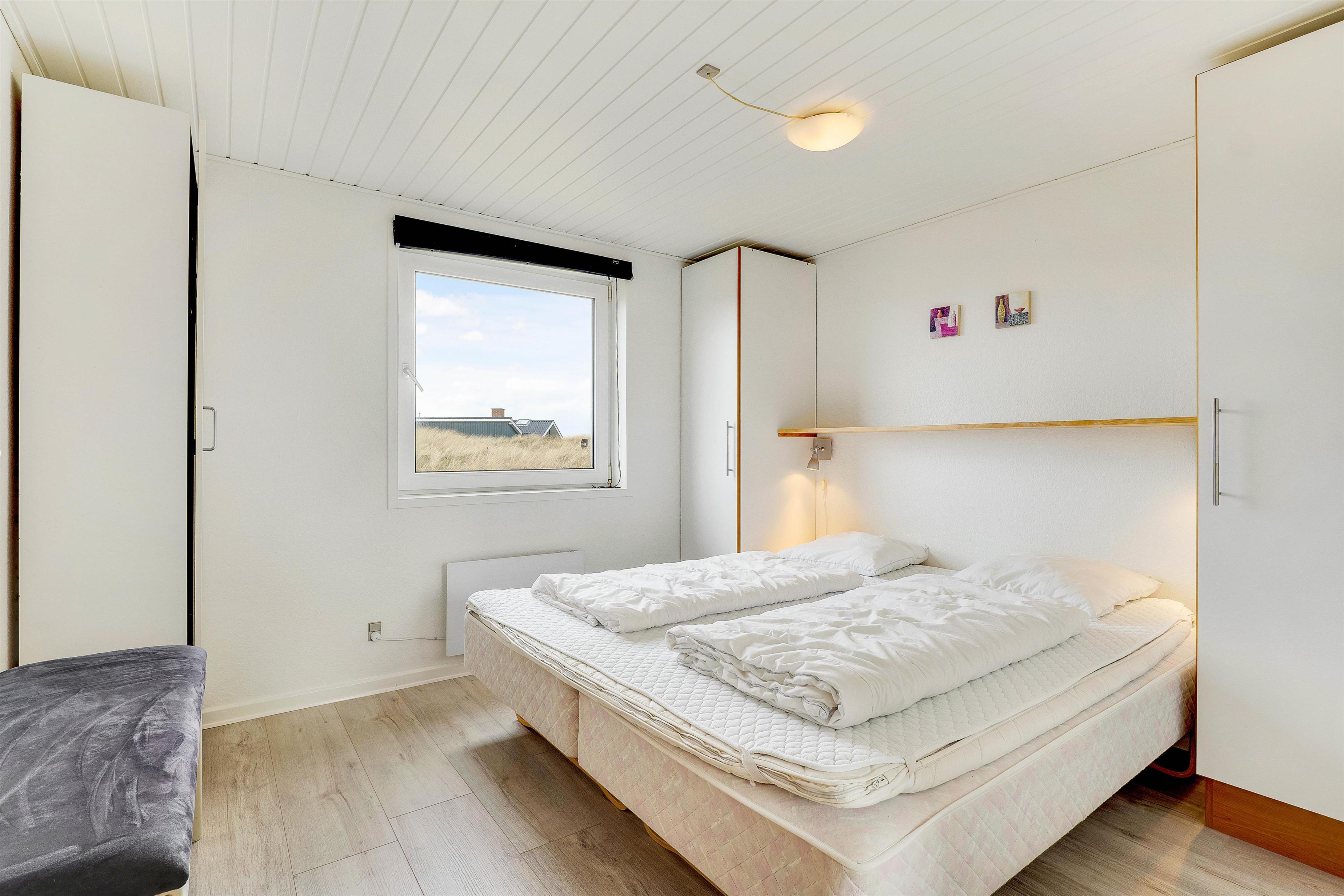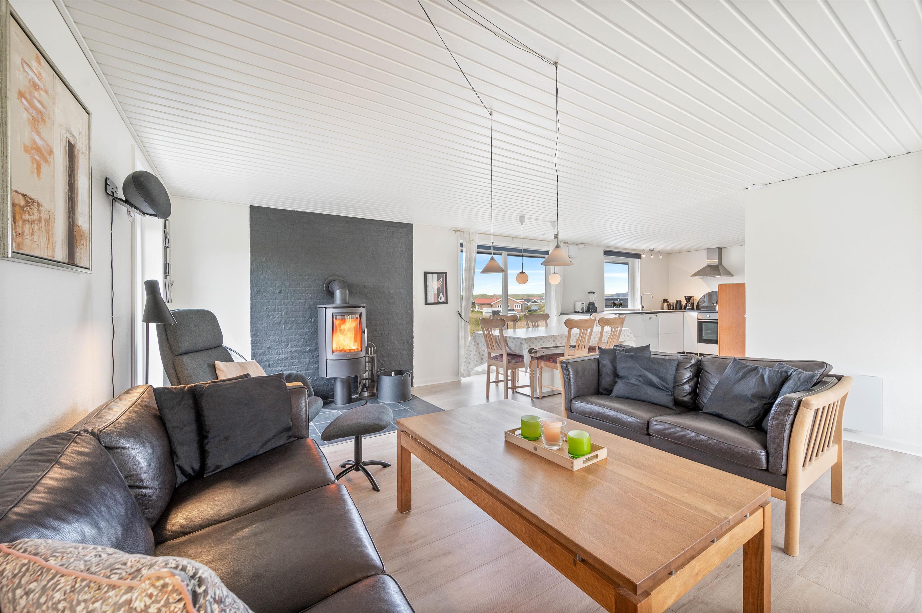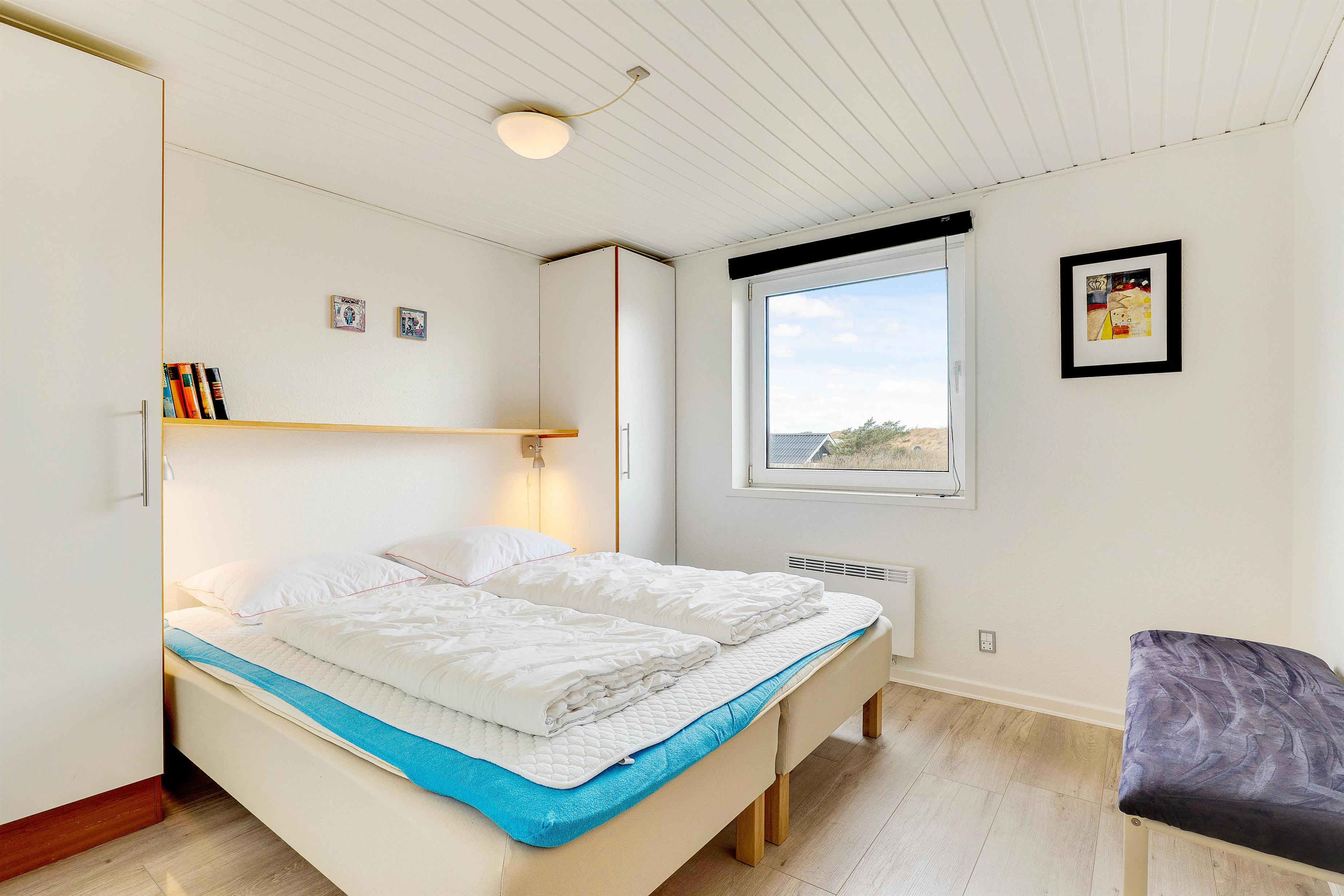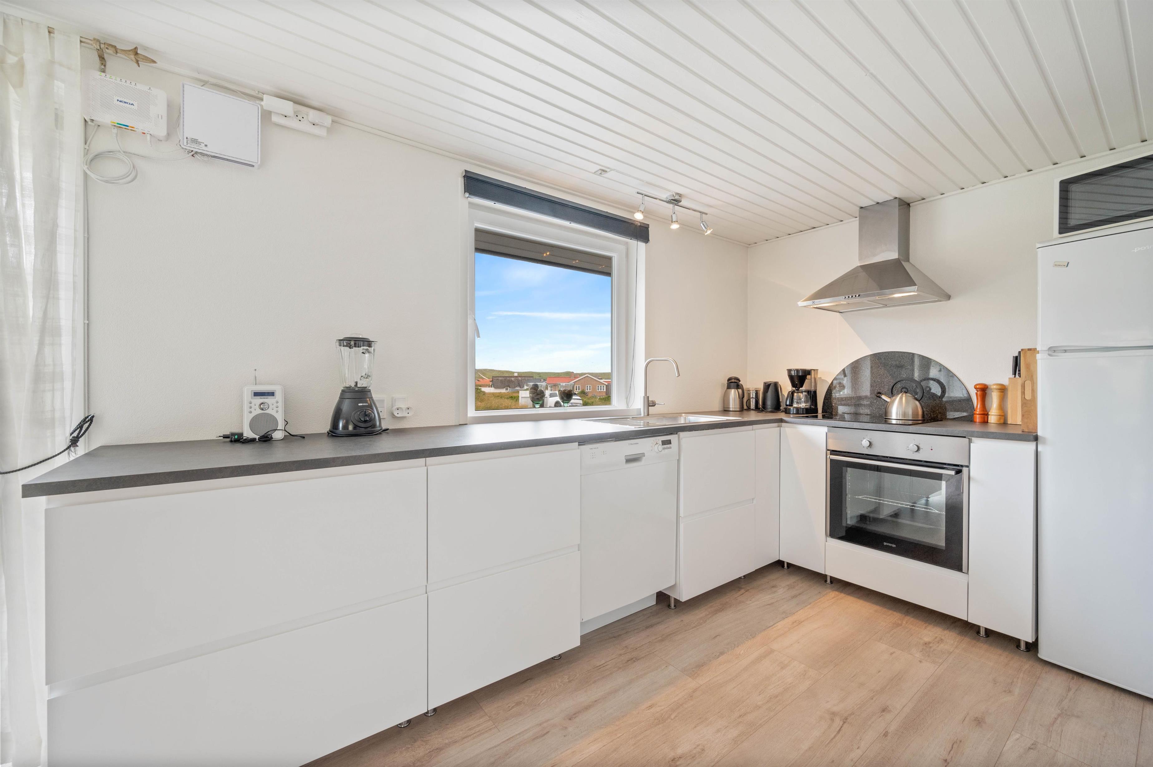 Dette flotte og velindrettede sommerhus vinder absolut ved nærmere bekendtskab. Trods sit beskedne ydre, har huset en flot og indbydende indretning, med store lyse rum og pæne møbler. Huset har 3 store soveværelser med dobbeltsenge. Stort flot badeværelse med gulvvarme og indgang til sauna. Desuden gæstetoilet med gulvvarme. Det store køkken står i åben forbindelse til spisestue og stue. Overalt i huset er der trægulve.