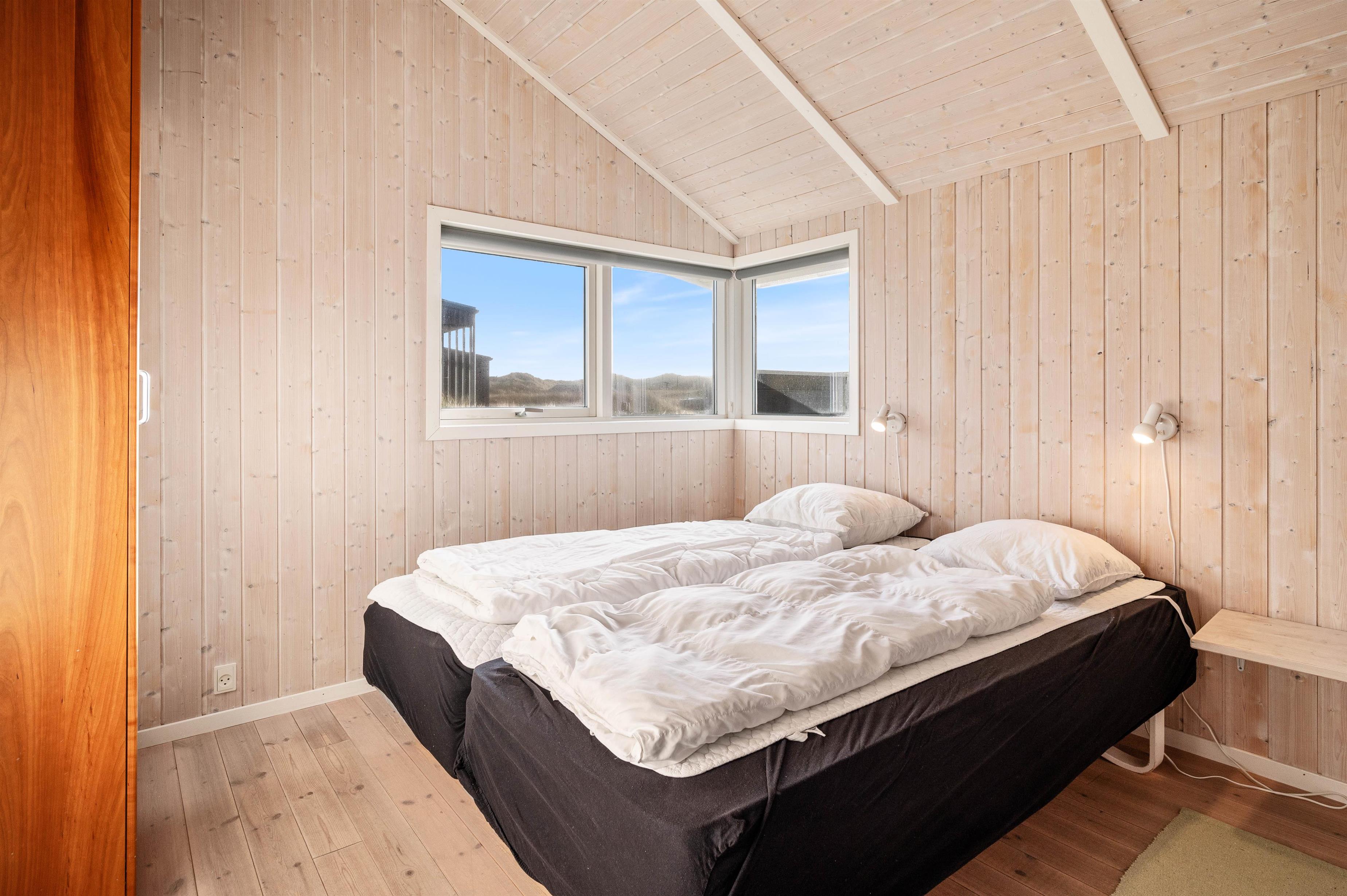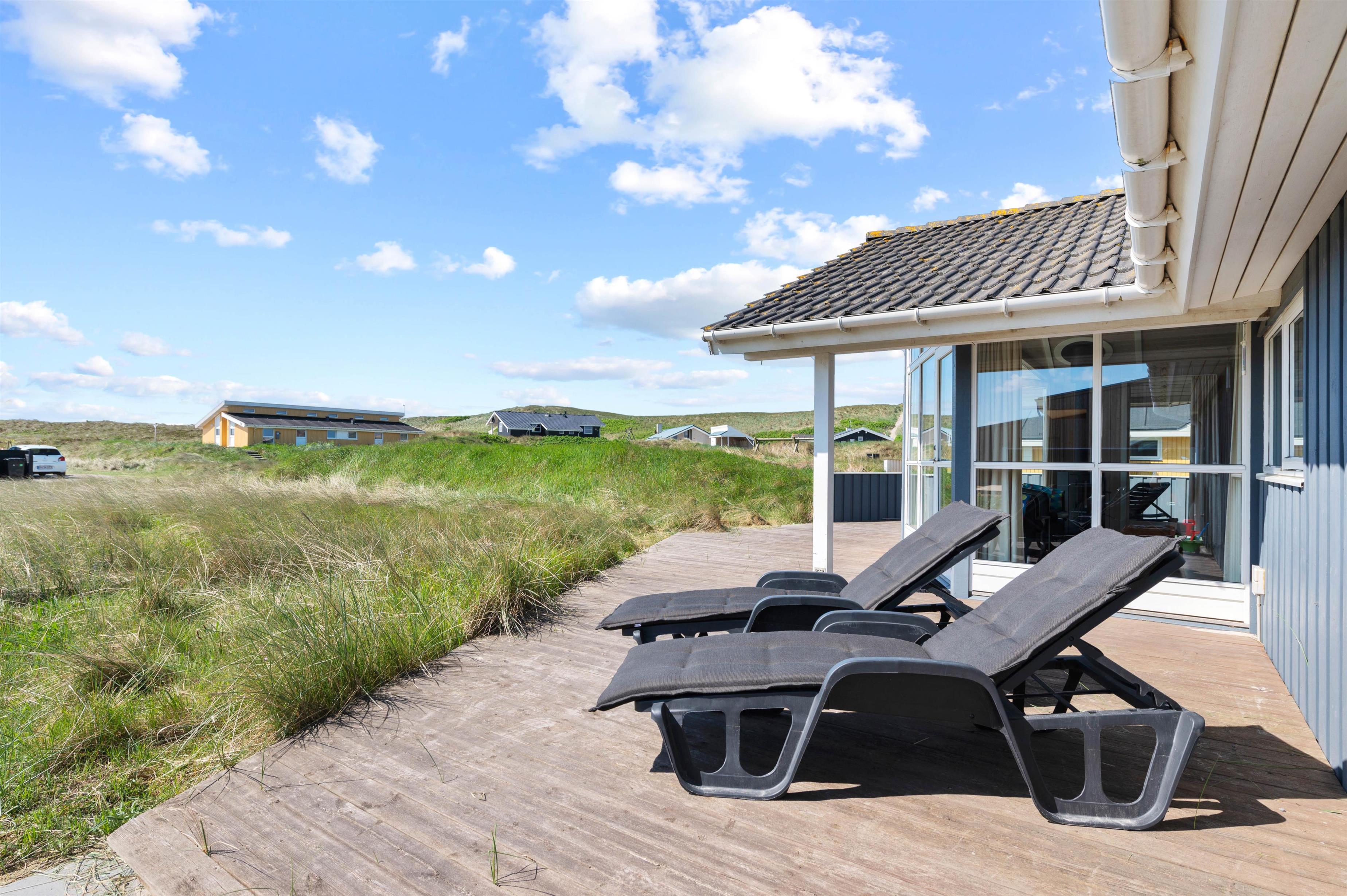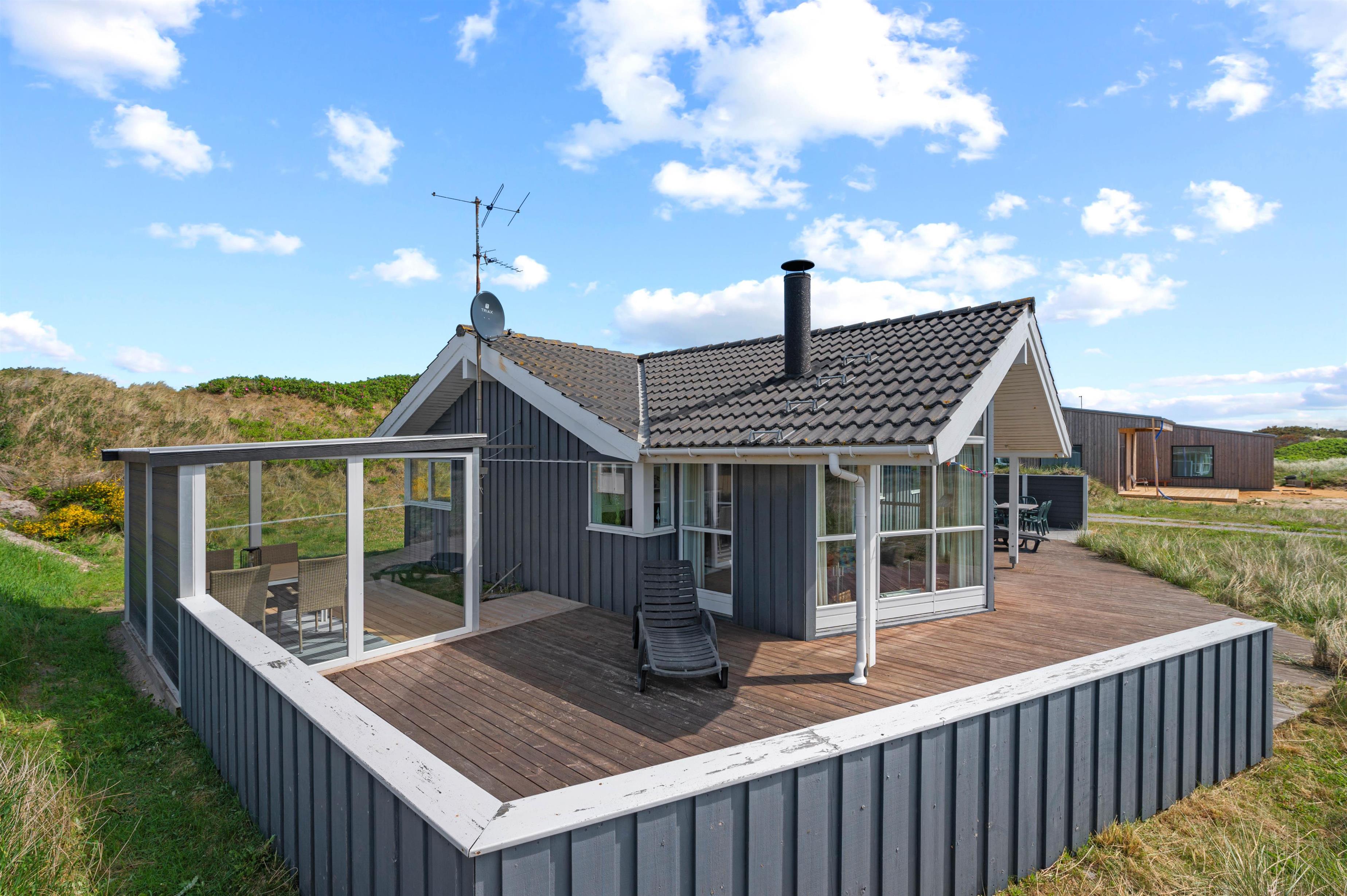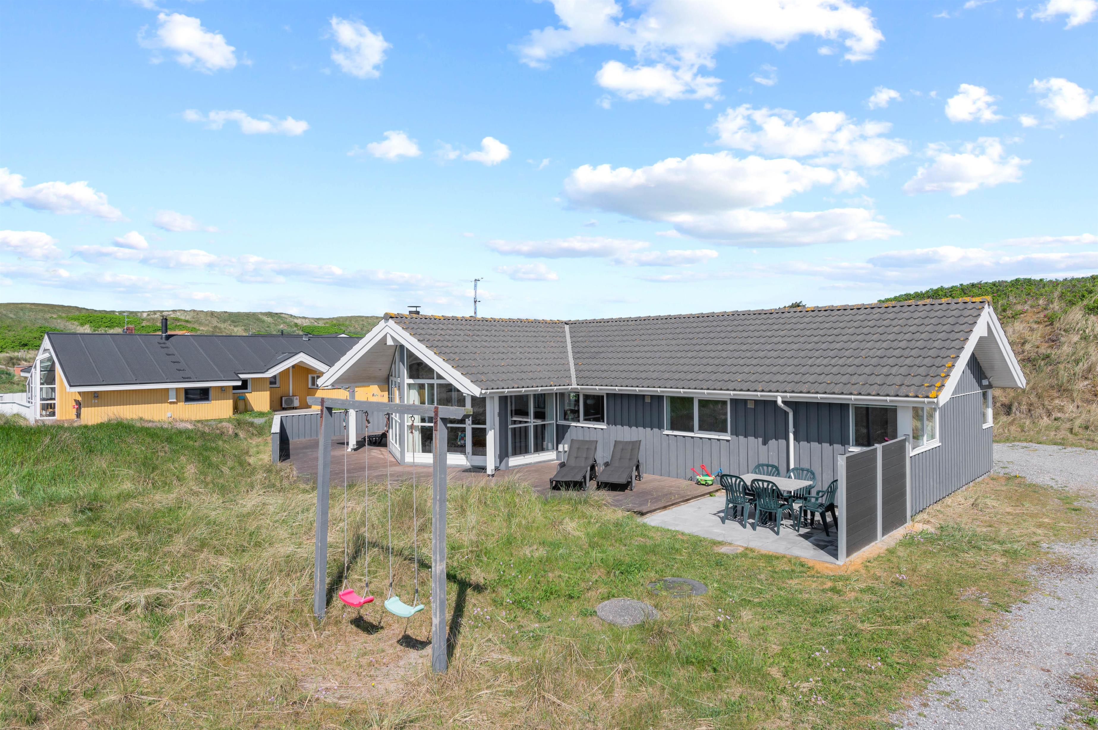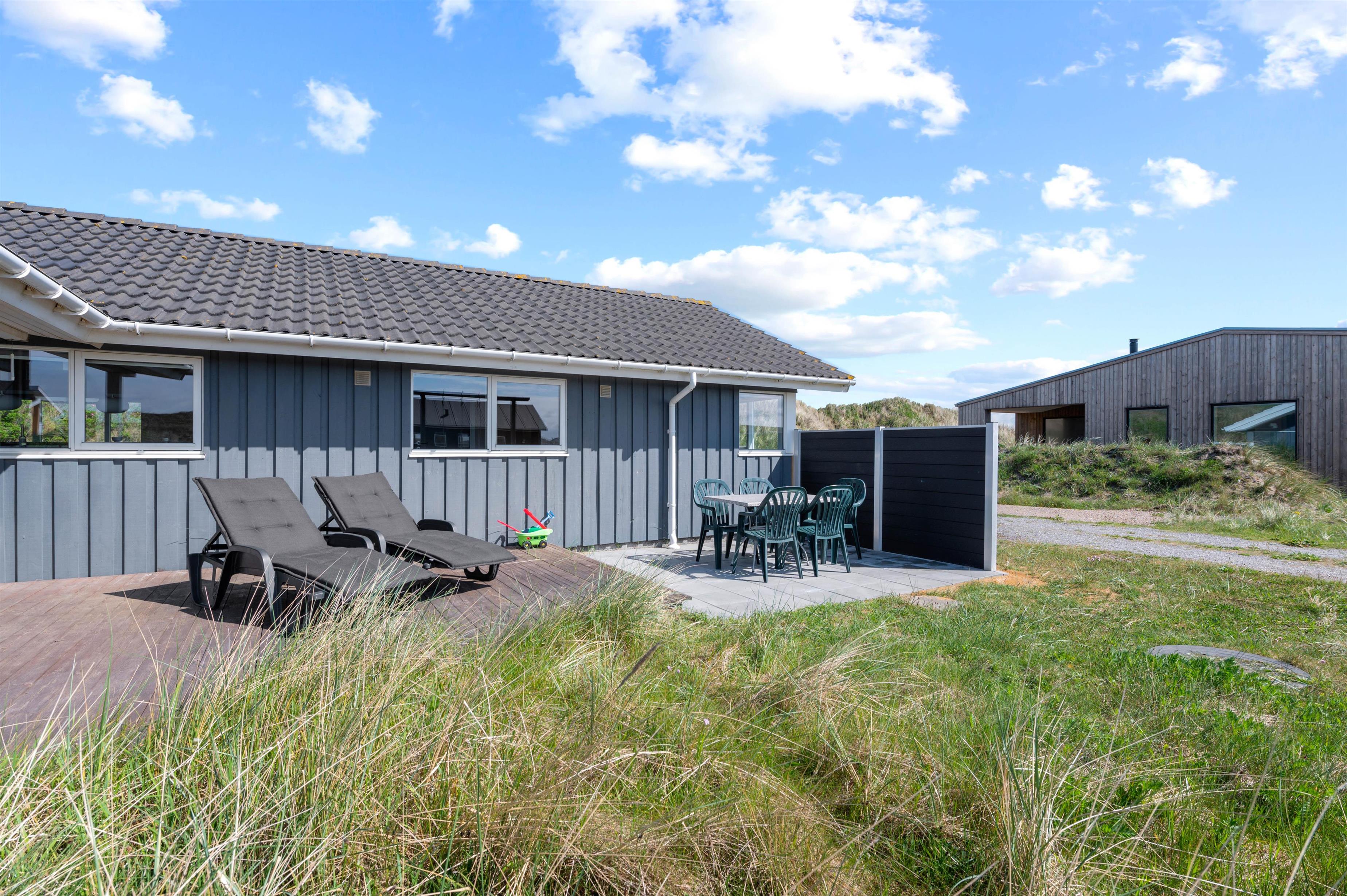 Sommerhuset på Mettes Bjerg 26 har en rigtig god beliggenhed. Her er der nemlig blot 200 meter til Vesterhavet med de smukke hvide sandstrande og det dejlige hav. På den sydvendte terrasse kan I nyde den friske havduft og den smukke natur, der omgiver sommerhuset.