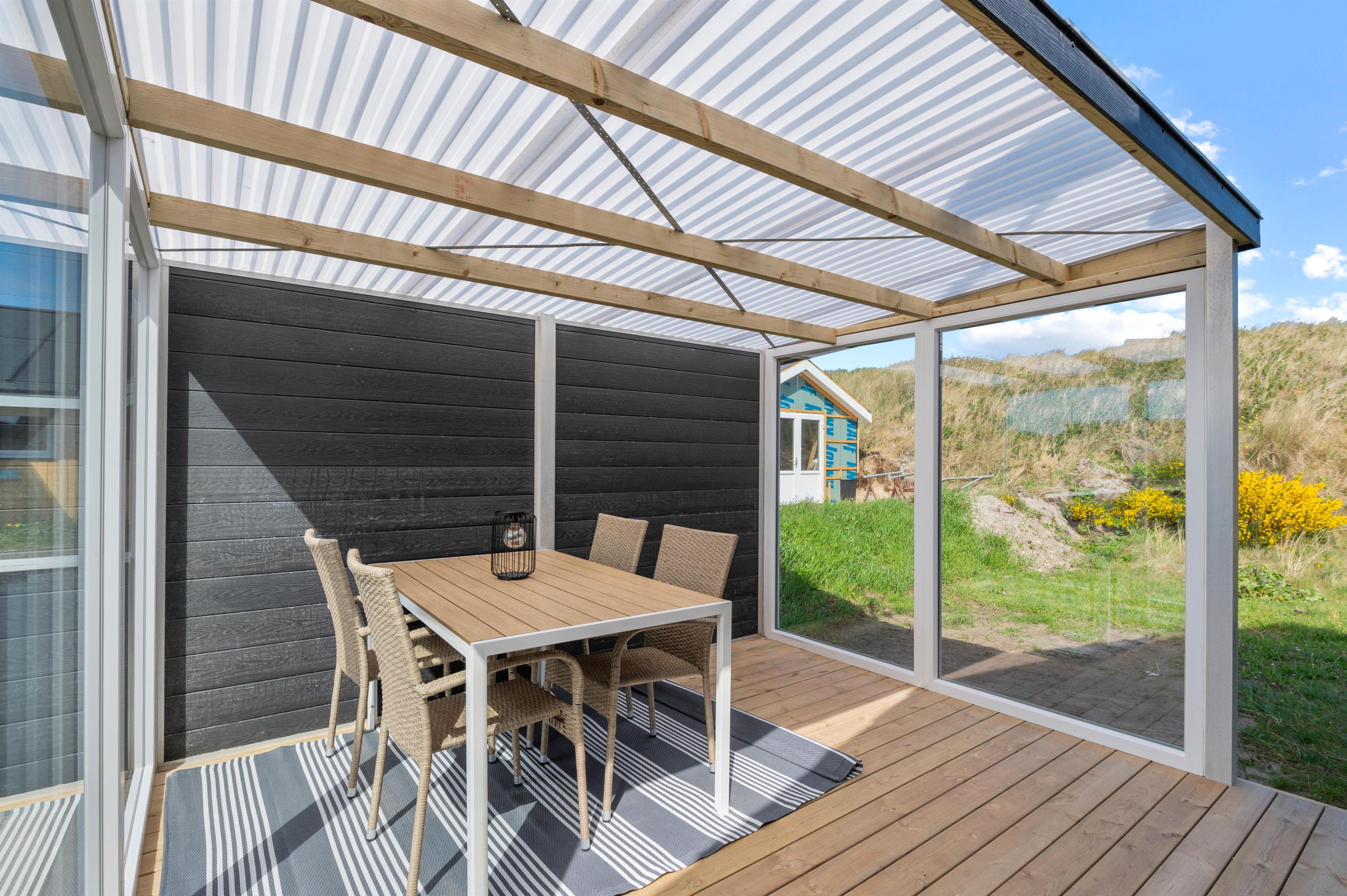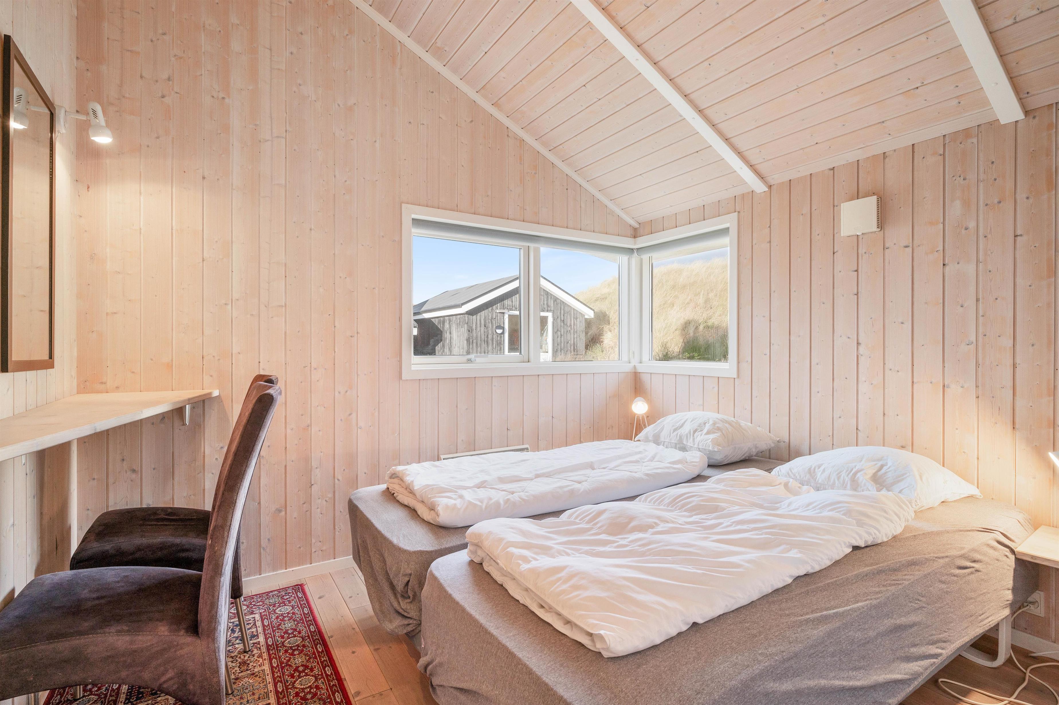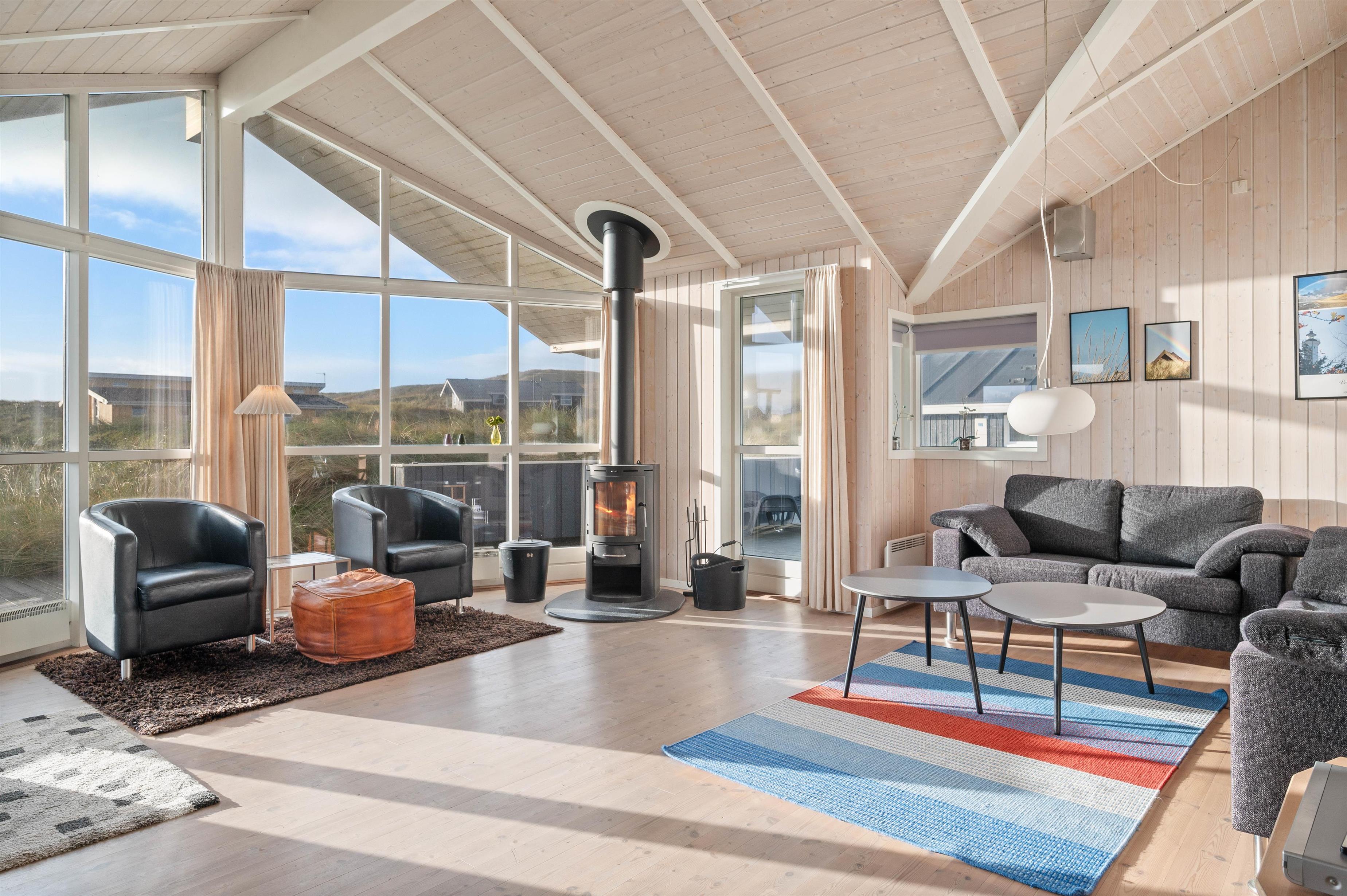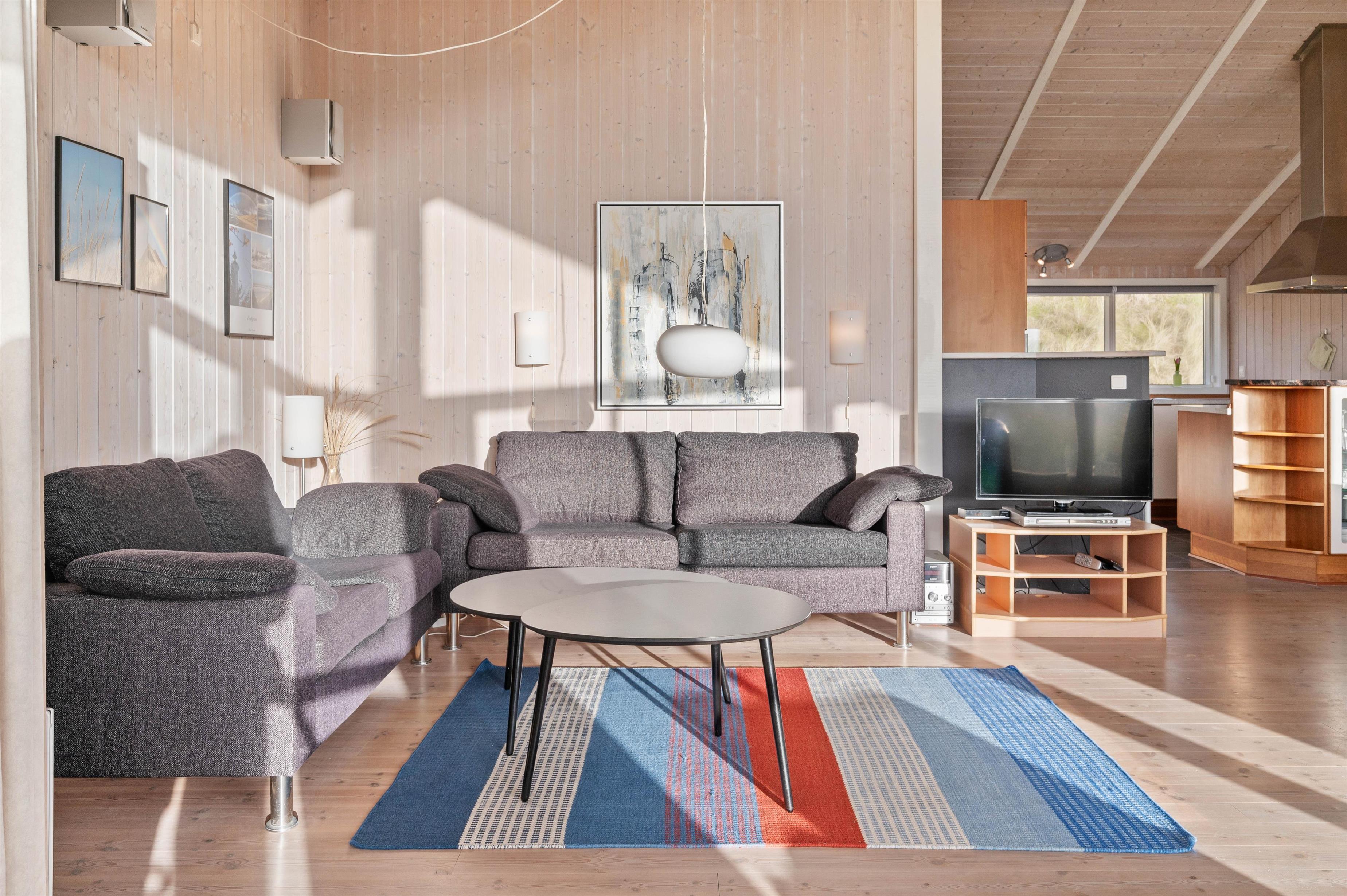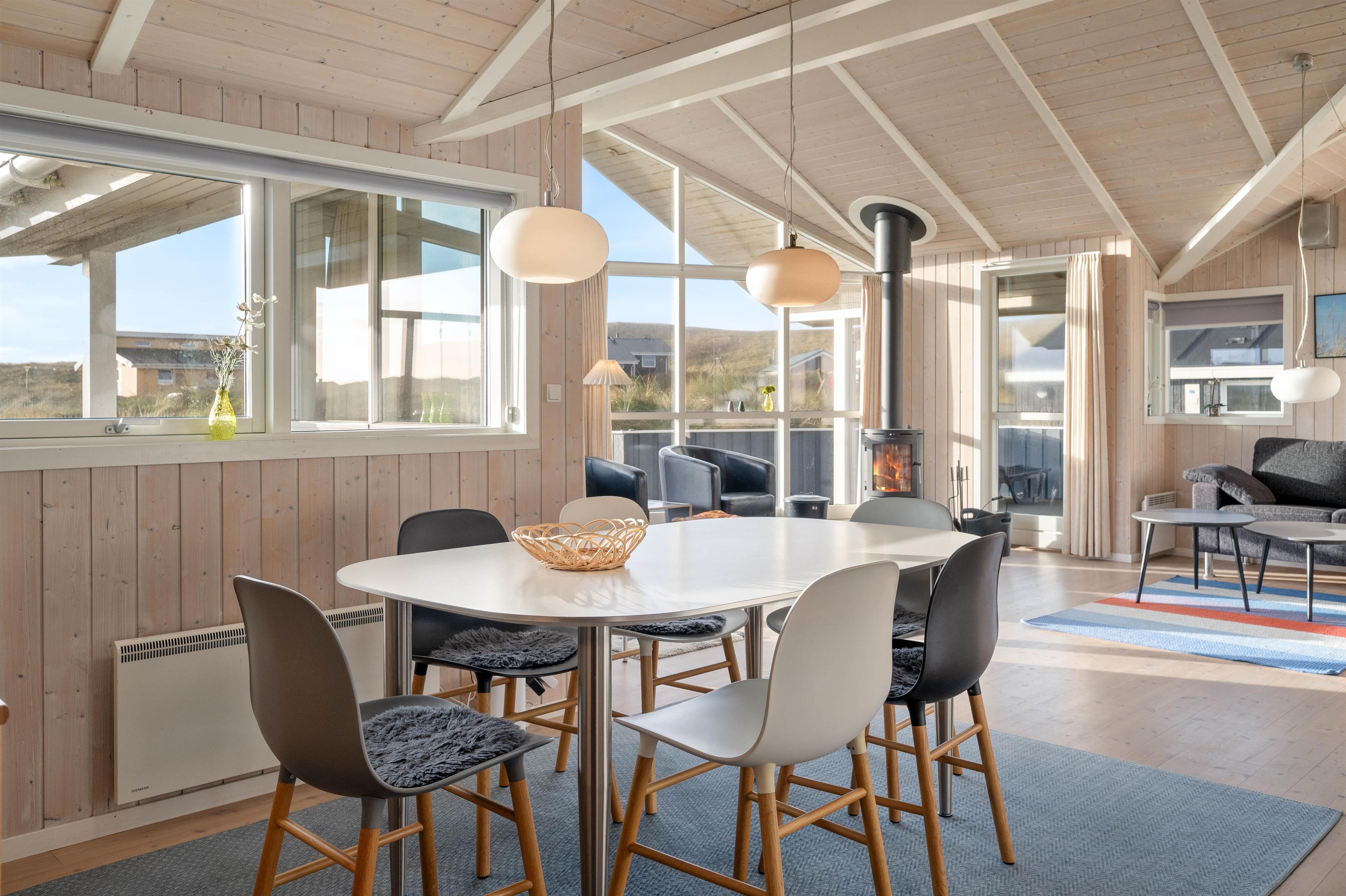 Sommerhuset på Mettes Bjerg 26 har en rigtig god beliggenhed. Her er der nemlig blot 200 meter til Vesterhavet med de smukke hvide sandstrande og det dejlige hav. På den sydvendte terrasse kan I nyde den friske havduft og den smukke natur, der omgiver sommerhuset.